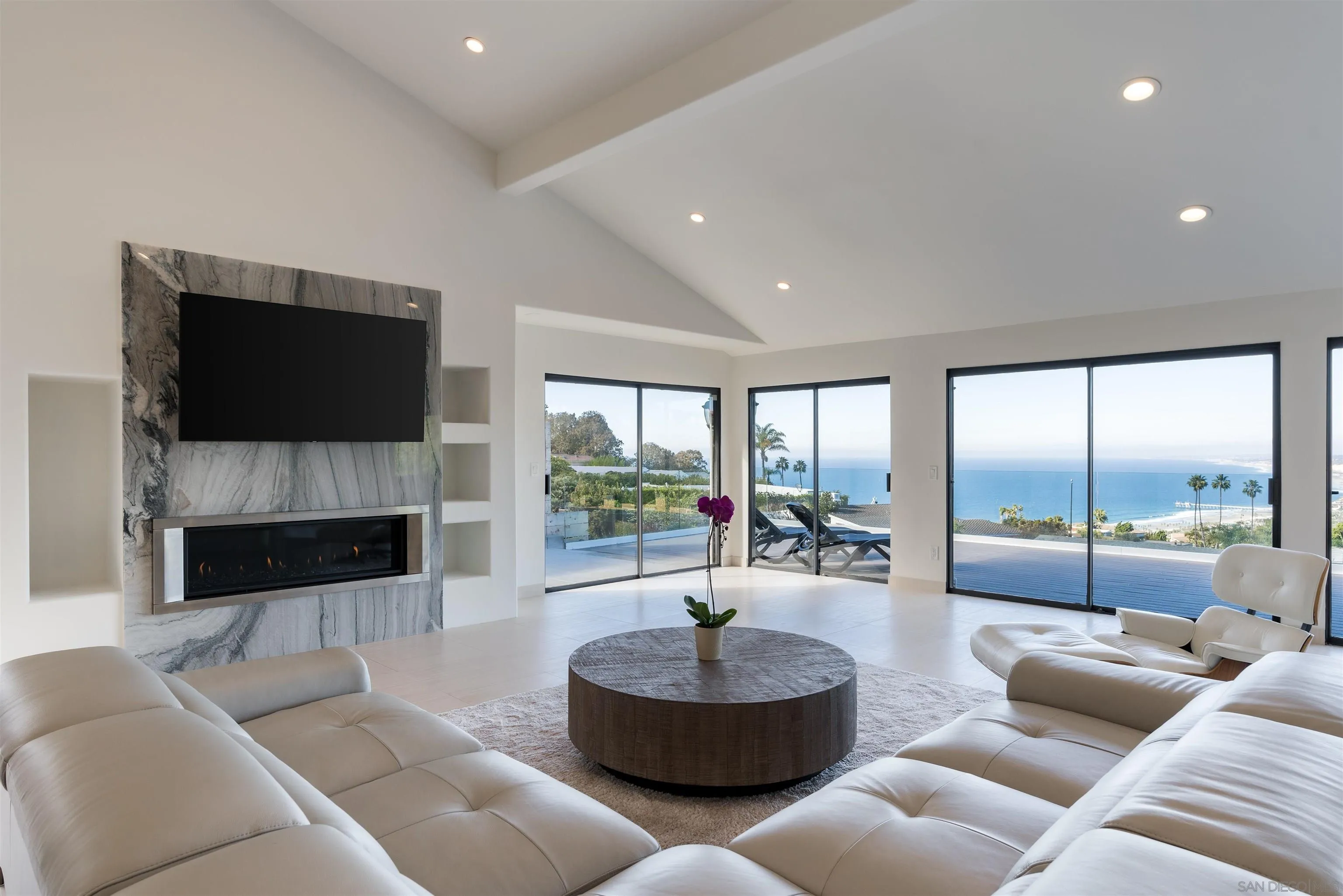 Perched directly on the coveted La Jolla coastline, Residence 104 at 100 Coast Blvd offers a rare, single-level living experience where architecture and ocean exist in perfect harmony. Walls of glass dissolve the boundary between indoors and out, panoramic views of the Pacific, an ever-changing backdrop of light, water, and horizon. Recently reimagined with over $2 million in bespoke renovations, this turnkey residence is a masterclass in refined coastal living. Scandinavian minimalism is seamlessly paired with world-class Italian craftsmanship, highlighted by award-winning Aster Cucine kitchen and bath cabinetry, a dramatic backlit agate bar, and a full suite of Miele appliances. Custom walnut solid-core doors, integrated Pianca wardrobe systems, and curated finishes throughout elevate both form and function. The primary suite is designed as a private sanctuary, featuring a spa-caliber steam room, Jacuzzi whirlpool tub with ceiling-mounted filler, and a statement fireplace—one of three thoughtfully placed throughout the home. Advanced smart home technology, state-of-the-art lighting and sound systems, and comprehensive soundproofing provide a level of comfort and control rarely found in oceanfront properties. With direct access to the sand at Whispering Sands Beach, this is a truly rare offering—where the sound of the surf, the salt air, and uninterrupted coastal views become part of everyday living. Designed by Jesper Pedersen this residence is not simply a home, but a curated coastal experience—private, sophisticated, and undeniably exceptional.