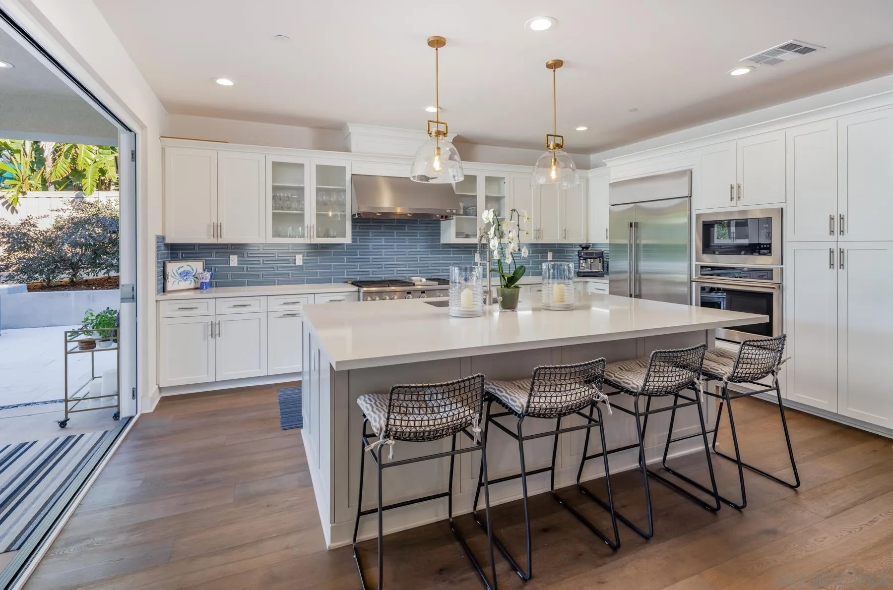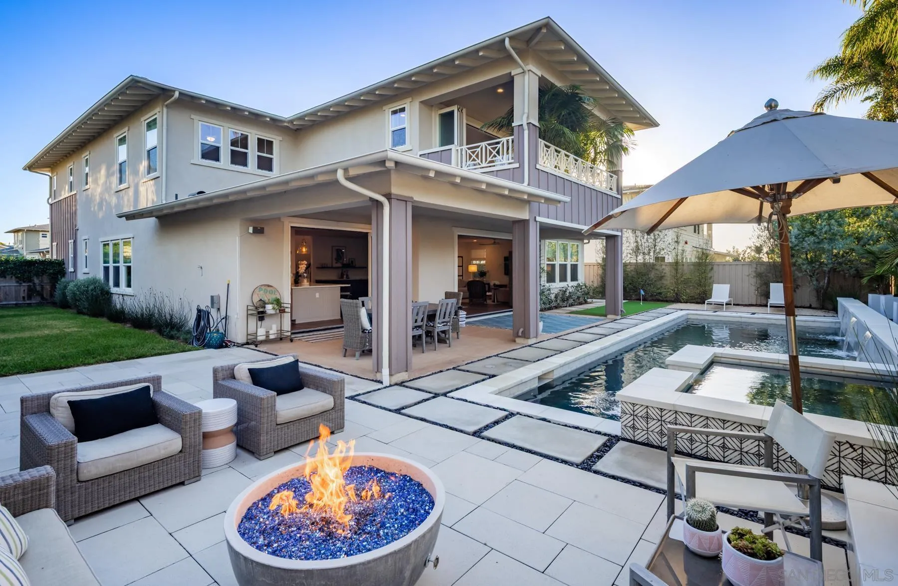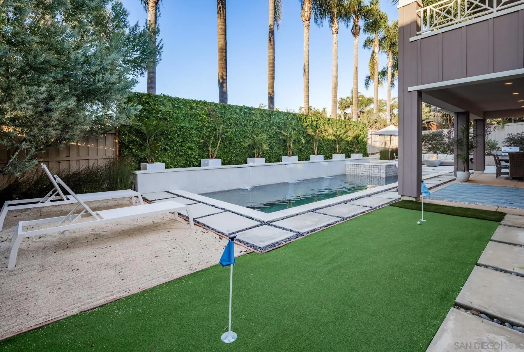 Discover modern luxury in this exquisite 2020 Shea Homes residence, nestled in the prestigious Alia community at the end of a private cul-de-sac. This 5-bedroom, 4.5-bathroom masterpiece seamlessly blends contemporary design with coastal charm, featuring expansive bi-folding doors that open to a private oasis complete with a low maintenance landscape, pool, spa, water features and custom putting green. The gourmet kitchen shines with the GE Monogram Statement Collection and a striking Calacatta Gold Silestone Quartz island, while the primary suite offers a private balcony and a spa-inspired ensuite with custom Jeffrey Court tile. Designed for both intimate living and grand entertaining, the home includes a main-level bedroom suite, a great room with built-in surround sound, custom cabinetry, and energy-efficient owned solar panels. Just a mile from Leucadia beaches and coastal dining, and close to Fox Point Farms and Encinitas Ranch Golf Course, it offers easy freeway access and proximity to top-rated San Dieguito schools. This is your opportunity to own a turnkey luxury retreat in one of North County's most sought-after communities.