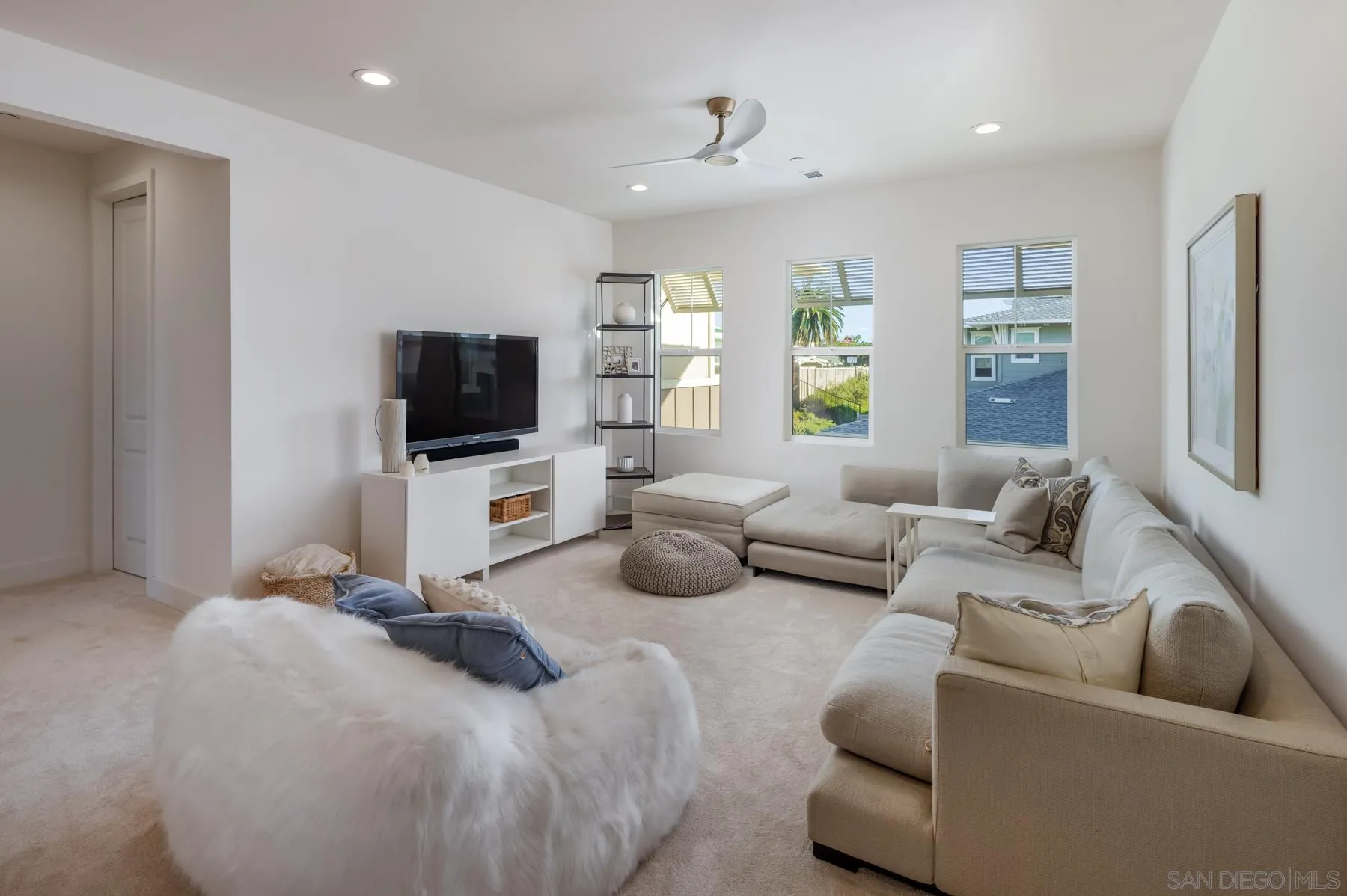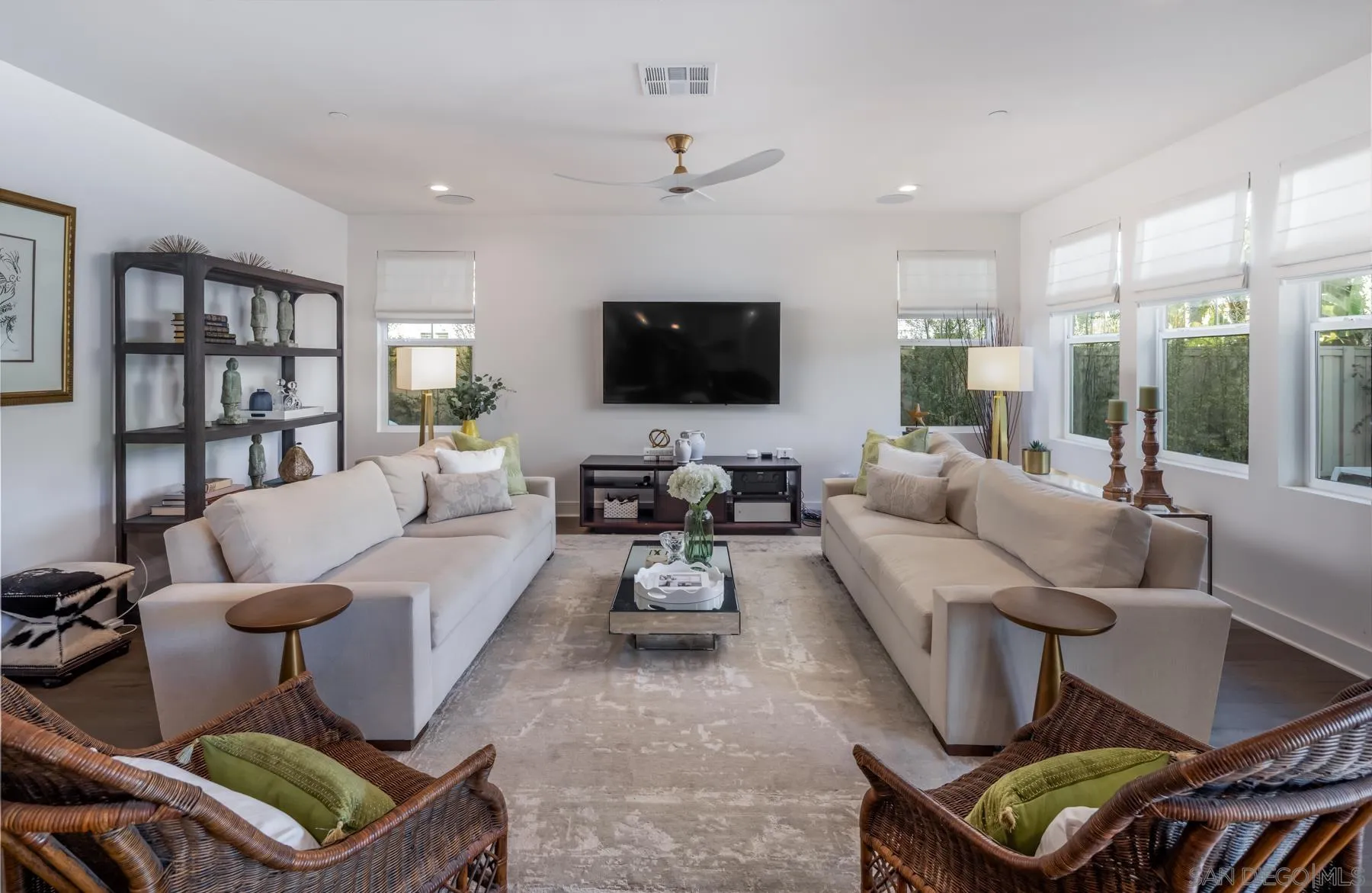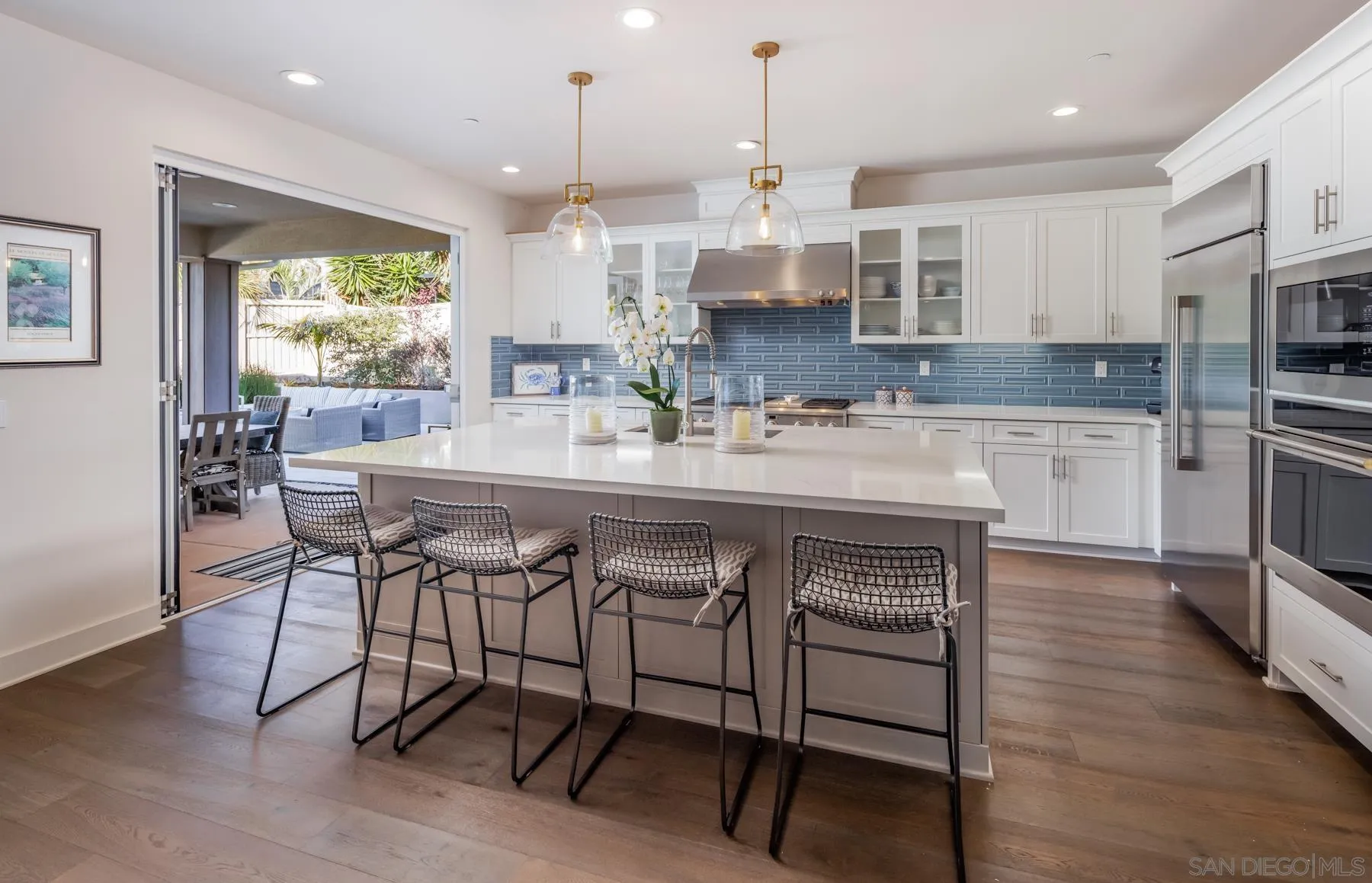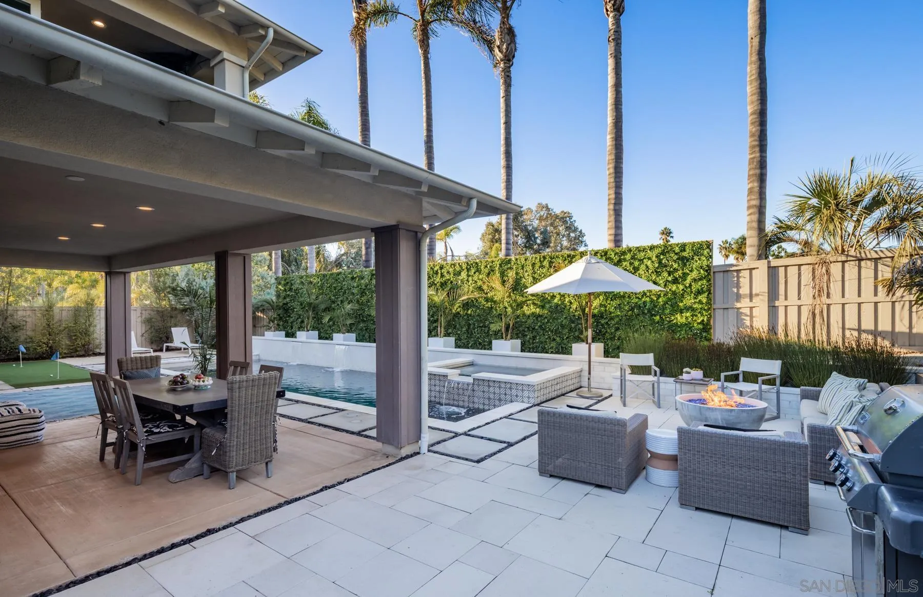 Discover modern luxury in this exquisite 2020 Shea Homes residence, nestled in the prestigious Alia community at the end of a private cul-de-sac. This 5-bedroom, 4.5-bathroom masterpiece seamlessly blends contemporary design with coastal charm, featuring expansive bi-folding doors that open to a private oasis complete with a low maintenance landscape, pool, spa, water features and custom putting green. The gourmet kitchen shines with the GE Monogram Statement Collection and a striking Calacatta Gold Silestone Quartz island, while the primary suite offers a private balcony and a spa-inspired ensuite with custom Jeffrey Court tile. Designed for both intimate living and grand entertaining, the home includes a main-level bedroom suite, a great room with built-in surround sound, custom cabinetry, and energy-efficient owned solar panels. Just a mile from Leucadia beaches and coastal dining, and close to Fox Point Farms and Encinitas Ranch Golf Course, it offers easy freeway access and proximity to top-rated San Dieguito schools. This is your opportunity to own a turnkey luxury retreat in one of North County's most sought-after communities.