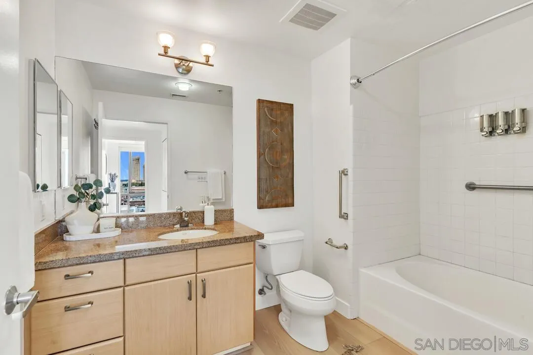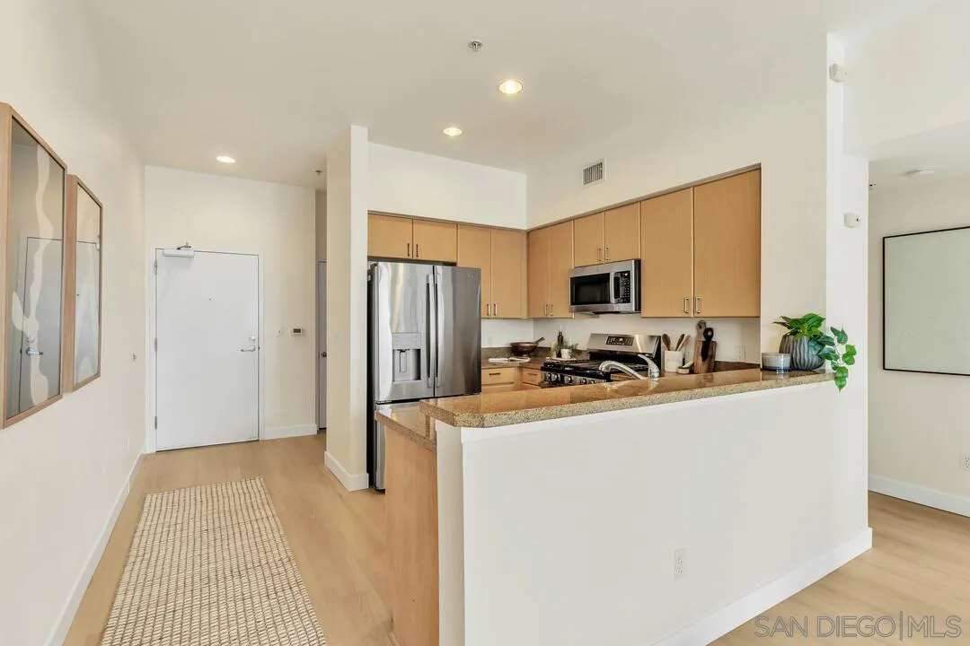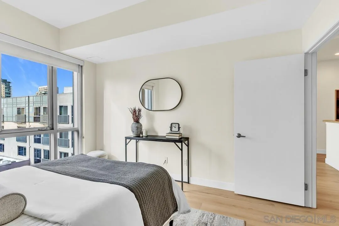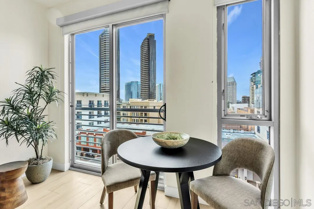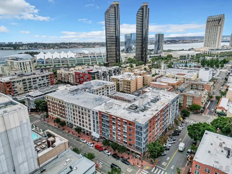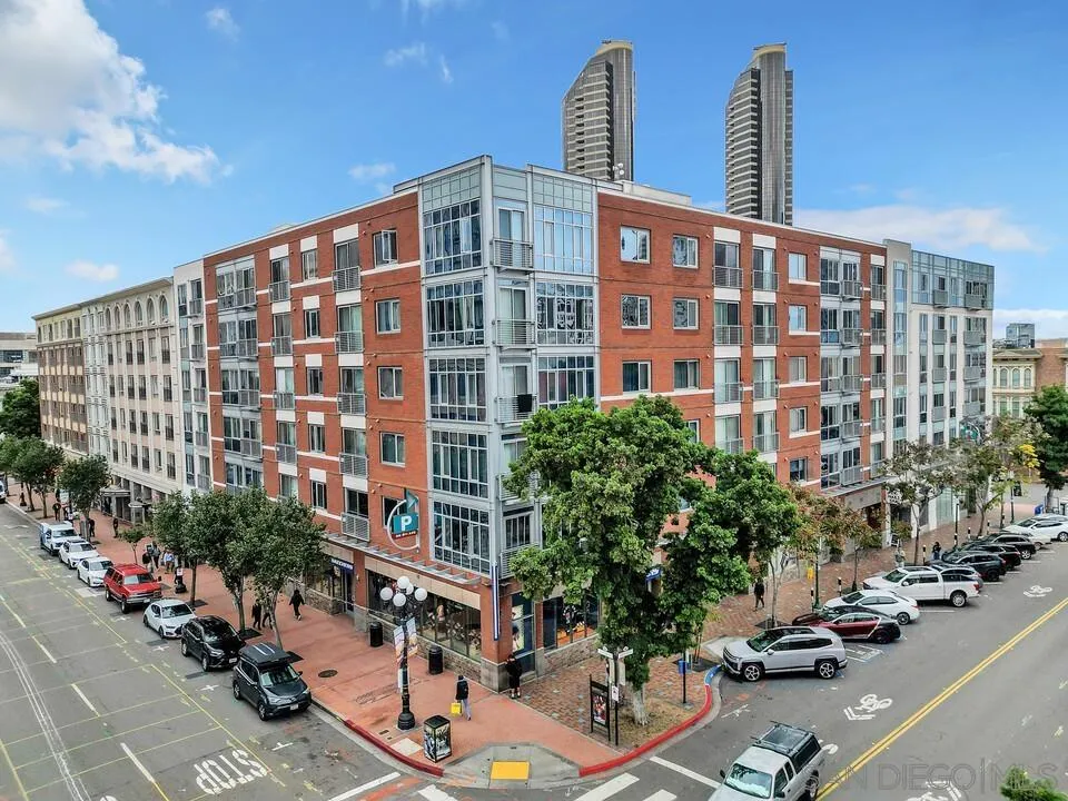 Step into this stunning, top floor corner residence in the heart of San Diego’s iconic Gaslamp Quarter, where modern style meets vibrant city energy. This oversized 1-bedroom + den home is drenched in natural light thanks to dramatic floor to ceiling windows and a private slider overlooking the city. Freshly updated with white oak luxury vinyl plank flooring, brand new stainless kitchen appliances, upgraded cabinet hardware, and a crisp new paint palette! This condo feels clean, contemporary, and undeniably chic. A rare luxury for downtown living: two secured parking spaces convey with the home! Gaslamp City Square delivers true resort-style amenities, including a pool, spa, fitness center, and BBQ courtyard, all perched on the elevated 3rd-floor deck. Step outside your front door and into the best of downtown with boutiques, cafés, nightlife, and restaurants just moments away. FHA & VA approved. Urban living at its finest!