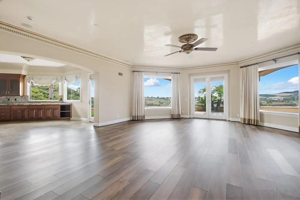 SHORT SALE OPPORTUNITY! Welcome to Château Belle Vue, where luxury, privacy, and panoramic views come together in this stunning Mediterranean estate nestled in the hills of Bonsall. Set on 2.44 acres within a gated community, this custom-built home is designed to impress from the moment you arrive. A dramatic double staircase entry with dual art niches ushers you into a grand living room framed by breathtaking picture windows that capture the surrounding beauty. Upstairs, you’ll enjoy the expansive primary suite, complete with a generous bathroom, jacuzzi tub, and a true sense of retreat. This level also features a dedicated bar area and a separate loft—perfect for hosting, relaxing, creating additional entertaining zones, or even converting into a fifth bedroom. Downstairs, three additional bedrooms each include en-suite baths and walk-in closets, making the home ideal for multi-generational living or guest privacy. The chef’s kitchen offers an exceptional space to cook and gather, boasting premium appliances, an oversized pantry, and dual islands. Formal and casual dining spaces, along with a temperature-controlled wine closet, elevate the home’s entertaining appeal. A large first-floor laundry room provides excellent storage and direct access to the outdoor patio. Step outside to a backyard designed for relaxation and gatherings, complete with a built-in BBQ and plumbing ready for a portable setup. With endless potential to create your own outdoor oasis, this property beautifully blends elegance, comfort, and elevated Bonsall living.