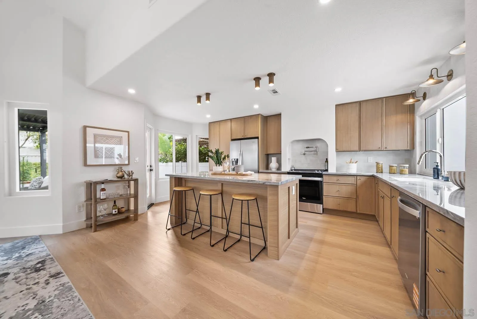 Newly renovated Ocean Hills St. Tropez model offering a seamless transition between indoor & outdoor living boasting a 7,190 square foot lot with a huge and very rare side-yard! This 2 bed/2 bath single level home plus bonus office is an entertainer's dream featuring an open concept living space with soaring vaulted ceiling & exposed beam, recessed lighting, luxury vinyl flooring, a stunning kitchen with spacious island & breakfast bar, timeless cabinetry, dazzling tile backsplash, modern fixtures & finishes, and a charming atrium to further enjoy the outdoors and bring light in! Palatial master retreat with spa-like bath featuring walk-in tiled shower and dual sinks. Low maintenance yard includes patio area with new pergola. Nestled around a private 18-hole golf course, this beautifully maintained and highly sought after 55+ community offers an unparalleled variety of amenities including a heated, Olympic-sized swimming pool, spa, lighted tennis courts, bocce ball courts, fitness center, billiards, and a secure RV storage area. Discover countless ways to stay active with 40 to 50 social clubs & classes! Outdoor lovers will enjoy miles of scenic walking paths, biking trails, and a dedicated dog park for furry companions.