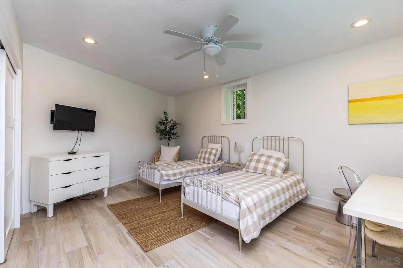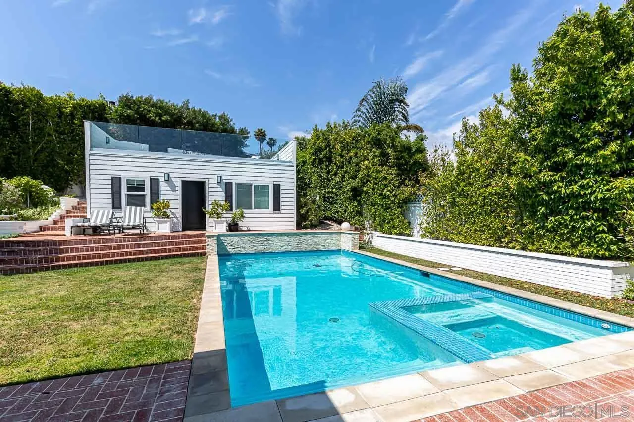 Single-level Cape Cod style contemporary home (built 2015) in the Muirlands neighborhood of La Jolla. Clean and beautiful interior with 9-ft ceilings, open floor plan, Duchateau hardwood floors throughout, and large pocket doors in living room that open to large backyard with pool, jacuzzi, BBQ, grassy yard and separate guest house with rooftop deck with ocean views looking south. Preference for 12-month lease or longer; available December 1, 2025 (unfurnished). Located within Bird Rock Elementary and La Jolla High School districts. Renter pays all utilities. Main house is 4 bed 2 1/2 bath and detached guest house behind pool is 1 bed 1 bath.