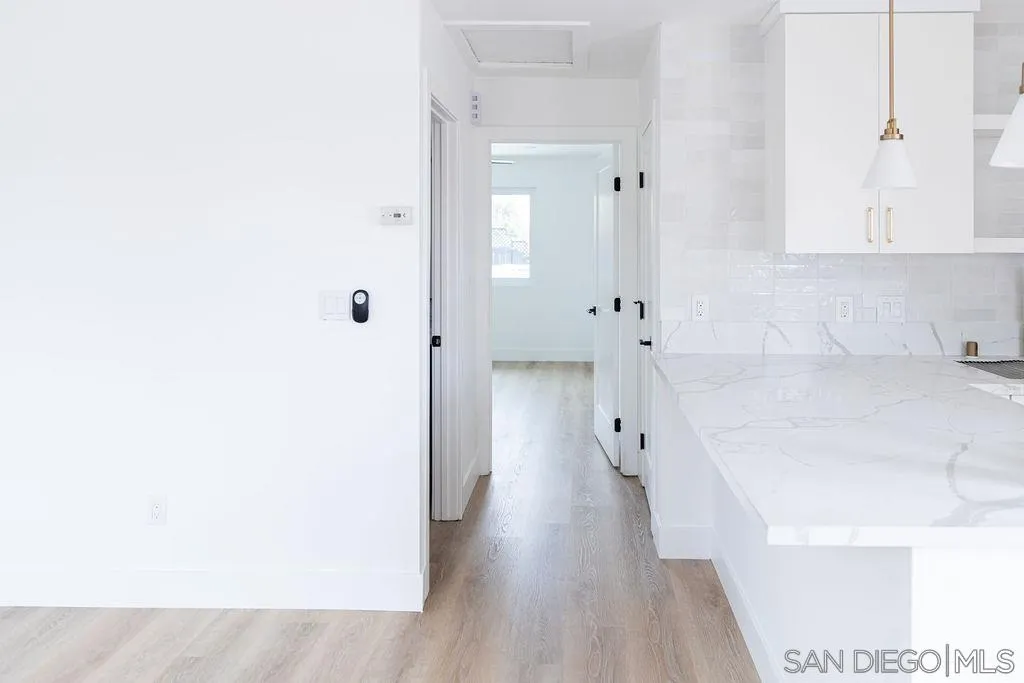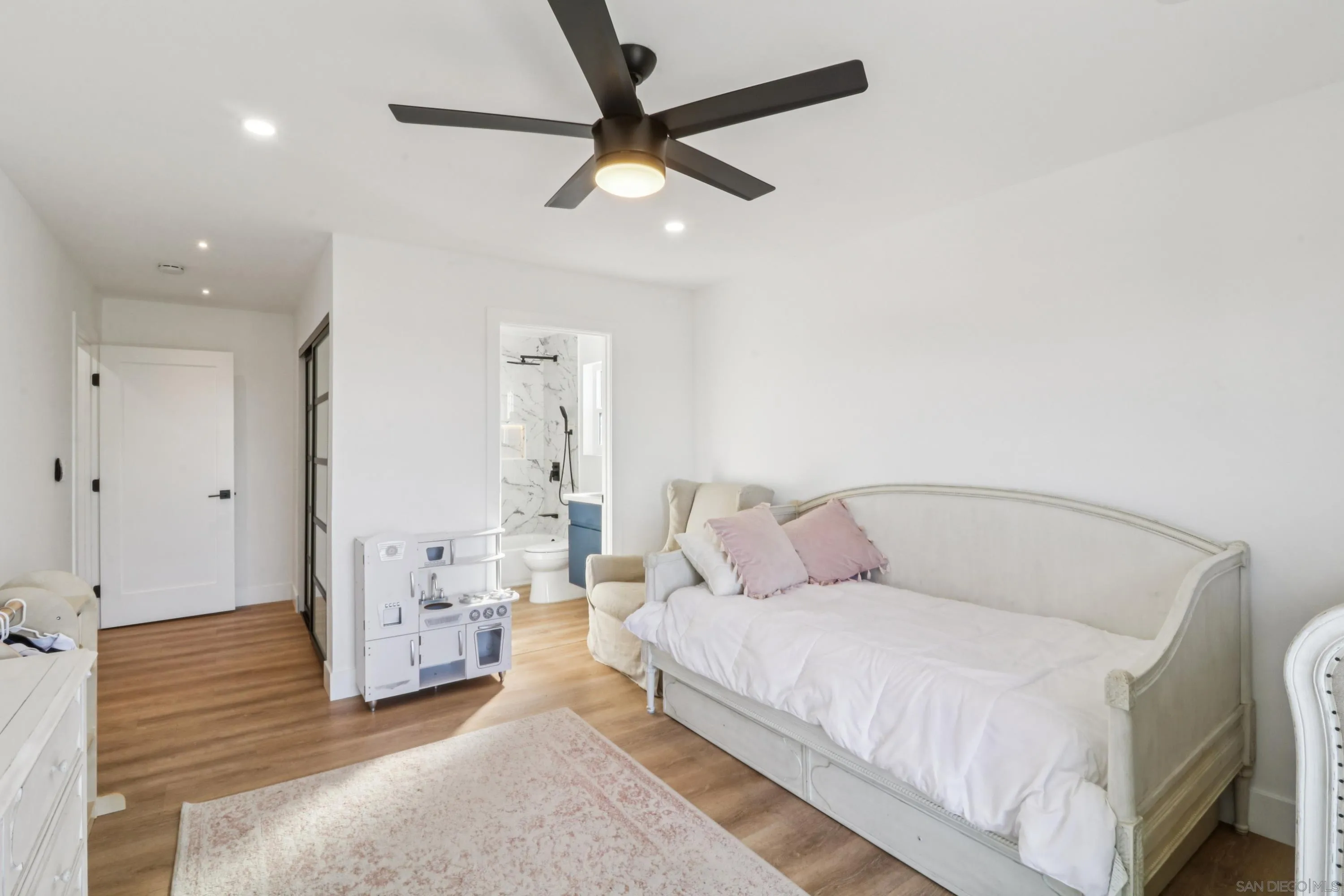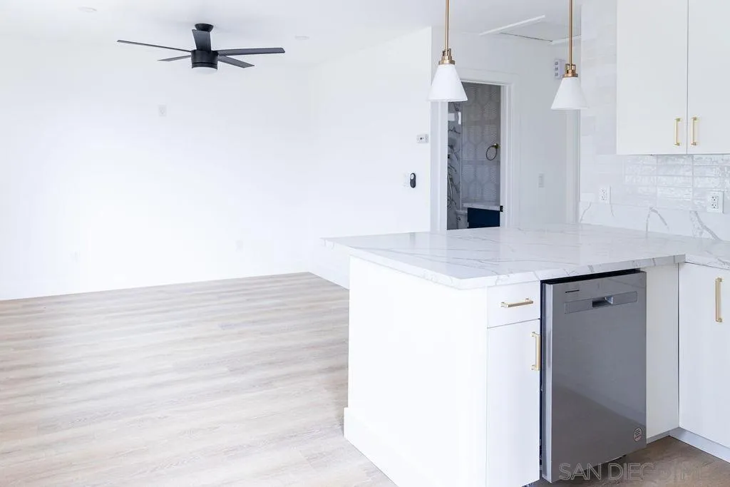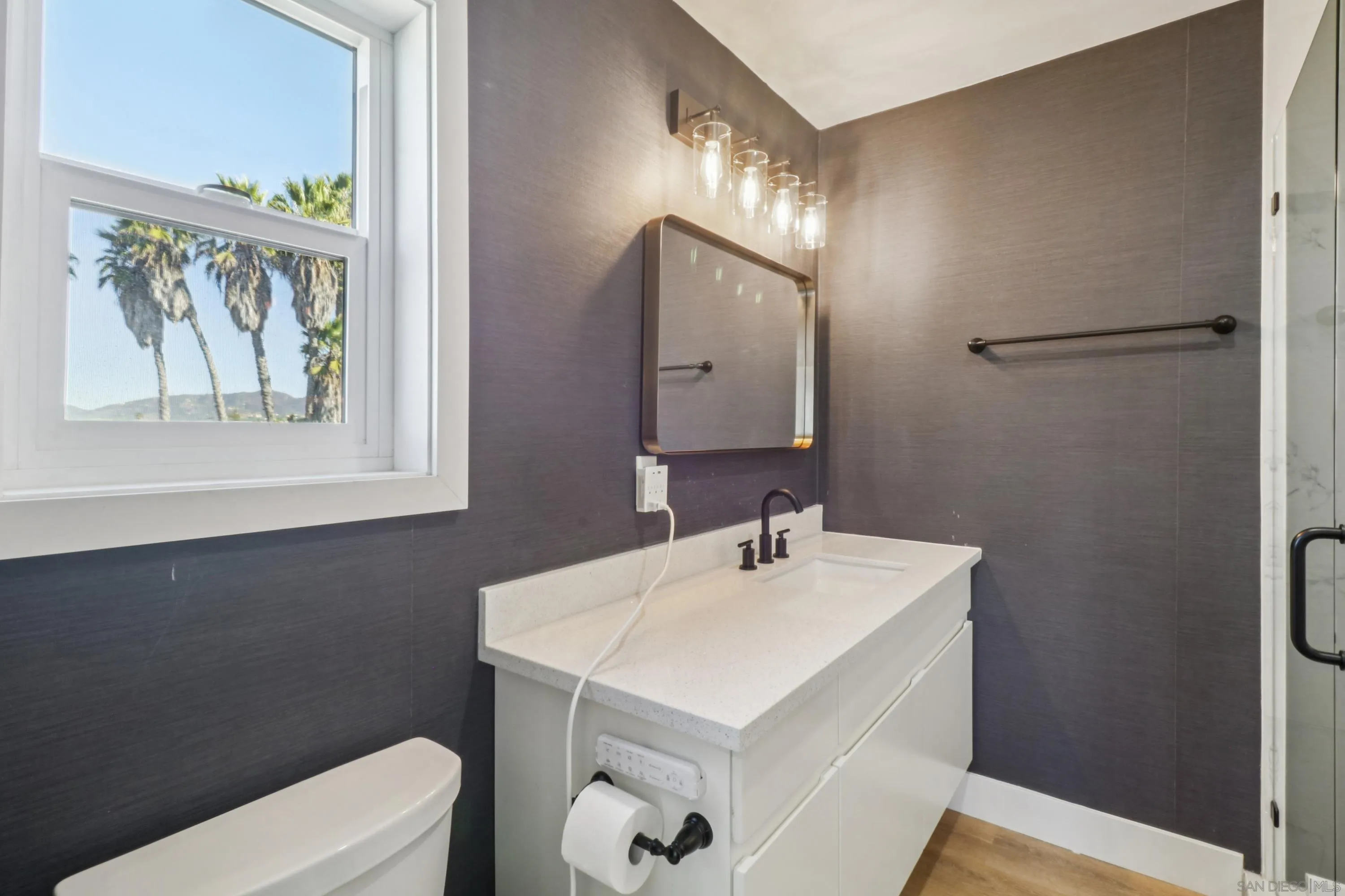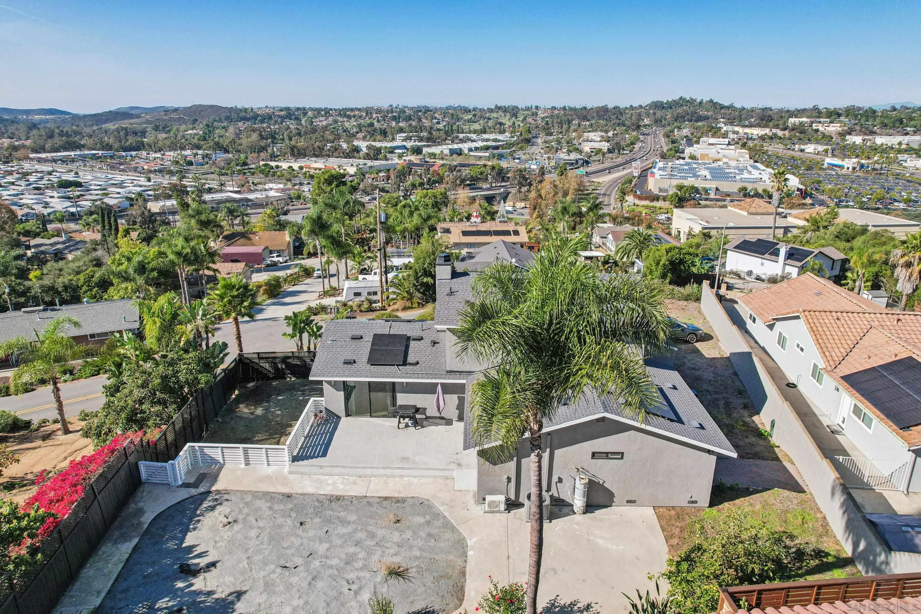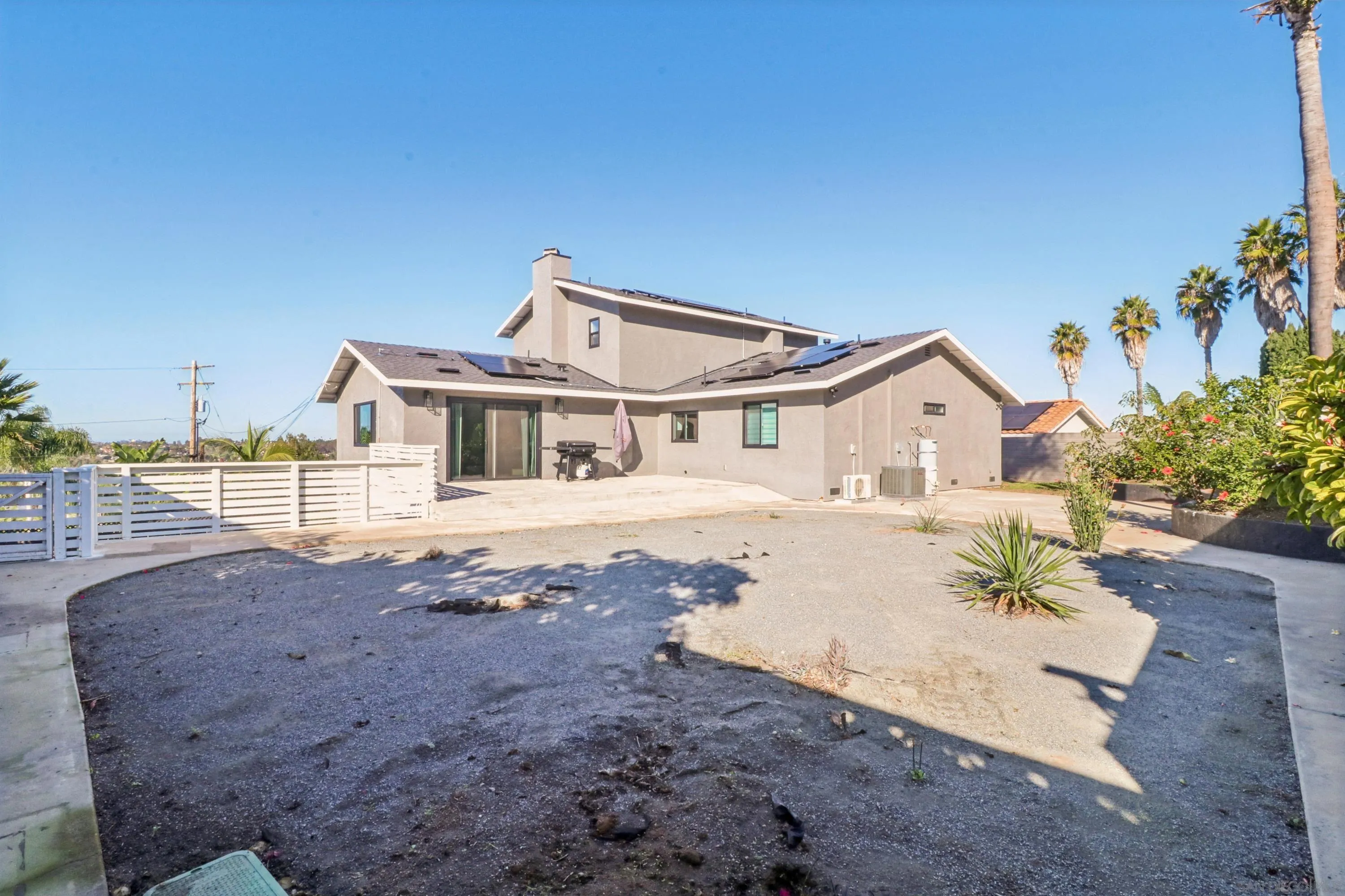 Set on a scenic hillside with panoramic canyon, mountain, and peek-a-boo ocean views, this beautifully remodeled Vista home offers exceptional versatility and value. The main residence spans over 2,300 square feet with three spacious en-suite bedrooms, ideal for multigenerational living or rental flexibility. A detached 1 bed / 1 bath ADU with its own garage adds income potential or guest space. The interior showcases modern upgrades throughout—wood and tile flooring, a fully remodeled kitchen with shaker cabinets, Quartz counters, and stainless appliances. Recent major improvements include a new roof, HVAC, dual-pane windows, and garage doors—all installed in 2024. The backyard is expansive, private, and fully fenced with a large patio ready for entertaining or relaxing. With no HOA or Mello-Roos, and a rare two-on-one layout, this is an incredible opportunity for homeowners or investors alike looking to maximize lifestyle and value in North County.
