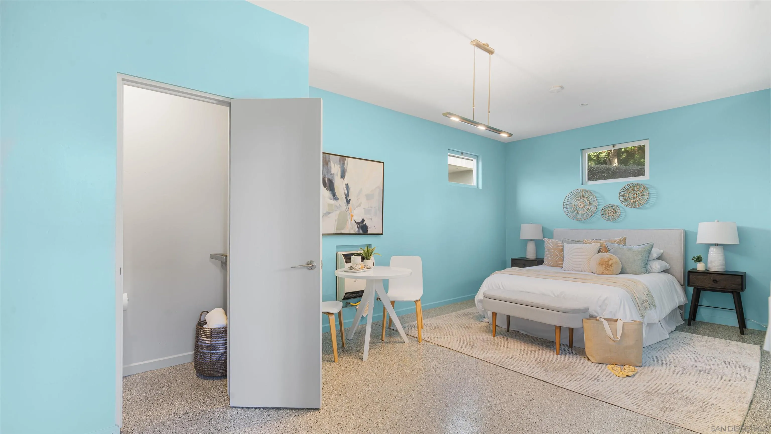 Just steps from the sand this ocean-view coastal retreat delivers the best of Carlsbad living—morning walks to the beach, salty breezes on the patio, and sunset views that never get old. Designed for effortless, elevated living, the home pairs privacy and “lock-and-leave” convenience with true luxury craftsmanship: Fleetwood windows and doors, solid wood oak and porcelain tile flooring, an in-home Garaventa Lift elevator, clean effortless finishes offer a warm, modern tone. The home is 3158 square feet, 3 bedrooms 2 full, 2 half baths. The 3rd bedroom, 1/2 bath is detached with a garage, could be private office, playroom or art studio. At the heart of the home, a chef’s kitchen shines with Wolf appliances (steam oven, oven, 5-burner cooktop), Sub-Zero refrigeration, and a Miele dishwasher—anchored by a heat-tolerant soapstone countertop and a showstopping cast-glass island inspired by the beach itself. Custom, locally made cabinetry is featured throughout (kitchen, baths, and laundry), adding a level of detail you can feel in every room. Unwind in spa-caliber baths with designer fixtures, Toto toilets, a freestanding soaking tub, and custom cast-glass shower enclosures. Practical upgrades include an on-demand water heater with timed recirculation and a Tesla charger. Outside, the property features drought-tolerant landscaping designed to thrive without irrigation—perfect for coastal ease with low maintenance.