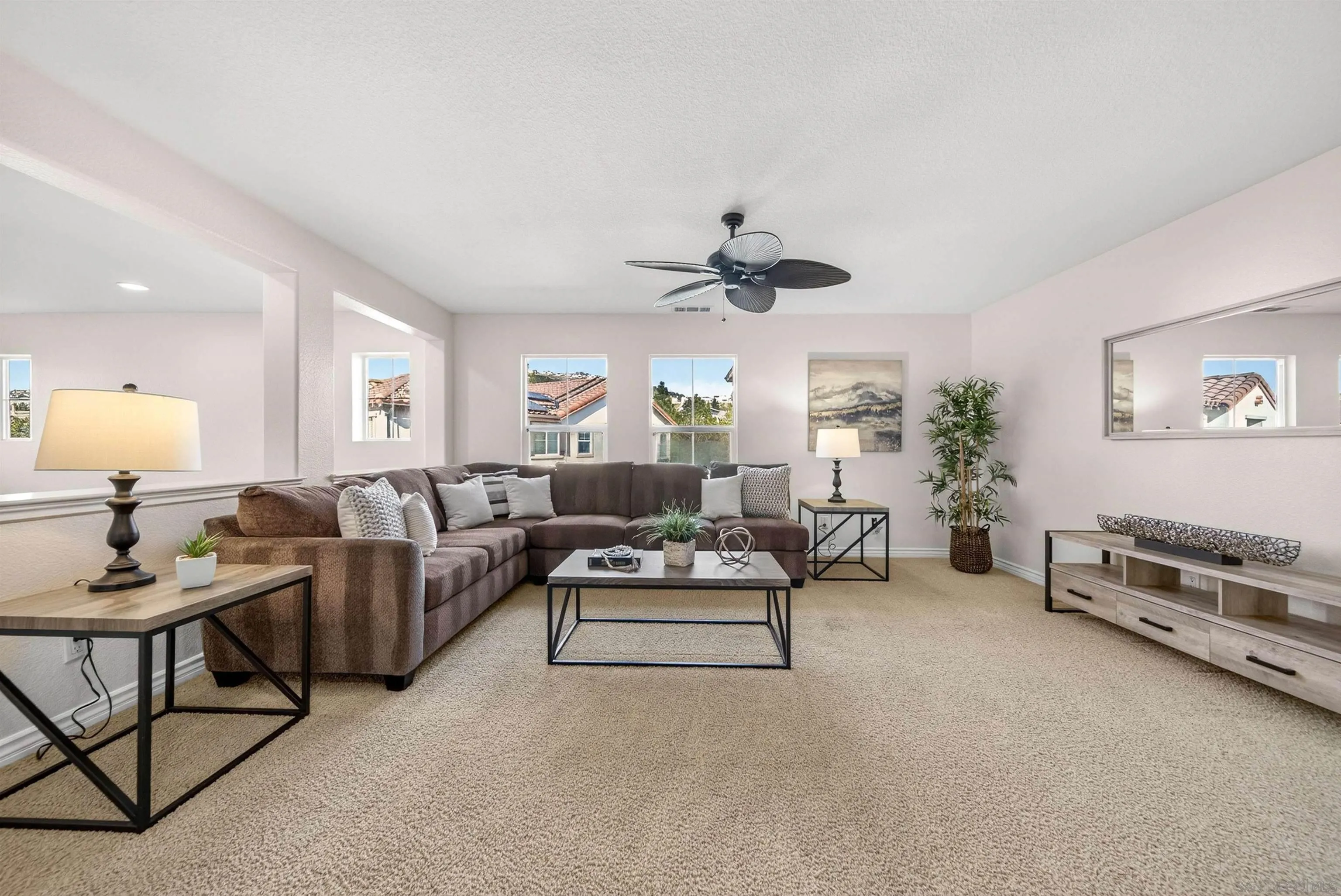 An expansive backyard designed for unforgettable gatherings sets the tone for this special San Elijo Hills home. Located on a spacious cul-de-sac lot within the gated community of Saverne, this residence features a resort-style outdoor retreat with a sparkling pool and spa, built-in BBQ area, fire pit, and multiple seating areas perfect for entertaining or relaxing under the stars. Inside, fresh interior paint and a thoughtfully designed layout create a bright and welcoming atmosphere. The home offers formal living and dining rooms, a recently updated kitchen with brand-new counters and a center island that overlooks the family room, a first-floor bedroom with full bath, and a flexible den or office that could easily convert into an additional downstairs bedroom. Upstairs, a spacious loft provides versatility alongside two secondary bedrooms and an oversized primary suite featuring a retreat, dual walk-in closets, and a private ensuite bath. A charming courtyard garden adds a peaceful touch where butterflies flutter among the greenery. Ideally located near popular schools, parks, scenic trails, and the lively Town Square, this home offers the lifestyle that makes San Elijo Hills so special.