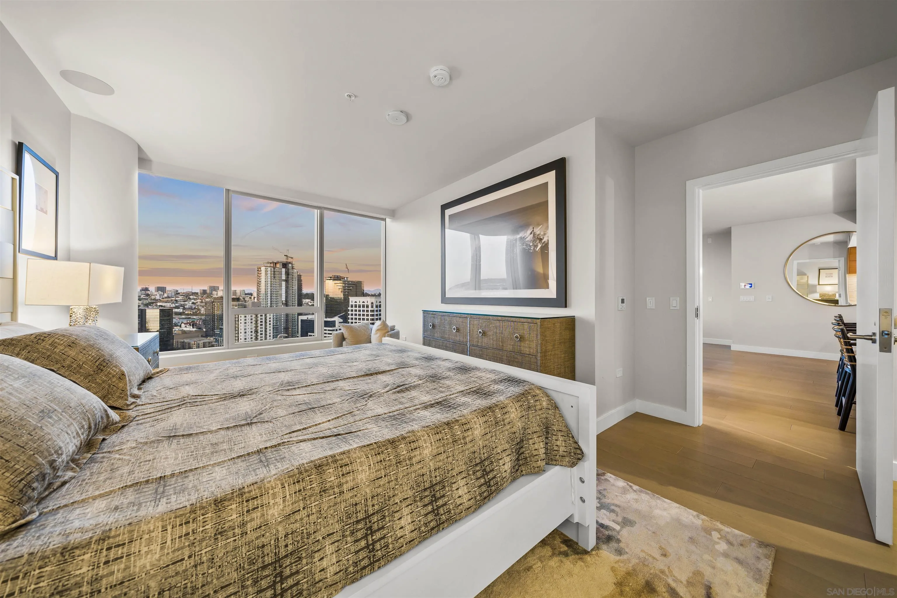 Experience elevated living at Pacific Gate in this fully furnished 30th-floor residence offering breathtaking city skyline and bay views. This 2-bedroom, 2-bathroom home features a spacious and thoughtfully designed layout with floor-to-ceiling windows, a private balcony, and power shades throughout. The primary suite includes a large walk-in closet and a spa-inspired bathroom with both a soaking tub, a separate shower and heated floors. The residence comes fully equipped, including furniture, kitchenware, plates, and glassware, providing a true turnkey living experience. Two assigned parking spaces are included. Pacific Gate offers world-class amenities including a pool, spa, steam and sauna, state-of-the-art fitness center, private movie theater, business center, conference room, and a dedicated dog relief area. Residents also enjoy concierge and security services, access to a fleet of four luxury vehicles, and the unique benefit of reserving the building’s private yacht at a preferred rate. A rare opportunity to lease a fully furnished residence in one of San Diego’s most iconic luxury towers.