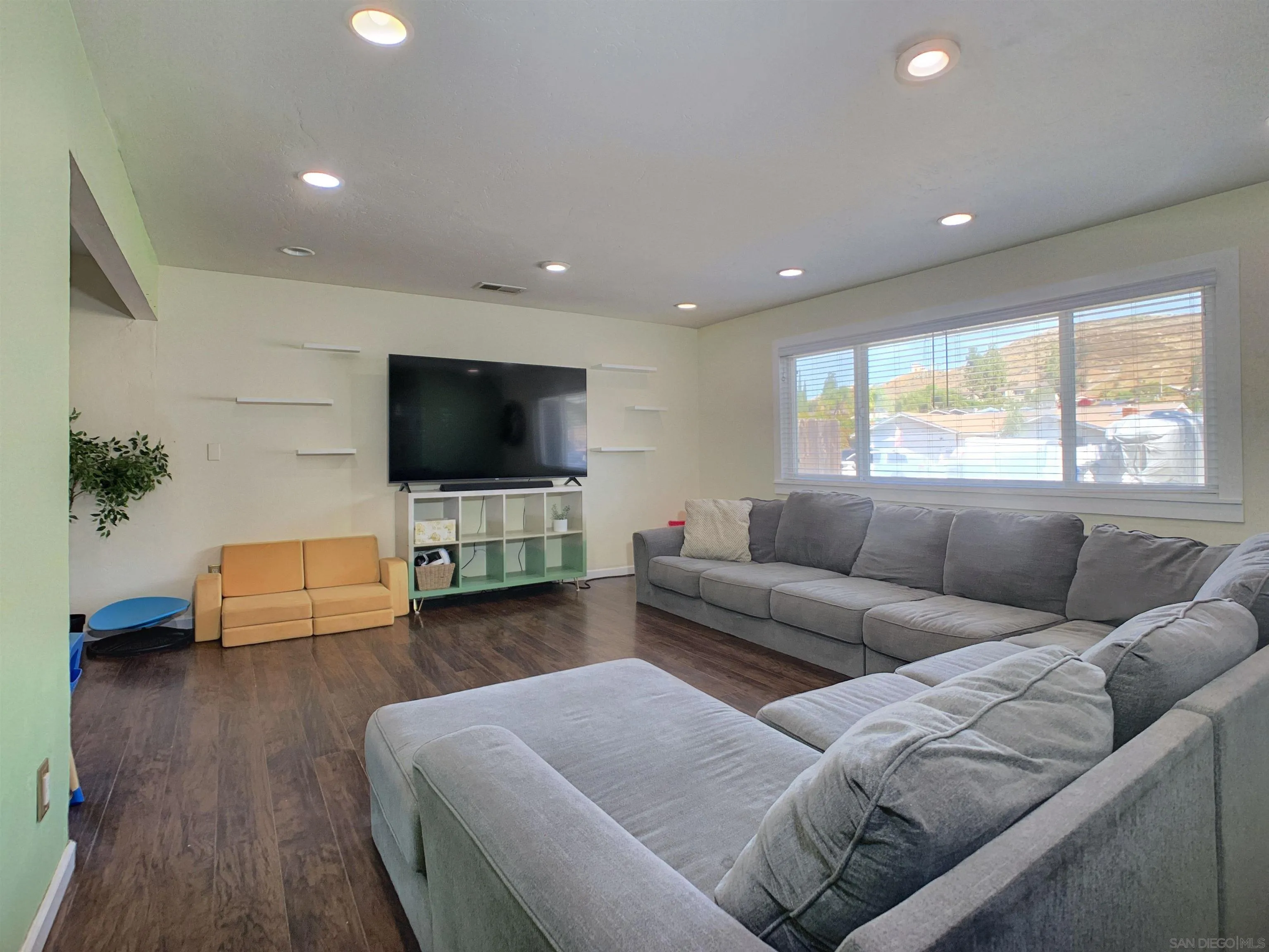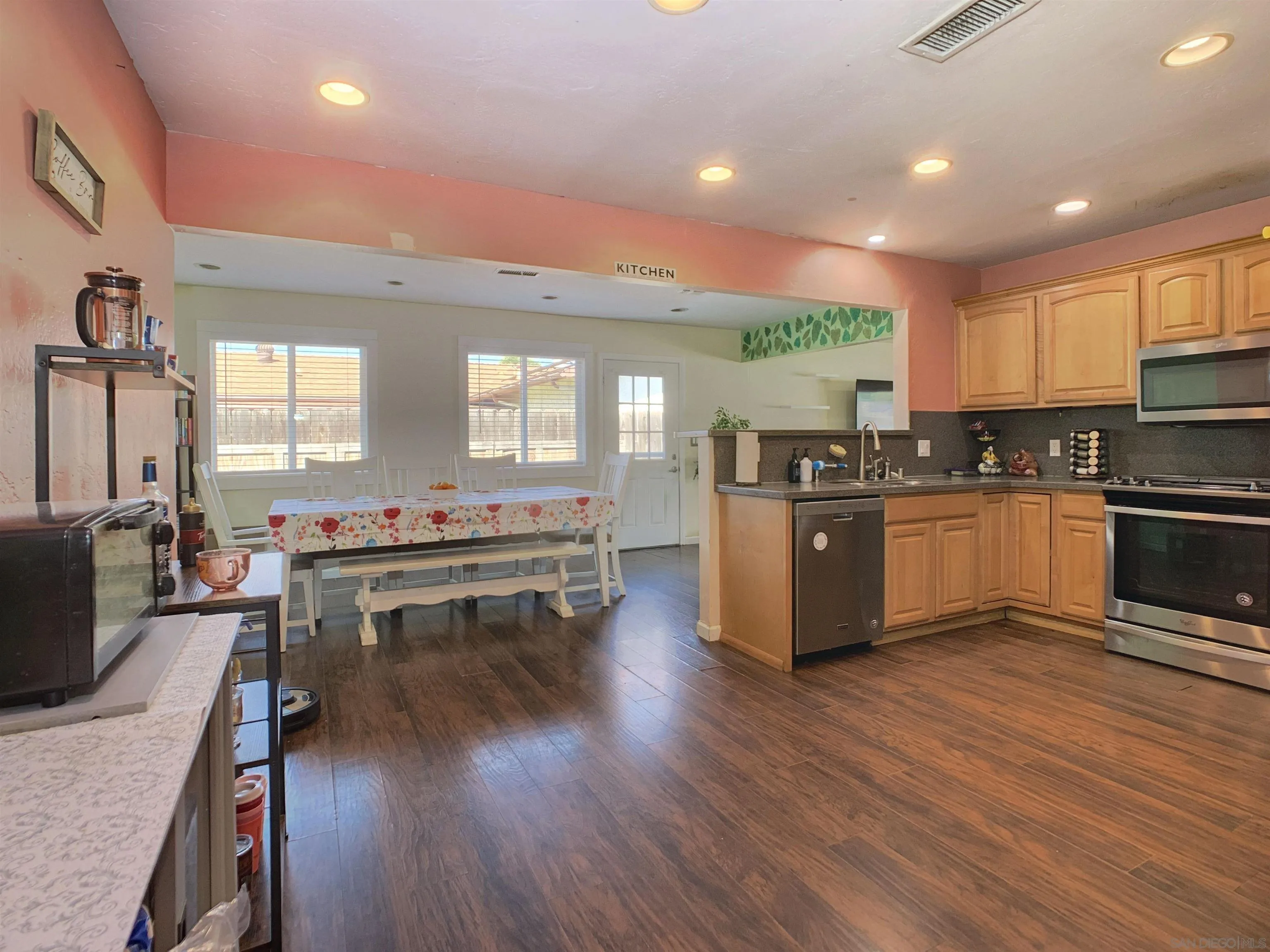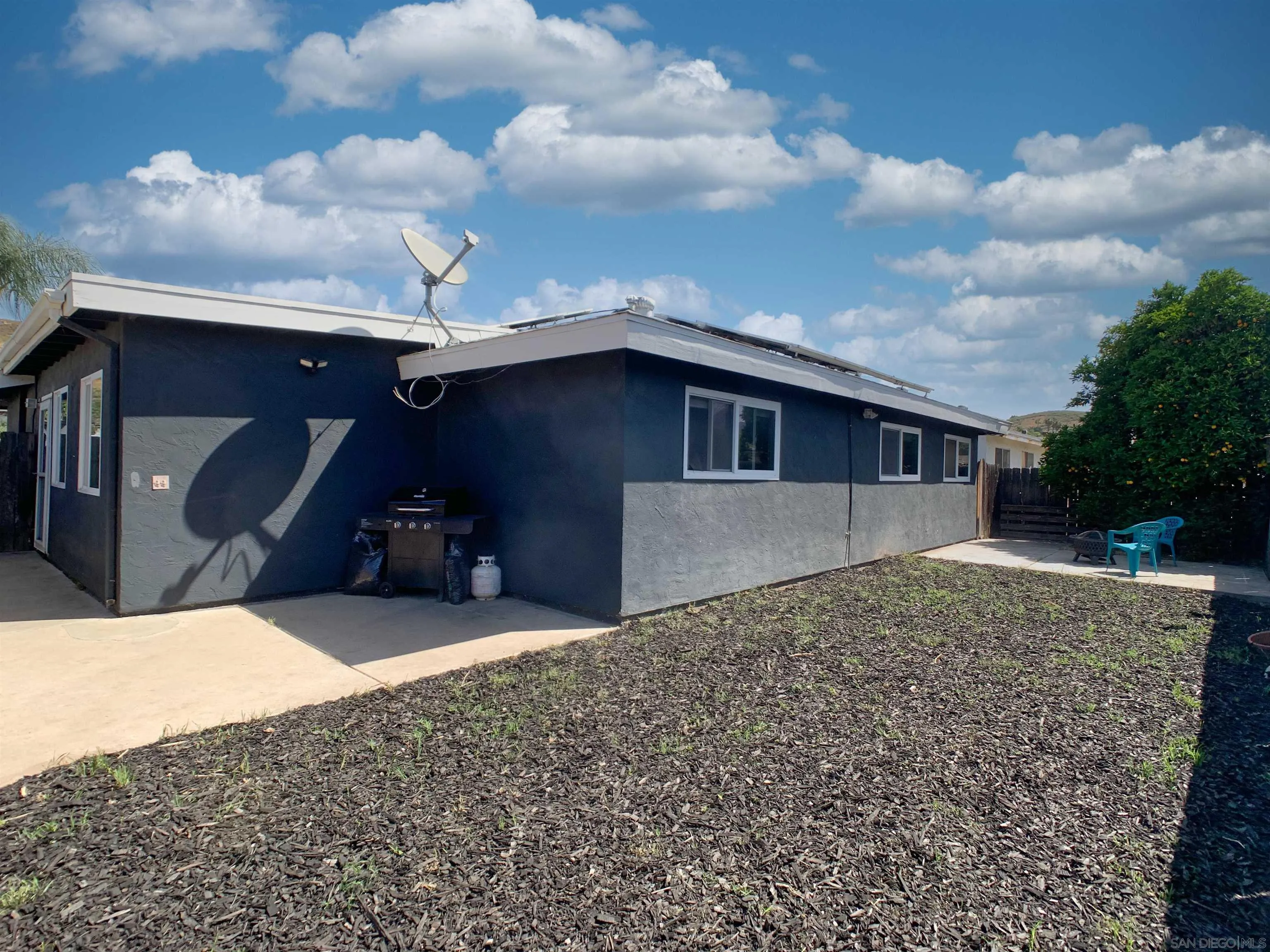 Spacious & Beautiful Practical Family Home This updated 4 bedroom, 2 bath & 2-Car garage home has everything you desire & RV parking. Double-Door Front Entry, modern double-paned windows & ceiling fans throughout home. Kitchen comes with Stainless Steel Appliances with wooden cabinetry with plenty of storage areas. Updated with laminate wood flooring throughout home, and over 1,700 square feet of living space. This homes has several recent upgrades to kitchen & bathrooms. White picket fence in front yard perfect for kids to play. Backyard has orange tree, concrete slab for entertaining. Nestled in a calm, family-oriented community. Solar keeps energy costs low & has already been paid off & will convey to new owners, Centrally located just minutes from schools, shopping, and restaurants, with easy access to Interstate 8 and Highway 67, and close to local lakes. Washer, dryer are also included! No HOA.