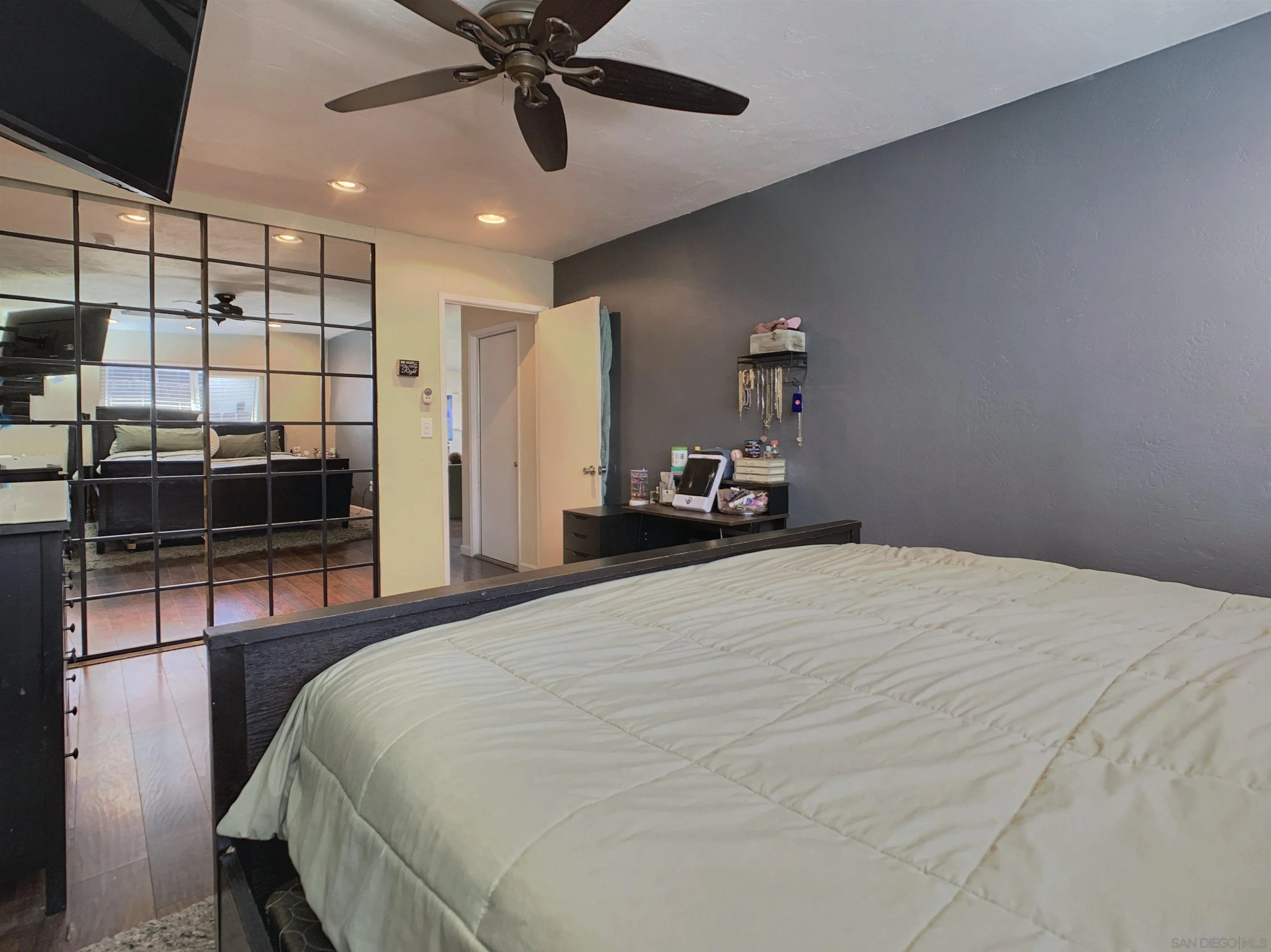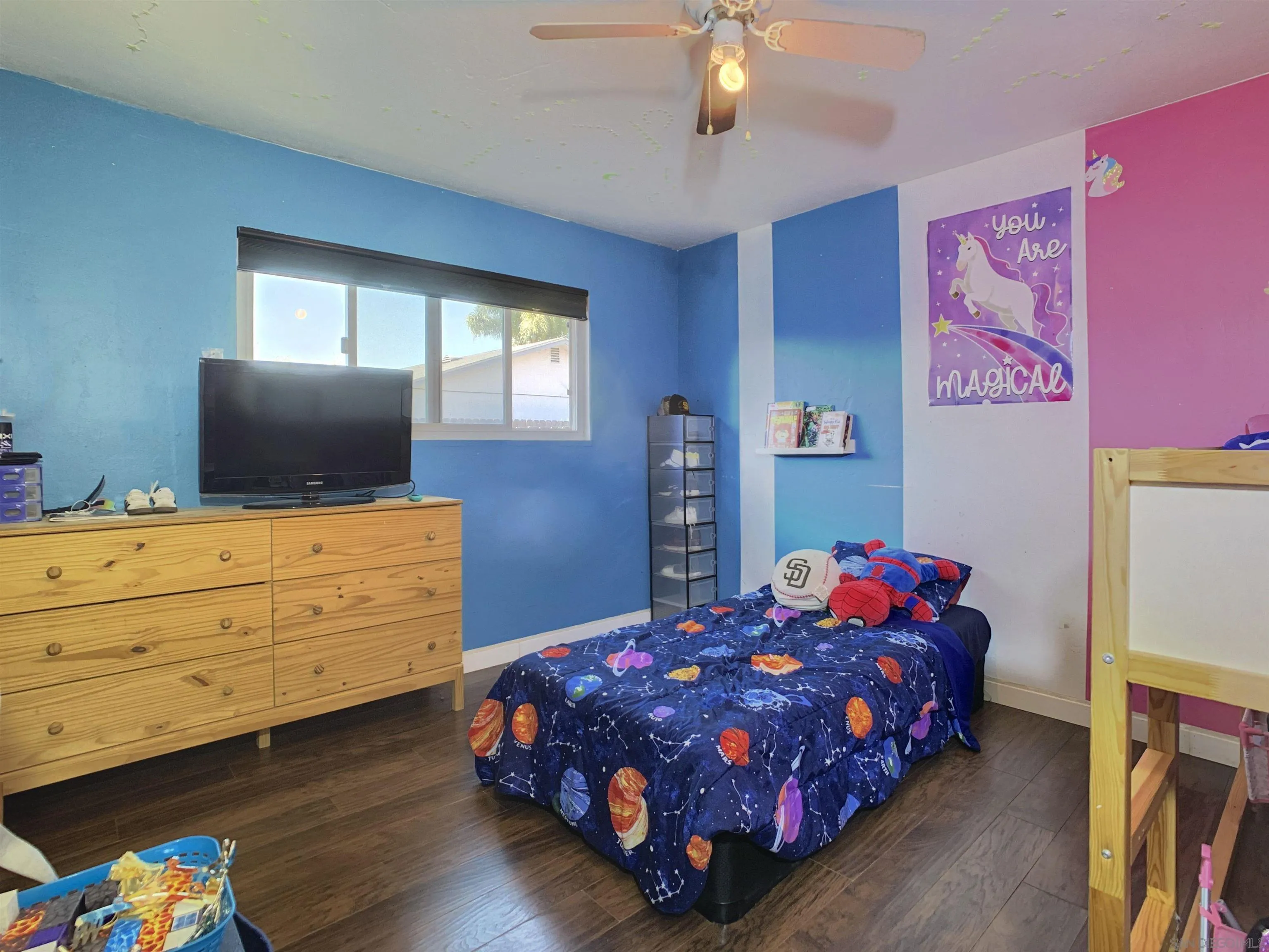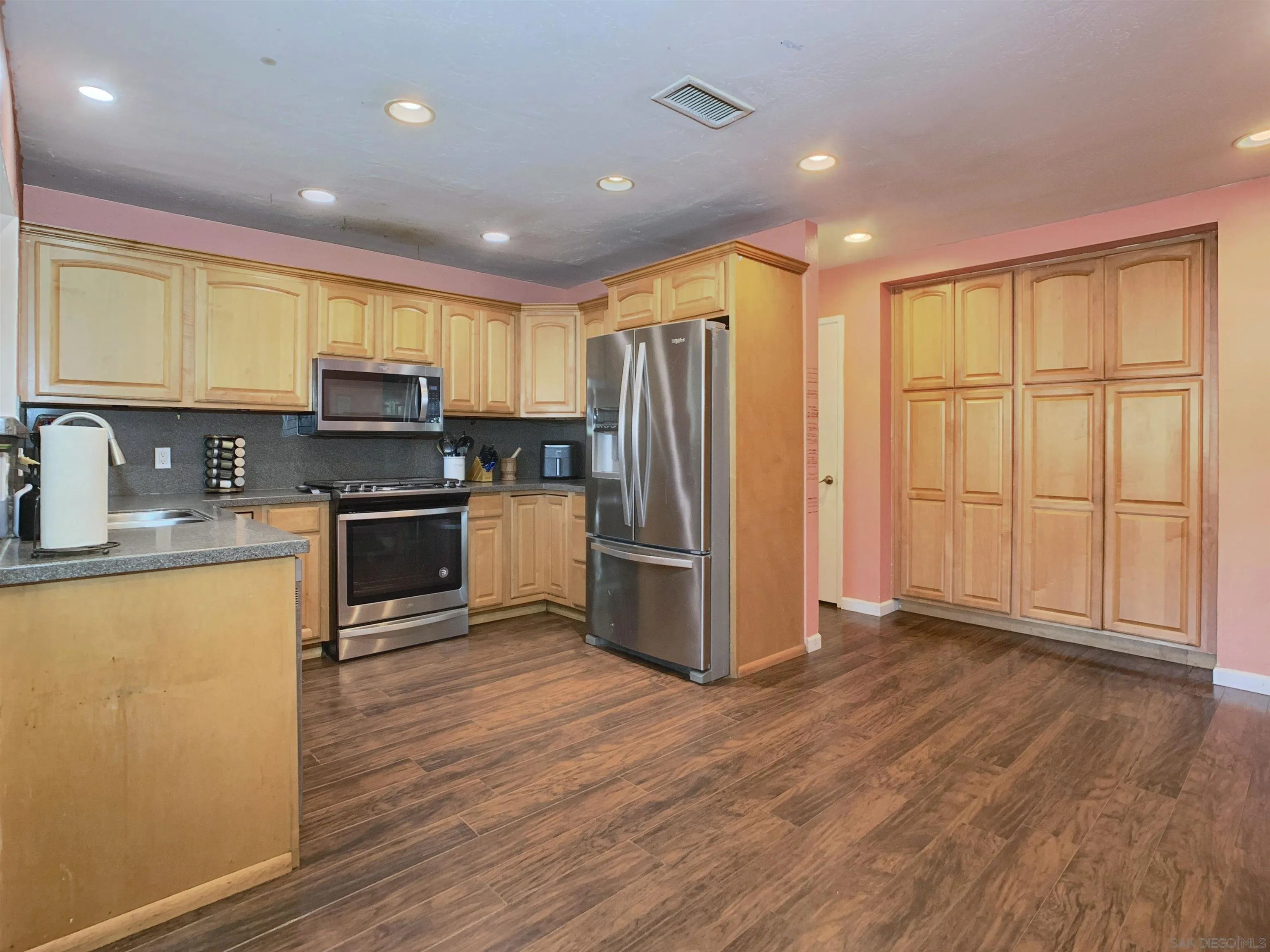 Spacious & Beautiful Practical Family Home This updated 4 bedroom, 2 bath & 2-Car garage home has everything you desire & RV parking. Double-Door Front Entry, modern double-paned windows & ceiling fans throughout home. Kitchen comes with Stainless Steel Appliances with wooden cabinetry with plenty of storage areas. Updated with laminate wood flooring throughout home, and over 1,700 square feet of living space. This homes has several recent upgrades to kitchen & bathrooms. White picket fence in front yard perfect for kids to play. Backyard has orange tree, concrete slab for entertaining. Nestled in a calm, family-oriented community. Solar keeps energy costs low & has already been paid off & will convey to new owners, Centrally located just minutes from schools, shopping, and restaurants, with easy access to Interstate 8 and Highway 67, and close to local lakes. Washer, dryer are also included! No HOA.