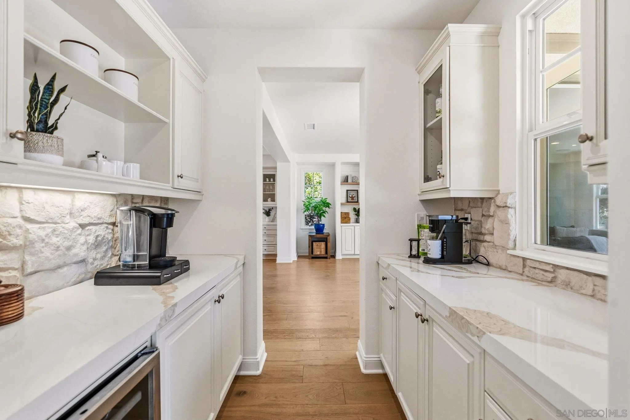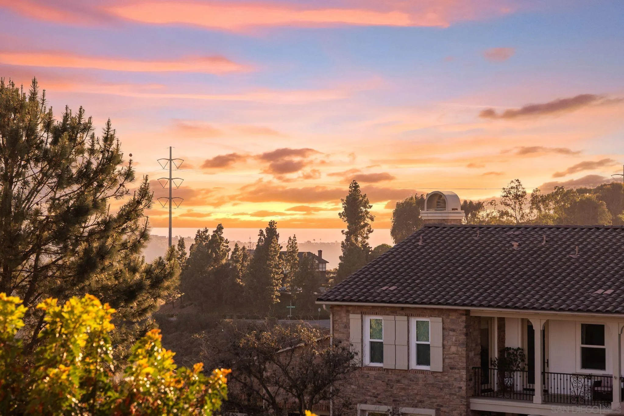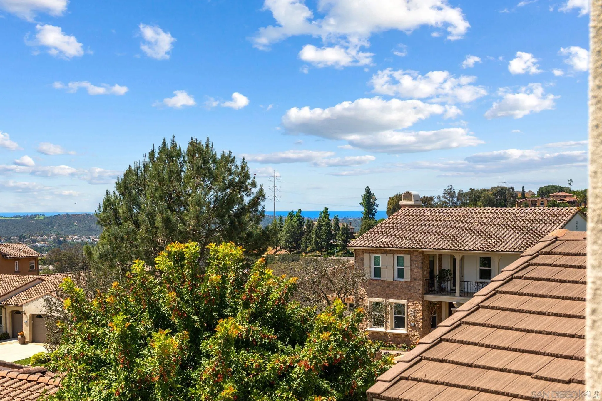 erched on an elevated 1/3 of an acre in the coveted and gated community of La Costa Ridge, this extensively upgraded residence captures breathtaking sunrises, sunsets, and peekaboo ocean views. This offers a rare blend of privacy, luxury, and coastal lifestyle. Thoughtfully reimagined in 2024, the home features a stunning designer kitchen with quartz countertops, Thermador appliances, a statement 48” stainless steel sink, and Pottery Barn lighting. Beverly Hills addition wide-plank 10.5” white oak hardwood flooring flows throughout, complemented by fresh interior paint, upgraded carpet, and a dramatic 100” linear fireplace with custom stone surround and built-ins. The primary suite is a true retreat with a custom California Closet, quartz countertops, built-ins, and spa-inspired upgrades. Wellness-focused enhancements include zero VOC materials throughout and a whole-house. Enjoy seamless indoor-outdoor living with a private saltwater pool, removable safety gate, and new Pentair smart system. Owned solar + pool solar heating maximize efficiency. Additional highlights include a dedicated office with private entrance, downstairs guest bedroom with private entrance, en-suite bathrooms in every bedroom, luxury fandeliers, and thoughtful high-end finishes throughout. Turnkey, designer-upgraded, and ideally located—this is La Costa Ridge living at its finest.
