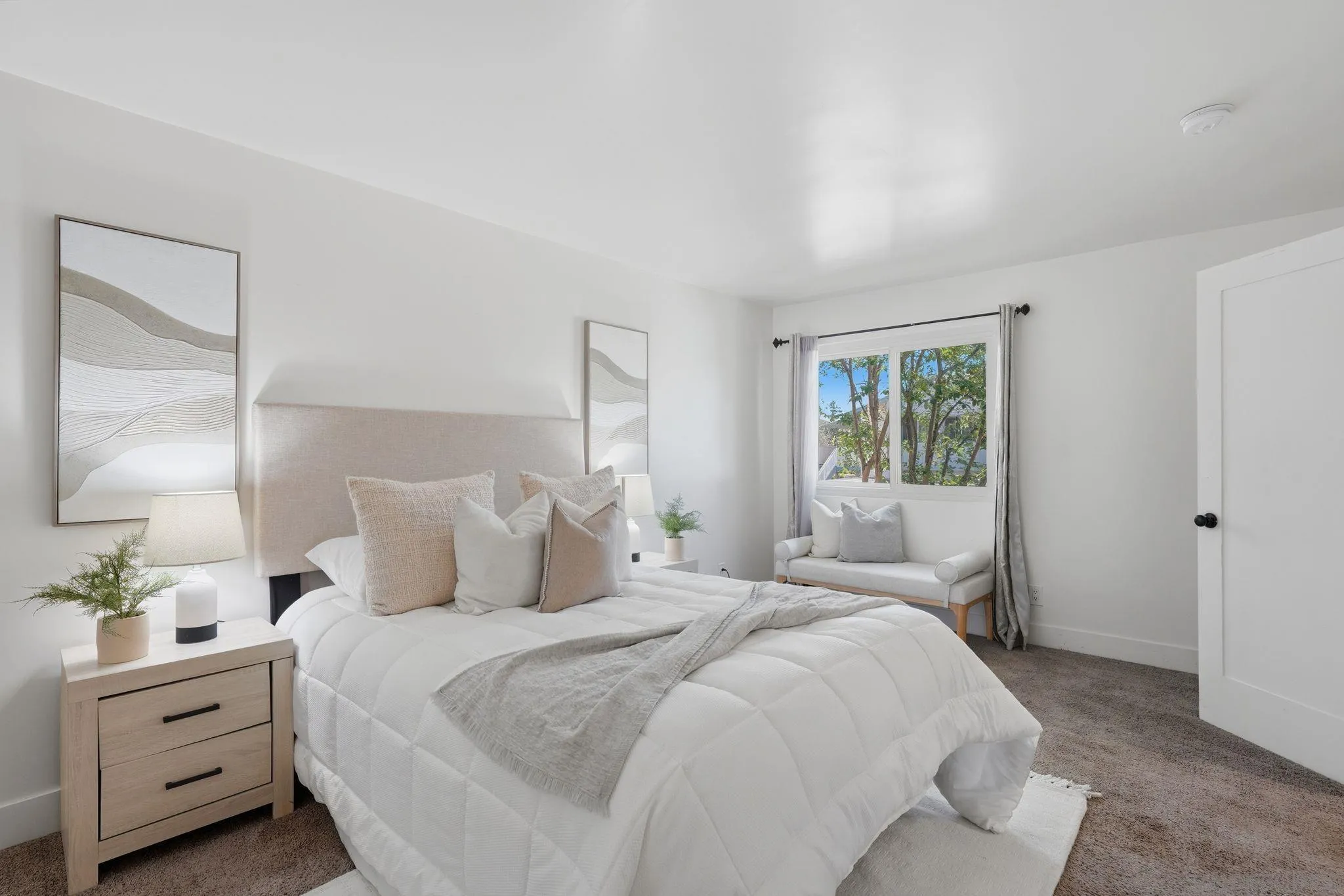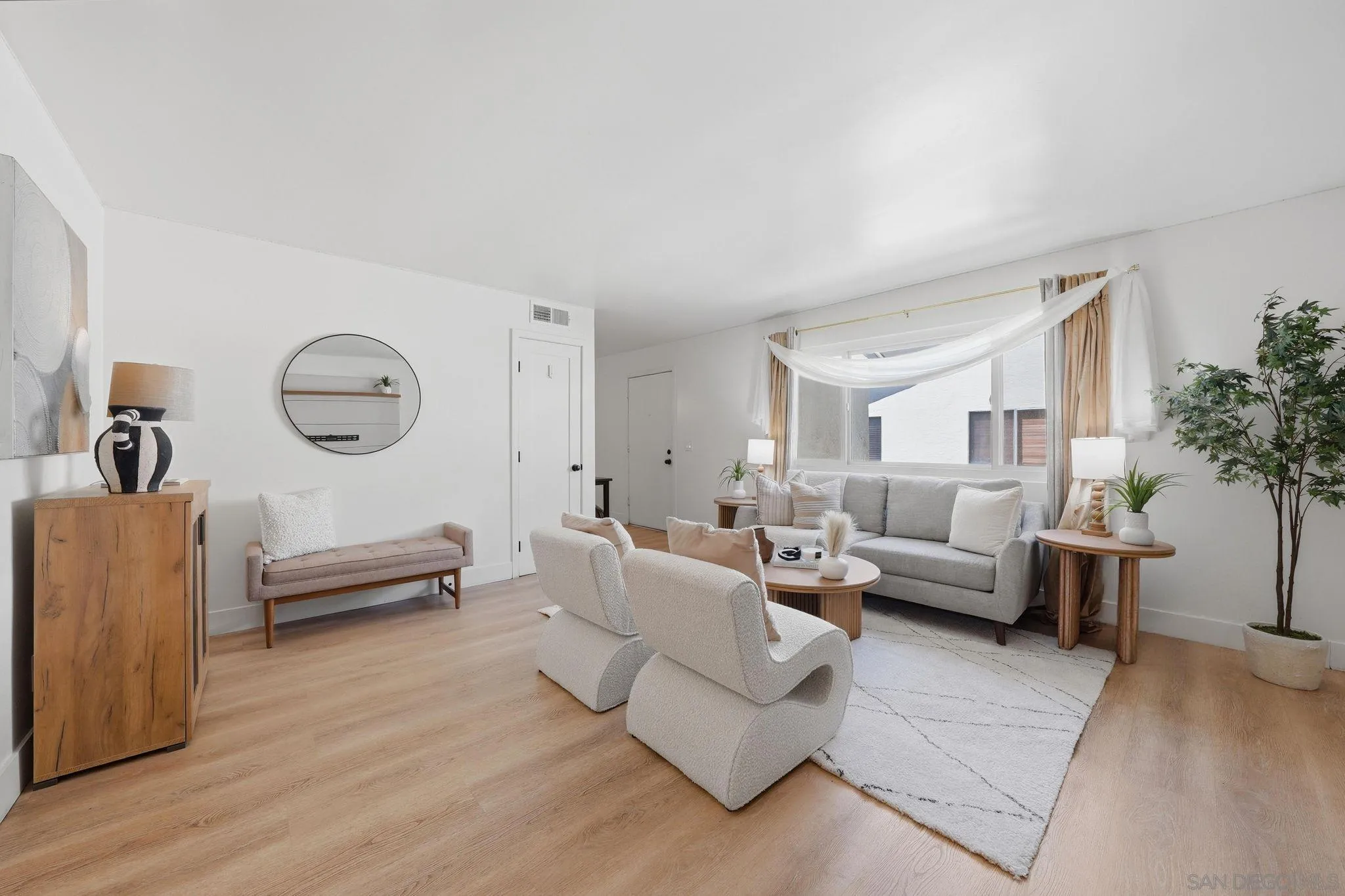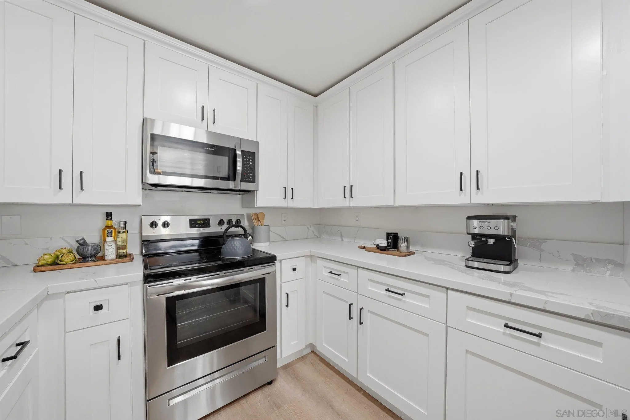 Welcome to this beautifully renovated end-unit condo in desirable Santee, California, known for its scenic surroundings and easy access to outdoor recreation. This stylish 3-bedroom, 2-bath home offers 1,149 sq ft of bright, single-level living with an open-concept layout. The modern kitchen features quartz countertops, stainless steel appliances, and ample cabinetry—perfect for everyday living and entertaining.The well-sized bedrooms offer flexibility for guests, a home office, or growing households, while the updated bathrooms add comfort and style. Enjoy added privacy along with covered parking and guest spaces. Community amenities include a pool and beautifully maintained greenbelt areas. Santee is loved for its proximity to Mission Trails Regional Park, Santee Lakes, shopping, dining, and convenient freeway access—offering both tranquility and accessibility. VA and FHA approved, this turnkey home is move-in ready and a fantastic opportunity for a wide range of buyers.