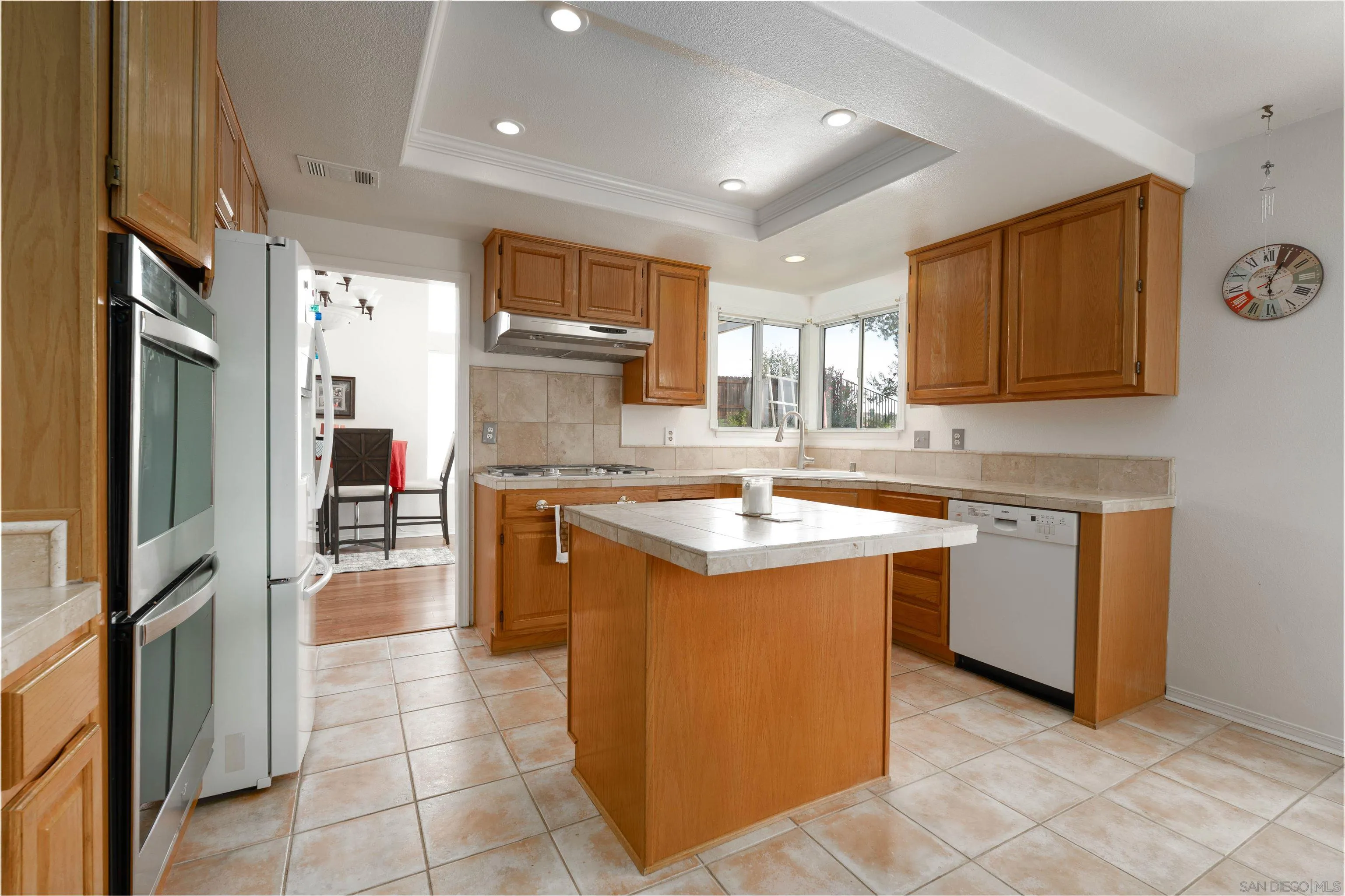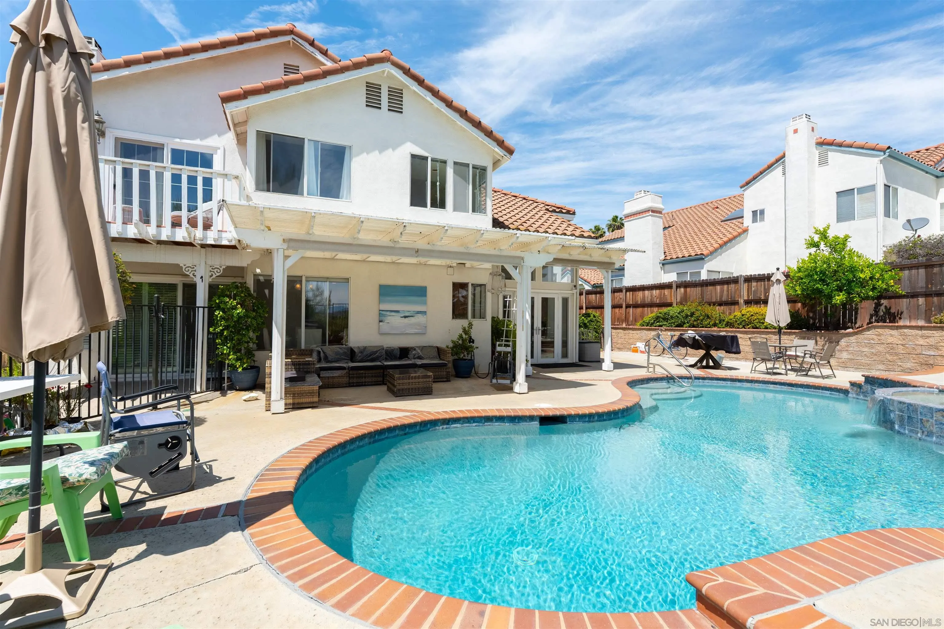 Welcome to your private retreat in the heart of Murrieta, where comfort and style come together in this stunning pool home. This 4 bedroom, 3 bathroom home features a full bedroom and bath downstairs along with a spacious 3 car garage. As you enter, you are greeted by soaring ceilings, beautiful bamboo flooring, and an abundance of natural light. The living and dining areas showcase large picture windows, custom built-ins, and a cozy fireplace that creates a warm and inviting atmosphere. The kitchen offers generous counter space, a center island, and opens seamlessly to the oversized family room with a second fireplace, making it perfect for both entertaining and everyday living. The downstairs bedroom and full bath provide flexibility for guests, multigenerational living, or a home office. Upstairs, the primary suite is positioned at the back of the home to take advantage of privacy and mountain views. Enjoy your own private balcony along with a spacious en suite bathroom featuring dual sinks, a soaking tub, and a glass enclosed shower. Two additional bedrooms and a shared bathroom complete the upper level. Step outside to your backyard oasis with a sparkling pool and spa, ideal for relaxing or entertaining. The scenic views create a peaceful backdrop that makes this home truly special. Located near award winning Murrieta schools, shopping, dining, and just minutes from Temecula wine country with easy access to the 15 and 215 freeways.