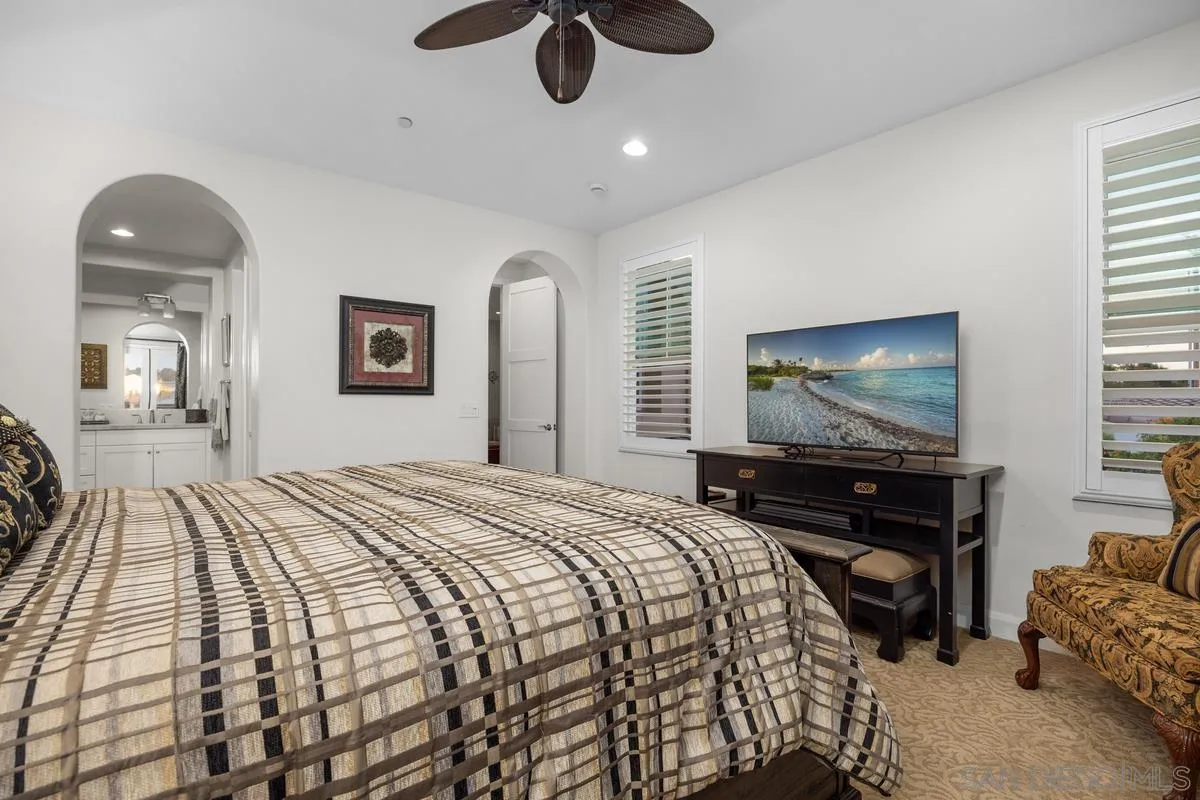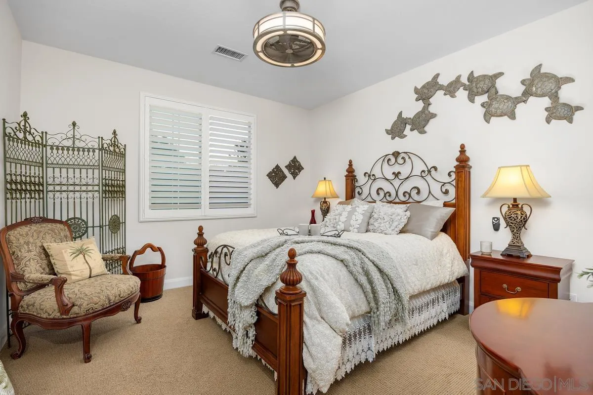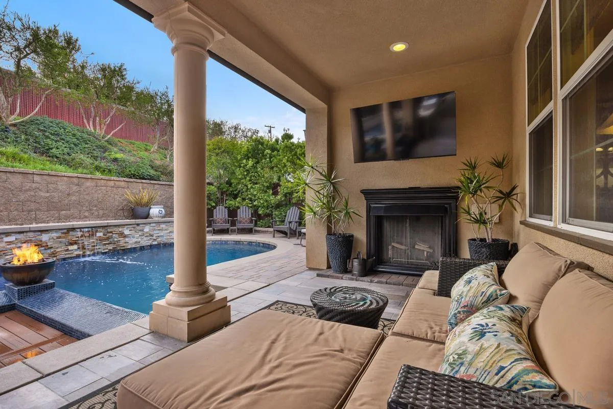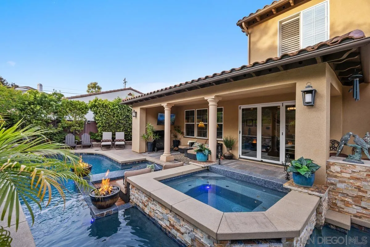 Enjoy relaxed coastal living in this beachside community of Carlsbad West. This very private home features a resort style backyard with a custom pool, lounge area, and jacuzzi. Enjoy the water features and fire boxes from your spa for that perfect zen experience. The stacked dining room door provides a seamless transition whether you are dining indoors or al-fresco. The Chef's kitchen is appointed with abundant storage, stainless steel appliances, built in refrigerator, trash compactor, and a fantastic island for extra seating. The open concept main living areas takes full advantage of the resort feeling of this home. The first floor ensuite bedroom with a walk in closet could be used as a second primary bedroom. The upstairs Primary bedroom with a private balcony and luxurious bathroom create a restful sanctuary. The two additional bedrooms also have walk in closets and share a full bath. The loft area upstairs provides a nice space for reading or just lounging. The laundry room is located directly off the garage and has a utility sink and storage. The garage has a charging station and epoxy flooring. The solar is included and owned. The Buena Vista Reservoir Park is located directly behind this home and has a panoramic ocean view.