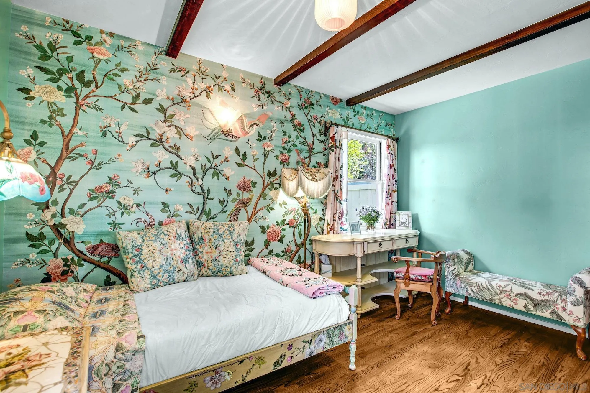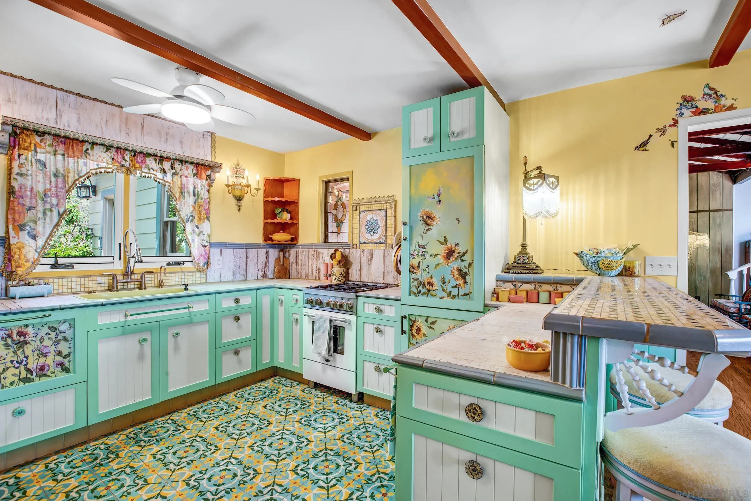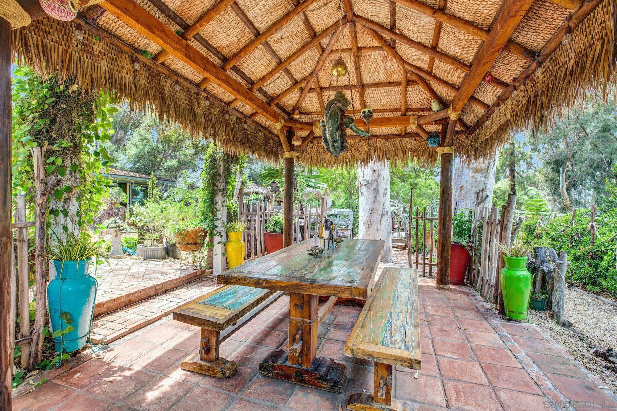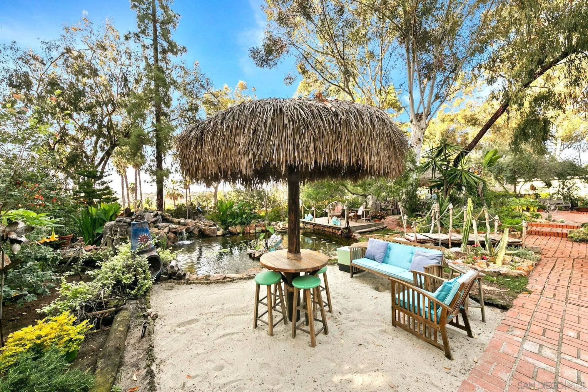 Private storybook-style home on a hilltop acre in Bonita with dual access and coastal breezes flowing through the Sweetwater Corridor. Designed for seamless indoor-outdoor, resort inspired living, with multiple outdoor gathering spaces, lush landscaped grounds, desert-inspired cactus gardens edged in natural stone, tranquil ponds and waterfalls--all creating a peaceful, immersive setting. A circular driveway completes the approach to the home. This single-story ranch blends character with functionality. The kitchen and primary suite have been custom designed, featuring high-end appliances, refined finishes, and a light filled bathroom showcasing mosaic tile and vintage style lighting. Original hardwood walls, floors and beams have been meticulously restored and preserved, complemented by custom carvings, tile work and architectural details that add warmth and depth throughout. The home offers 3 bedrooms, 3 bathrooms, 2 oversized walk-in closets and multiple bonus spaces created over time. Fully fenced with expansive usable grounds, the property provides privacy, flexibility, zoning for horses, donkeys, chickens, or goats and potential for ADUs (buyer to verify). Conveniently located approximately 15 minutes to San Diego International Airport or CBX and just minutes to the bay, parks and South Bay Marina.