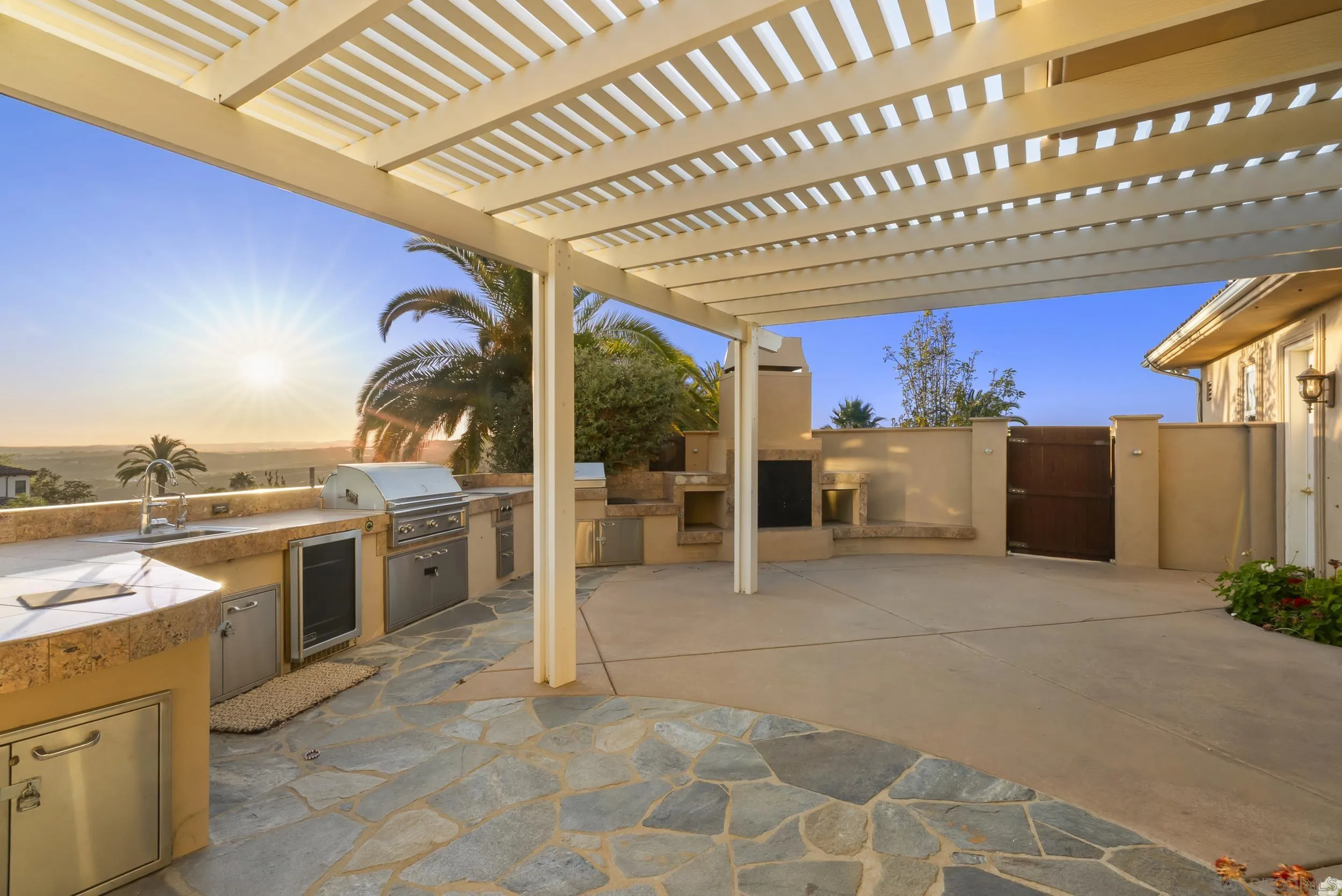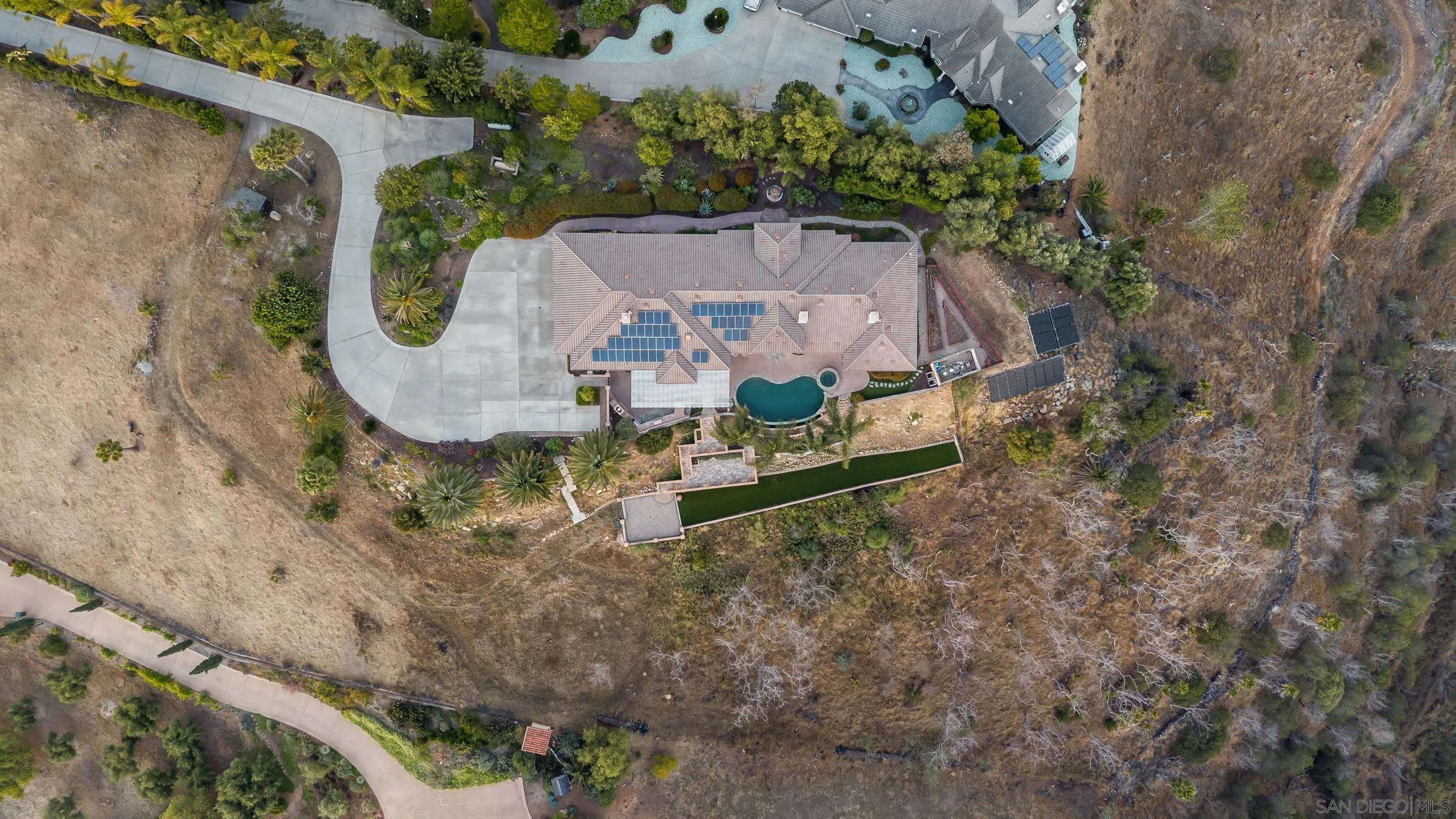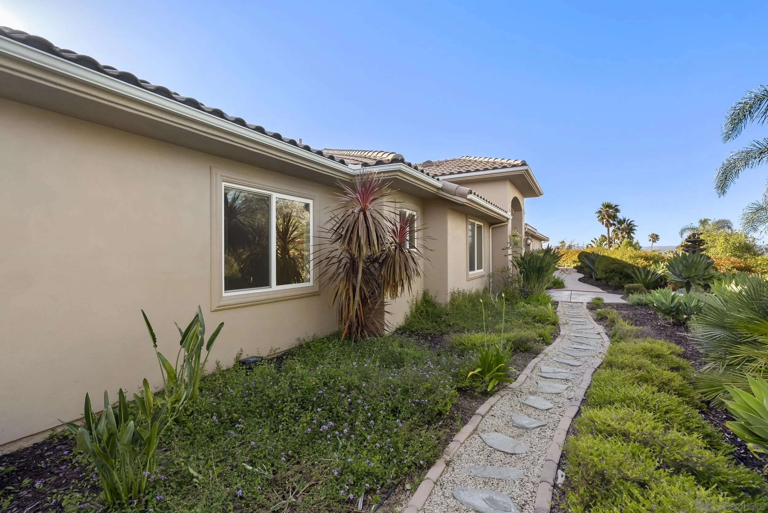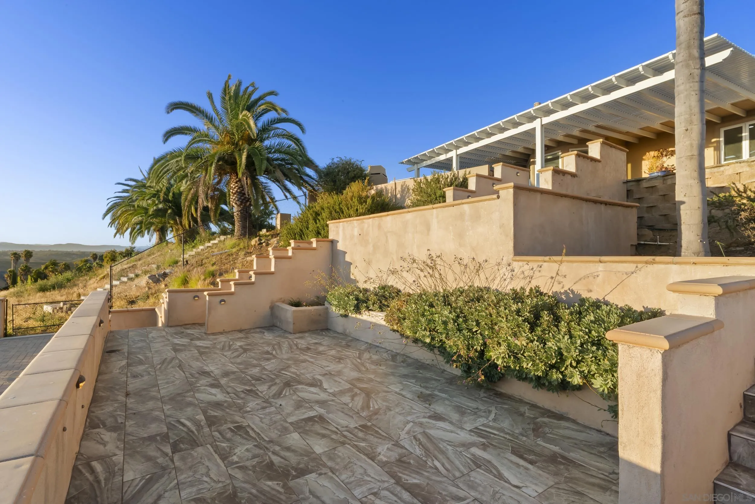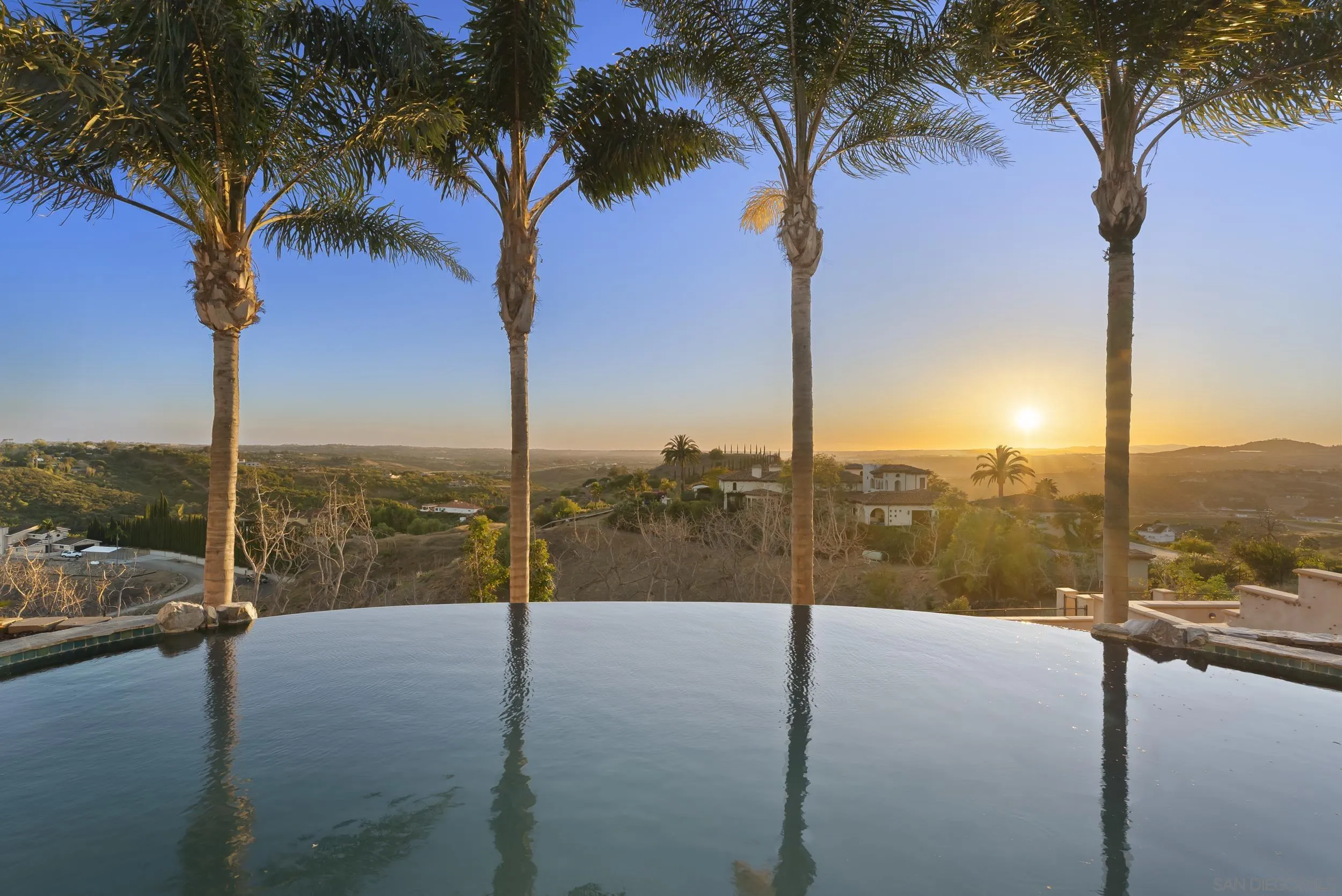 Set on over 5 acres in the hills of Bonsall, this 5,412 sq ft custom single-level estate, built in 2005, captures sweeping 360° views of the San Luis Rey Valley and beyond. A gated, tree-lined drive leads to a thoughtfully designed home featuring 4 bedrooms plus 2 offices, each bedroom with its own en-suite bath, and a spacious primary suite with a walk-in closet and flex space for a gym or lounge. Designed for seamless indoor/outdoor living, the home offers a chef’s kitchen with a large island, three fireplaces, fire sprinklers, an oversized laundry room, and a four-car garage. The resort-style grounds feature an infinity-edge pool and spa, outdoor kitchen, and a dedicated pool bathroom with shower, perfect for entertaining. The property includes a variety of fruit trees, avocado trees, and space to expand into a full avocado grove. Fully paid-off solar, septic, and usable land with room for future expansion complete the offering. Private, scenic living just minutes from the I-15.