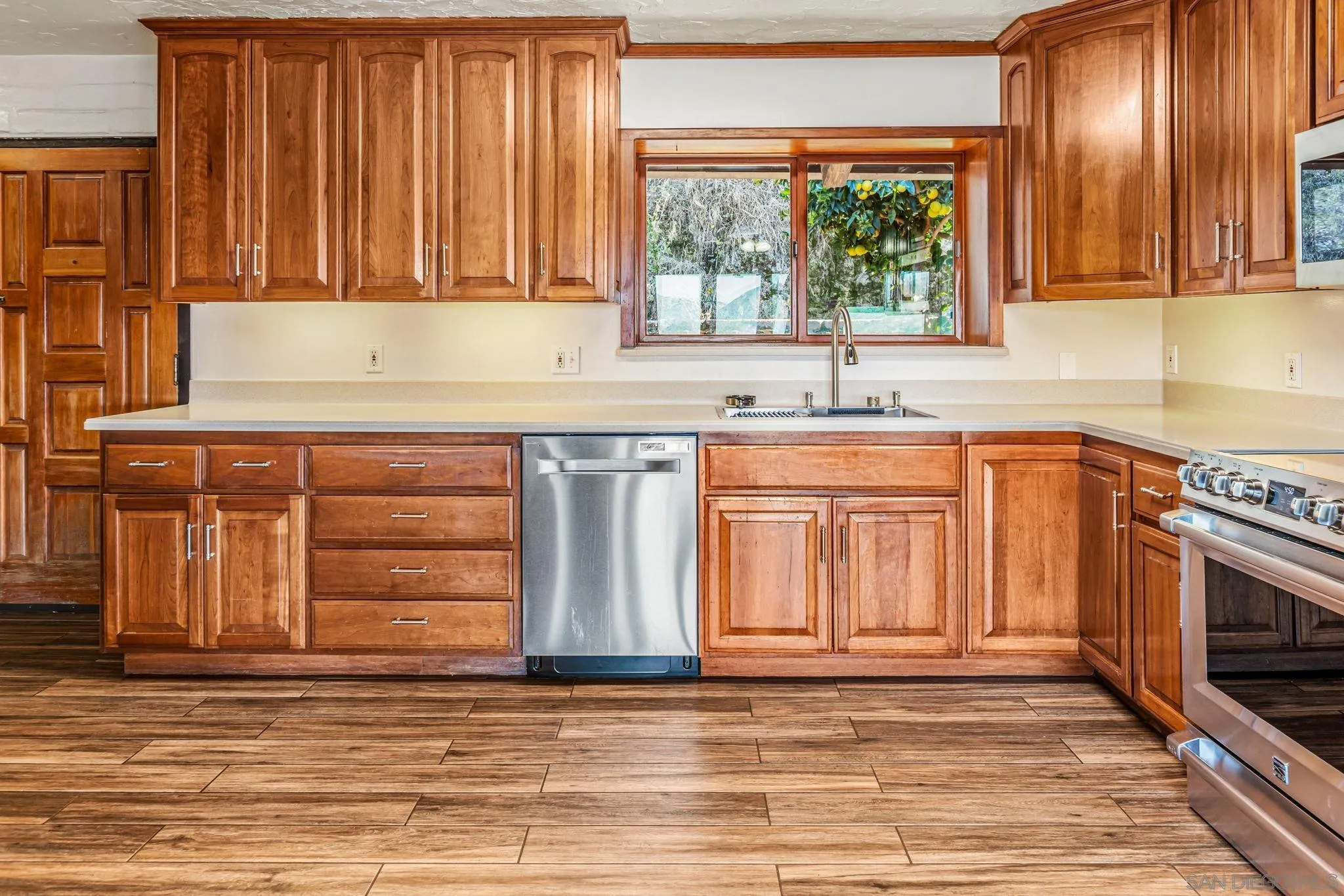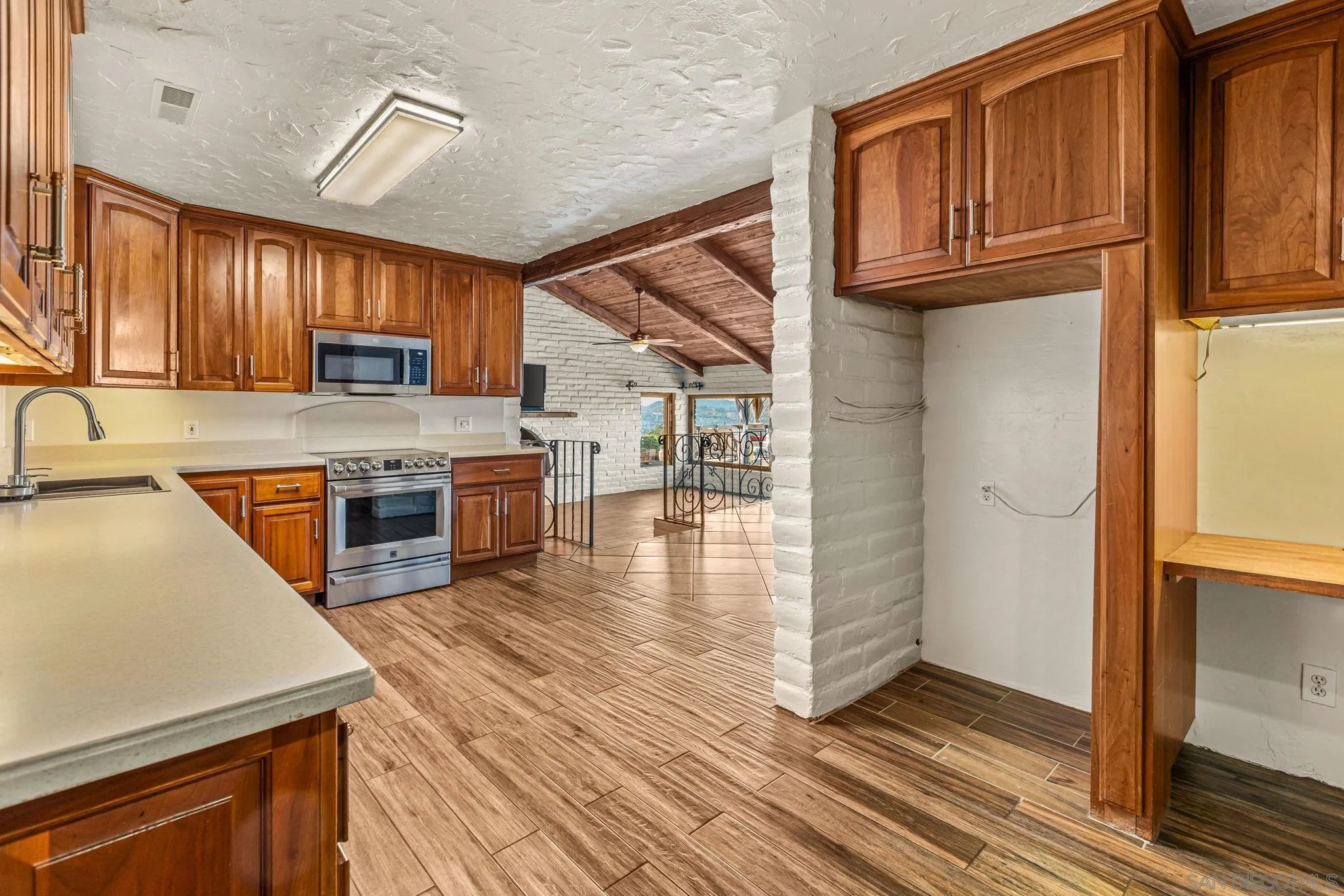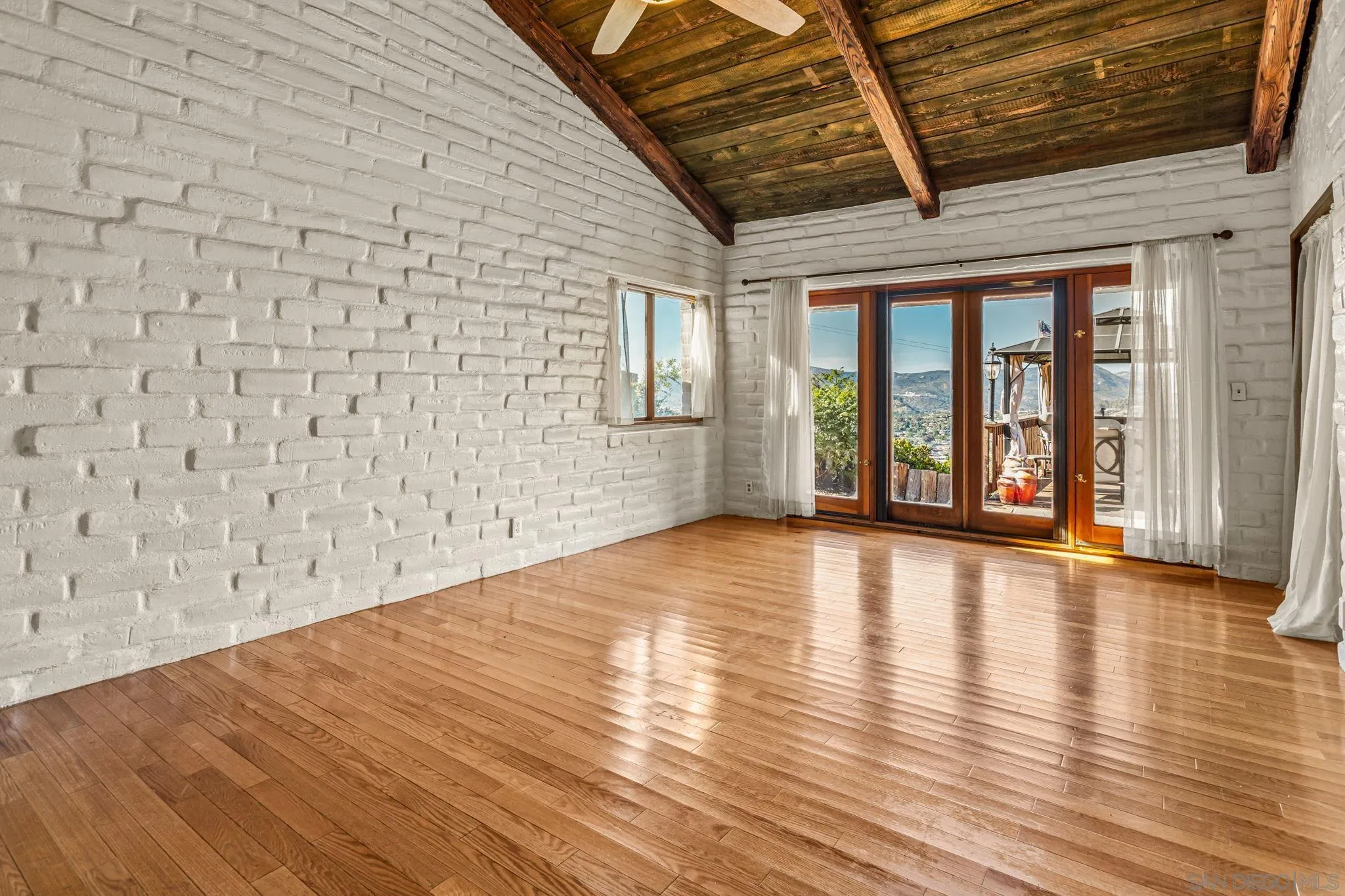 Welcome to this charming and rarely available adobe-style home, rich in character and warmth. Enjoy sweeping, incredible views from nearly every room, and unwind on your private deck—perfect for unforgettable afternoons and evening sunsets. Set on a spacious lot, this distinctive property offers a rare blend of privacy, functionality, and timeless appeal. The generously sized living room showcases classic adobe walls, exposed beam ceilings, and a cozy fireplace, creating an inviting atmosphere for relaxing or entertaining. Thoughtfully maintained, the home features a new roof and fully owned solar for enhanced energy efficiency. The open-concept layout flows seamlessly into an expansive kitchen, ideal for gatherings and everyday living. Vaulted ceilings and a neutral color palette enhance the light, bright, and airy ambiance throughout. One of the rooms features a fun loft space, adding charm and versatility. Step outside to a beautifully landscaped backyard designed for enjoying the outdoors. A thriving orchard includes orange, apricot, tangerine, fig, grapefruit, pomegranate, and lemon trees. Additional highlights include an attached 2-car garage and ample space to make this exceptional property your own.