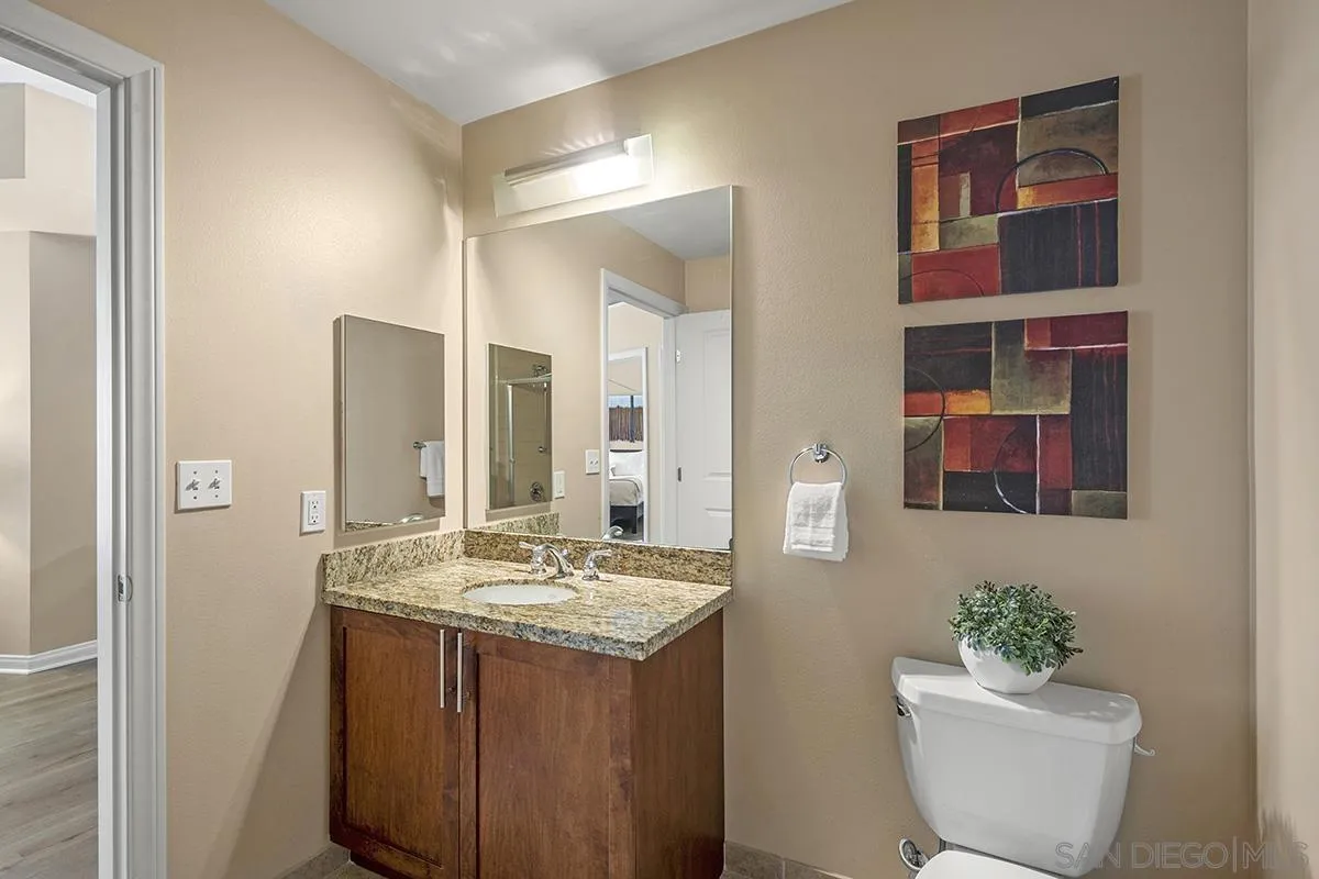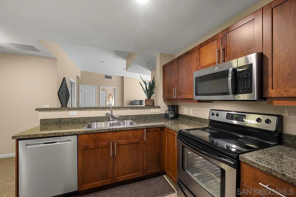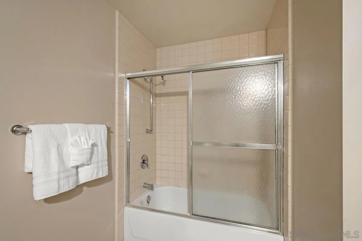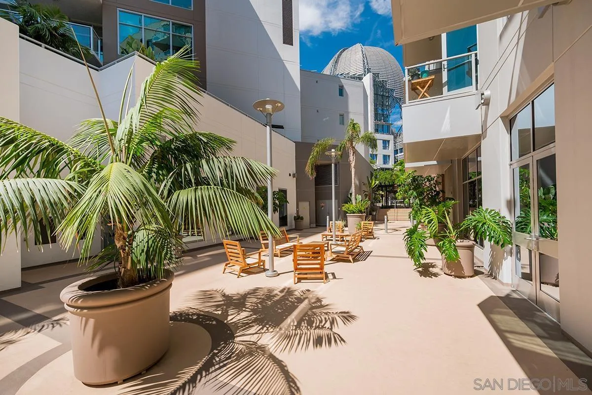 Stylish, relaxing shades of terracotta, navy blue and cream dominate this one-bedroom, one-bathroom unit with an open plan living space that features convenient hard flooring throughout. The living room area boasts a plush sofa, perfect for kicking back on at the end of a long day to watch something on the large Smart TV. Off of this space sliding glass doors lead to a balcony, complete with seating, overlooking the manicured, tranquil courtyard below. A comfortable queen size bed is the center of the bedroom, which also benefits from a spacious three-door closet and plenty of alternative storage space as well, with an additional large dresser on offer.