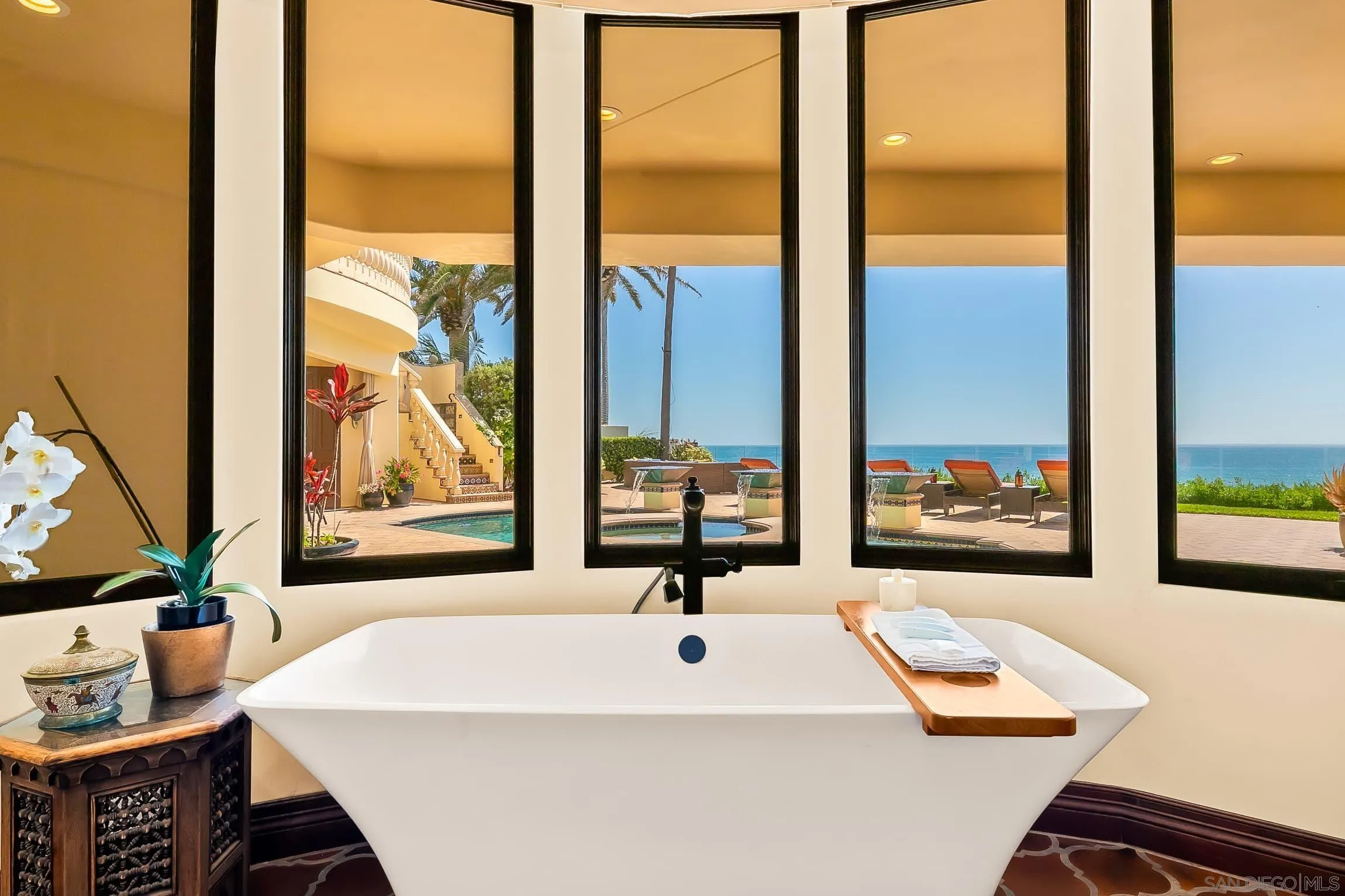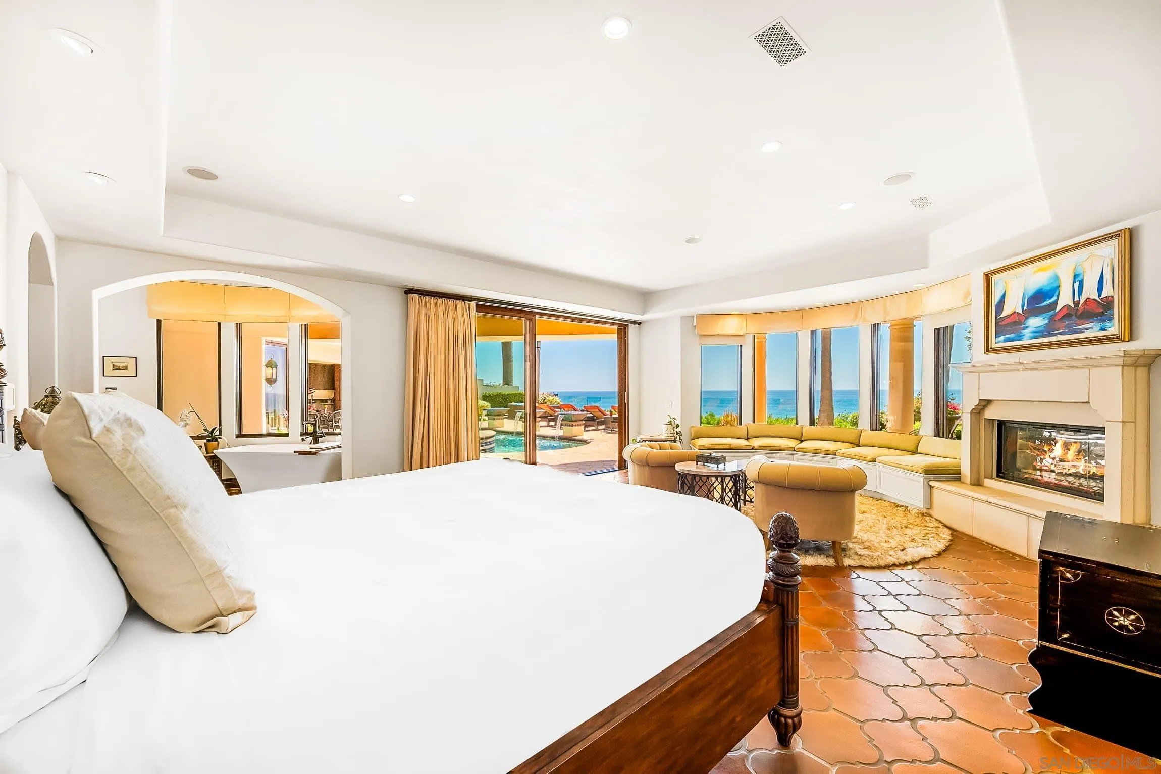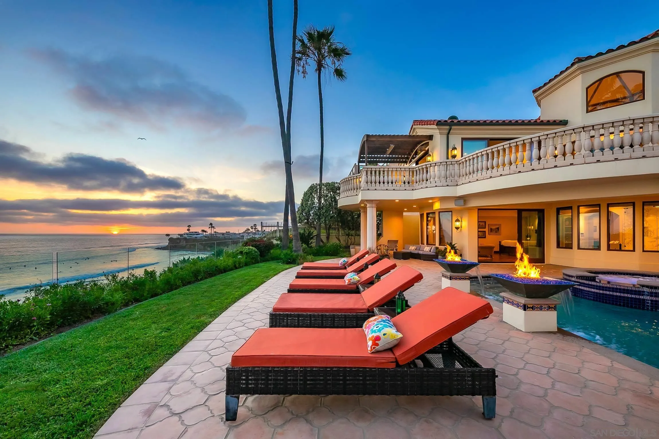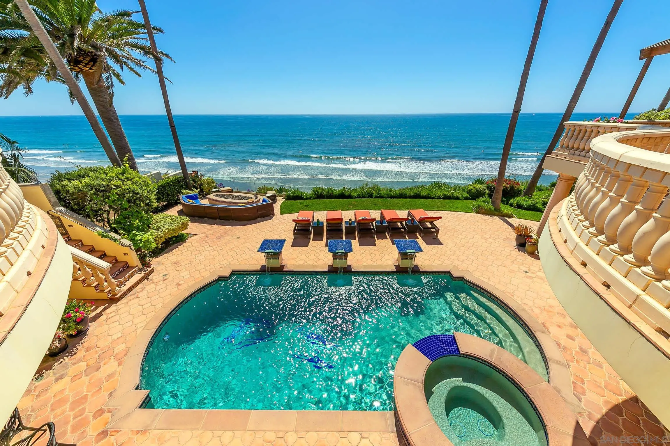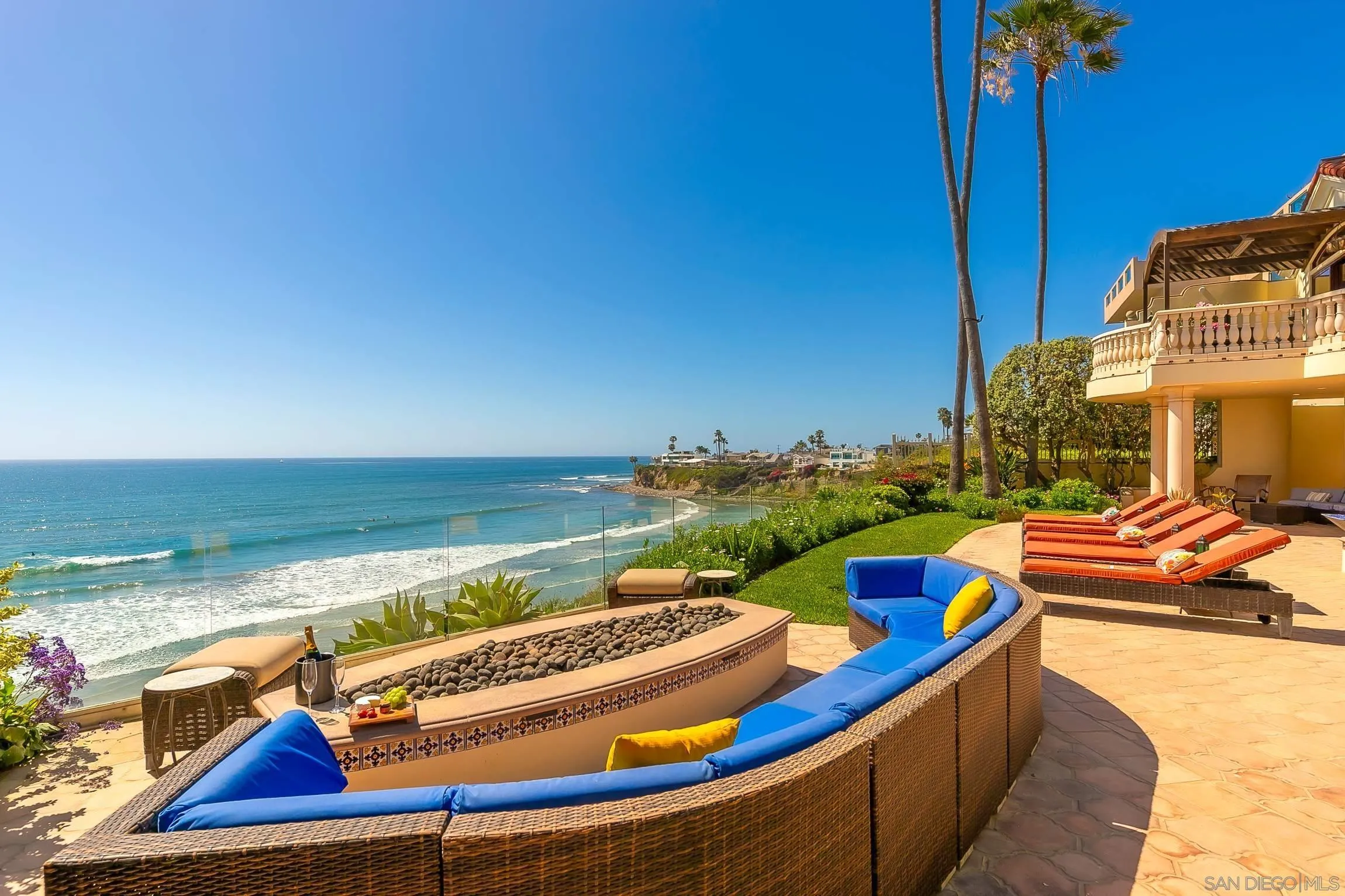 SHORT- & MID-TERM FURNISHED RENTAL,AVAILABLE AUGUST 2026 THROUGH JUNE 2027 ONLY, Oceanfront Bird Rock Estate Experience extraordinary oceanfront living in the heart of Bird Rock at this expansive 5BR estate spanning over 6,700 sqft of refined coastal design. Perfectly positioned above the Pacific, the home offers panoramic ocean views, seamless indoor-outdoor living, and resort-style amenities in one of La Jolla’s most sought-after neighborhoods. The main level is designed for connection and entertaining, featuring a chef’s kitchen with high-end appliances including gas, electric, and steam ovens, a beverage station, and a large dining area flowing into multiple living spaces. A game room with pool table, air hockey, and wet bar, along with an ocean-view library and office, create a dynamic and functional environment. An en suite bedroom is also located on this level. Downstairs, the primary suite serves as a private retreat with outdoor access, a large walk-in closet, and spa-inspired bath with steam shower. Additional bedrooms are thoughtfully arranged for comfort and privacy, along with a full gym and Finnish sauna. Outdoors, the oceanfront pool and spa sit above the coastline with uninterrupted views, complemented by lounge areas, firepit seating, outdoor dining with heat lamps, and a wet bar. Located just a short walk to Bird Rock dining and shops, the home offers both privacy and walkability. Sleeping setup accommodates up to fourteen guests. This property is not available for long-term rental.Rates vary by season and length of stay. Published amounts are estimates