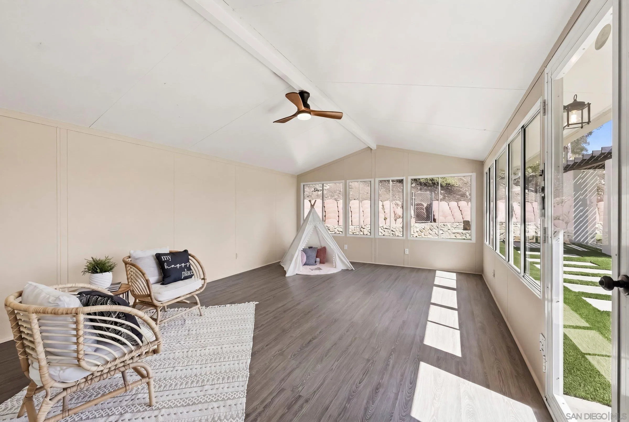 Some homes are just houses. This one feels like a fresh start. Nestled in coveted Park Village, this beautifully refreshed home greets you with soaring ceilings, sun-drenched rooms, and brand-new finishes throughout — new paint, new flooring, new kitchen, new light fixtures. Every detail whispers move right in. The heart of the home opens to a spacious sunroom bathed in natural light, flowing seamlessly to a private, low-maintenance backyard retreat — lush artificial turf, a charming pergola draped in string lights, and blooming bougainvillea framing it all. Upstairs, a vaulted primary suite offers the quiet sanctuary you've been dreaming of. This is the one you've been waiting for.