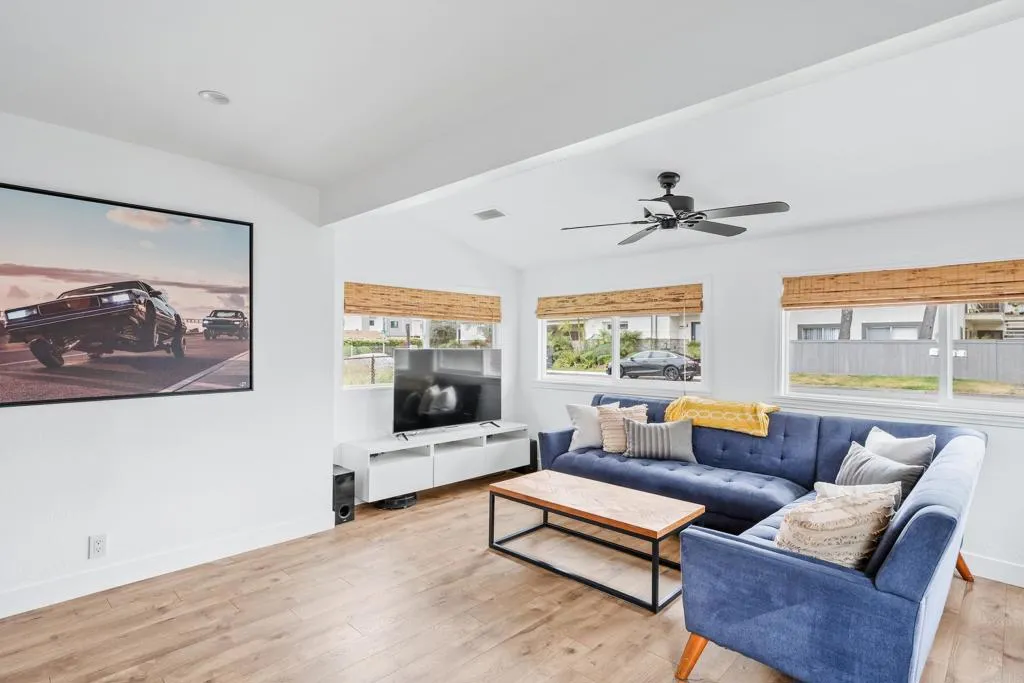 Just blocks from the ocean and a short stroll to popular restaurants and cafes, this beach home offers the ultimate coastal lifestyle with stunning views and exceptional indoor-outdoor living. This light-filled home features an open floor plan and tasteful modern upgrades throughoutincluding an updated kitchen with a stylish island and backsplash. The backyard is complete with a two story ADU with its own full kitchen, bathroom and the sweeping ocean views adds incredible flexibility for guests, work from home or rental income. Step into the backyard and discover an entertainers dream: a spacious ocean view deck with a gas fire feature, perfect for gathering with friends and family or enjoying a peaceful sunset. A hot tub, sauna and outdoor shower complete this private oasis, all framed by thoughtfully landscaped surroundings. Whether youre seeking a full time residence, a beachside retreat or an investment property, this turnkey home blends laid back luxury with unbeatable walkability in a desirable location. FYI there is an assumable VA loan on the property.