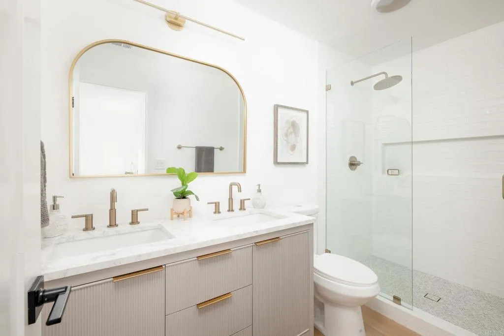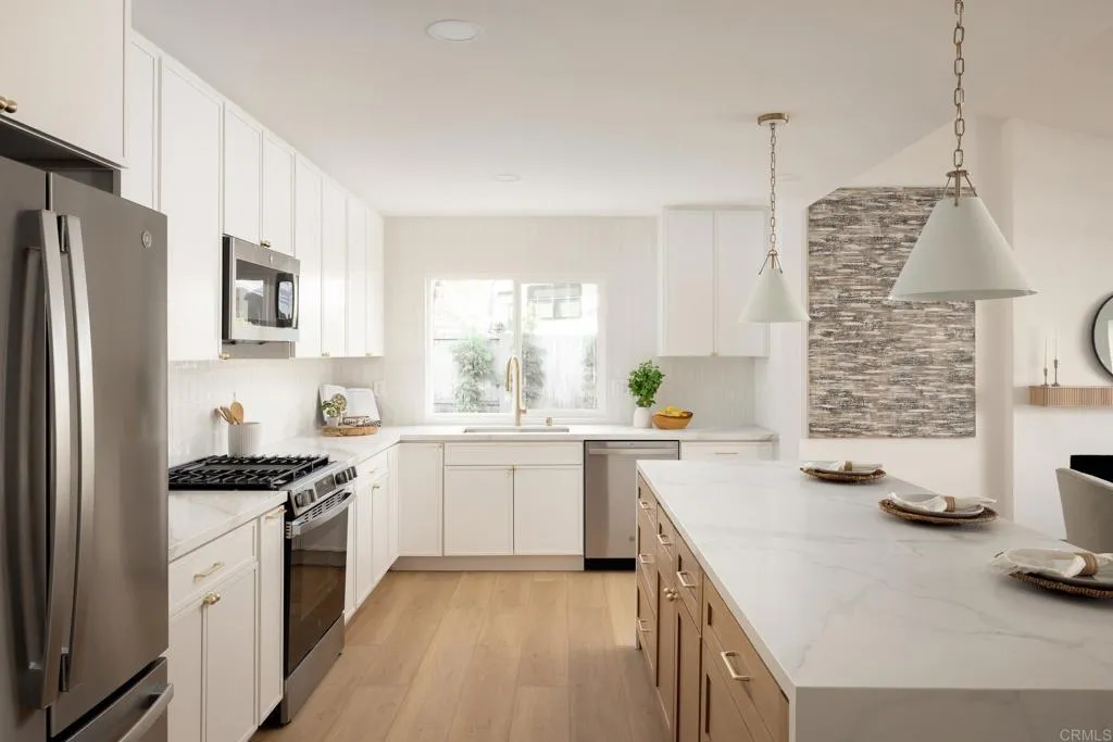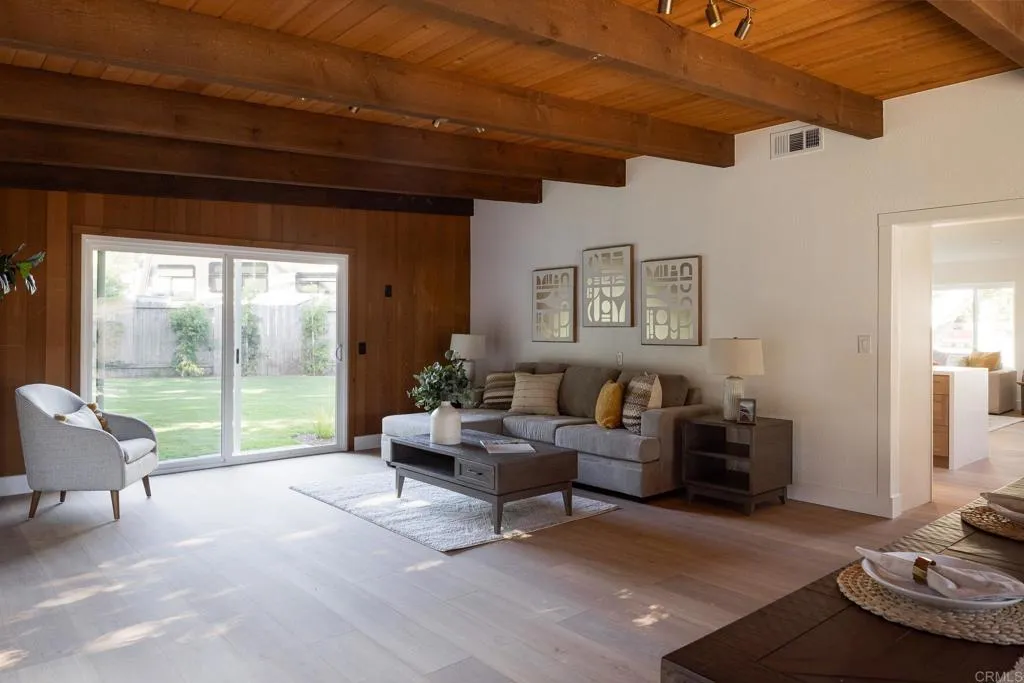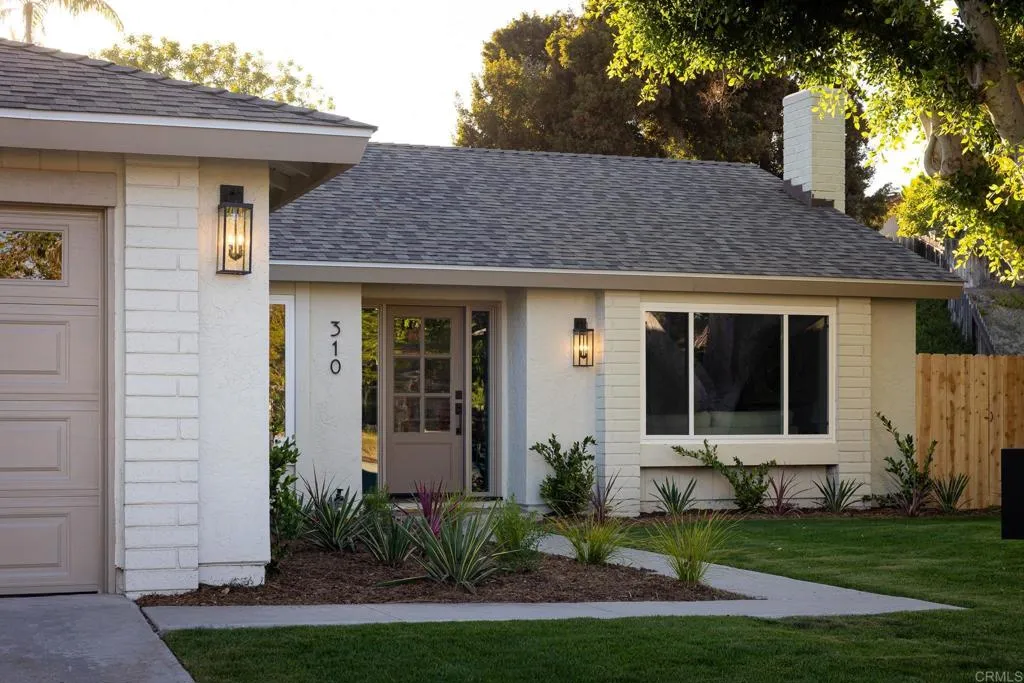 Dwell West proudly presents this beautifully renovated home that has been fully reimagined inside and out with designer finishes and thoughtful updates throughout. New drought-resistant landscaping, sod, fresh exterior paint and a brand-new roof with a 10-year warranty. Professionally designed open-concept floor plan filled with natural light. Brand-new kitchen with slim white shaker cabinetry, a white oak island, quartz countertops, custom tile backsplash, oak shelving, new stainless steel appliances, and designer fixtures. Smooth-plaster fireplace with oak mantle, new LVP flooring, interior doors, hardware, and lighting complete the homes fresh look. Additional updates include a new garage door, water heater, HVAC system, new lattice patio. With every major detail considered, this home offers a turnkey opportunity to enjoy the best of Encinitas living just minutes from beaches, shopping, and top schools. Welcome Home!
