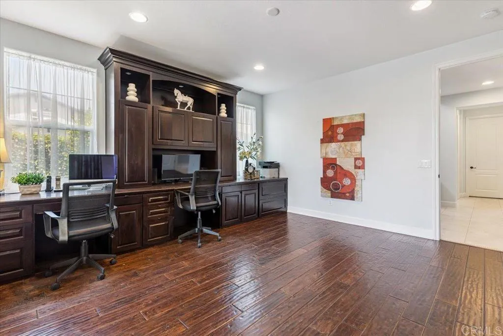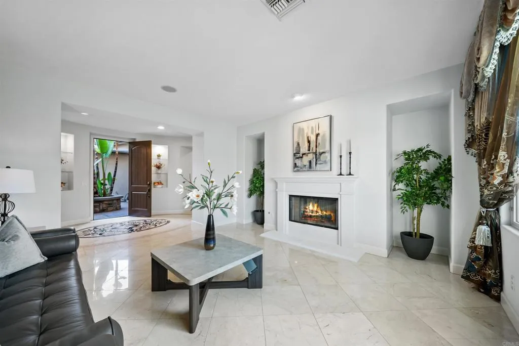 Welcome to this rare luxury estate in the prestigious La Costa Greens, Carlsbad now professionally reimagined and newly restyled. Nearly 5,000 sqft of refined living space is nestled on a quiet cul-de-sac with panoramic views of the world-famous La Costa Golf Course, offering the ultimate in privacy, scale, and elegance. 6 bedrooms, 4.5 bathrooms, 4,913 sqft interior, 10,358 sqft lot Private downstairs suite ideal for guests or multigenerational living. Expansive chefs kitchen with oversized island, custom cabinetry, marble finishes, and professional matching appliances. Grand primary suite featuring a dedicated study, marble-clad bath and vanity, a luxurious oversized spa tub, a generously sized walkthrough closet, and a walk-in shower. Elegant interiors with marble and rich wood flooring throughout. Built-in premium surround sound system throughout both levels with a state-of-the-art setup in the living room that delivers a true home theater experience. Spacious built-in office on the main floor, featuring custom cabinetry and a hidden fold-out Murphy bed perfect for guest accommodation or a private workspace. Signature, professionally designed water features in both the front and rear yards luxurious fountains that provide a resort-quality ambiance and reflect a significant custom investment. Resort-inspired backyard featuring an outdoor fireplace and an outdoor kitchen with a brand-new built-in BBQ grill and refrigerator never used and custom-installed exclusively for this home surrounded by lush landscaping. 2 separate 2 car garages giving you plenty of parking +