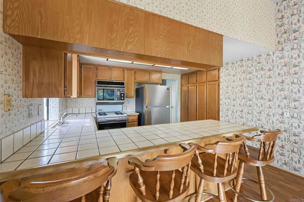 What everyone is looking for, a single story on a large cul de sac lot, no HOA fees close to 78 in Tri City. Enjoy this oversize primary bedroom (actually 2 bedrooms), kitchen opens to family area, vaulted ceilings in generous dining area, step down LR with FP. AC, dual pane windows, updated in 2024: primary bath is ADA accessible, HVAC updated 2023, new hot water heater installed 2022, washer, dryer & refrigerator convey to buyer. Covered patio, lot extends to Columbia Drive offers open privacy. Make this home your own. 4 miles to the beach, walk to Christa McAuliffe Elementary school, Mira Costa College, Sprinter, EZ access to 78, one exit to the shoppes at Carlsbad.