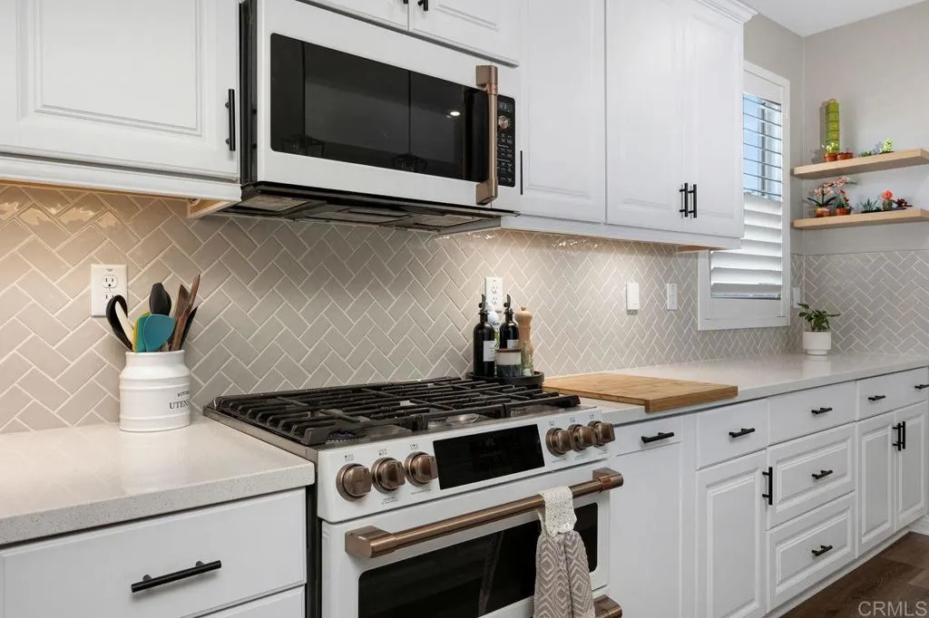 Experience coastal California living in this stylish 4-bedroom, 3-bath, 2,256 sq ft single-family home located in the sought-after Neptune neighborhood at Melrose Heights. This modern residence combines energy efficiency and designer upgrades with 10 owned solar panels, dual-pane vinyl windows, and durable luxury vinyl plank flooring. The gourmet kitchen impresses with quartz countertops, tiled backsplash, under-cabinet lighting, and a premium GE Caf appliance suite; featuring a dual-fuel double oven & 6-burner range, built-in microwave, dishwasher, and French door refrigerator with water and ice dispenser. The kitchen flows comfortably into the spacious dining area and family room, creating the perfect space for gathering, entertaining and staying connected. A first-floor bedroom and full bath make this home ideal for multi-generational living. Thoughtful details include a closet with extended under-stair storage area, ceiling fans, and an upstairs laundry room with utility sink. The primary suite is a spa-like retreat with a soaking tub, separate shower, and generous walk-in closet. Additional highlights include a 2-car garage, tankless water heater, EV charger and access to community amenities such as multiple tot lots, a pool, BBQs, and picnic areas. Conveniently close to shopping, dining, and transitand just a short drive to the iconic Oceanside Pier and sandy beaches.