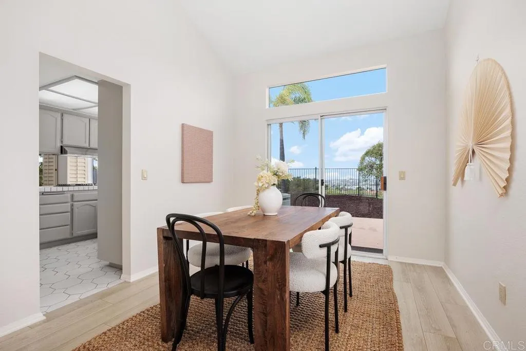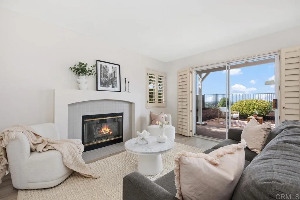 Perched at the end of a cul-de-sac in the gated community of Ocean Terrace, this Ocean Hills gem offers privacy, style, and sweeping 180-degree views from rolling hills to the Pacific Ocean. Soaring vaulted ceilings and expansive windows fill the living and dining rooms with natural light, while fresh paint, wide-plank LVP flooring, and multiple fireplaces create a warm, inviting feel. The kitchen features brand-new appliances, designer tile flooring, and a garden window framing stunning backyard views. A casual dining nook opens to the family room and outdoor spaces for seamless indoor-outdoor living. A first-floor bedroom and full bath are perfect for guests, a home office, or multigenerational living. Upstairs, the primary suite offers vaulted ceilings, a fireplace, and a private balcony with ocean and sunset views, plus a spacious bath with dual sinks, soaking tub, and two closets. The secondary suite also enjoys its own bath, walk-in closet, and balcony. Outdoors, the expansive backyard captures ocean, mountain, and sunset panoramas. Additional highlights include A/C, a two-car garage with laundry, a brand-new roof (2025), rebuilt primary balcony, and retractable awning. Ideally located near Melrose Dr. and Cannon Rd., this hilltop retreat offers coastal living just minutes from beaches, dining, and all that North County has to offer. Buyer and buyers agent to verify all in MLS prior to COE.