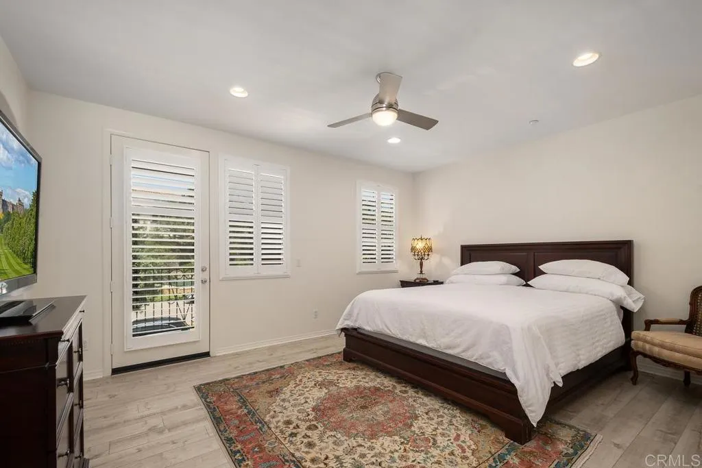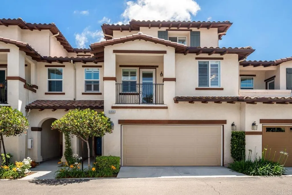 This stunning three-story home in the Avellino community of La Costa Greens features four spacious bedrooms, three-and-a-half bathrooms, and an open-concept layout designed for modern living. The chefs kitchen boasts granite countertops, white cabinetry, and stainless-steel appliances, seamlessly connected to the dining area and family room. Elegant upgrades include wood laminate flooring, plantation shutters, and beautifully tiled bathrooms. The home also offers energy-efficient features, air conditioning, a two-car garage, and custom built-ins. The first level includes a guest bedroom or office with a full bath and a sitting area, while the main level features the primary suite, gourmet kitchen, and laundry room. The upper level provides a versatile loft space, two bedrooms, and an additional full bath. Residents enjoy resort-style amenities at The Presidio, including a pool, spa, gym, clubhouse, and tennis courts. Conveniently located near top-rated schools, restaurants, shopping, parks, and the Carlsbad Dove Library. Virtual Tour: https://tours.previewfirst.com/pw/100437