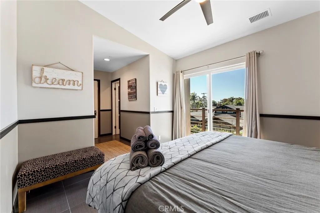 Welcome to 1611 Whaley Street, an exceptional coastal residence in Oceanside offering sophisticated modern living with direct facing peek-a-boo views of the Pacific Ocean. Built in 2017, this 2-bedroom, 2-bathroom home showcases a bright, open-concept single level floor plan designed for comfort, luxury, and indoor-outdoor livingplus a spacious attached 1-bedroom, 1-bathroom ADU studio apartment (built & permitted in 2025), ideal for multigenerational living or rental income. Step inside to porcelain tile flooring, vaulted ceilings, recessed lighting, ceiling fans, reclaimed wood accent walls, and custom Martha Stewart cabinetry. The gourmet kitchen is beautifully appointed with quartz and Dekton countertops, subway tile backsplash, stainless steel appliances, and a large island that flows effortlessly into the living and dining areasperfect for entertaining. From the upper-level living room balcony, take in peaceful ocean views, enjoy stunning sunsets, and step down to a private backyard ideal for al fresco dining among lush fruit trees including nectarine, apple, peach, avocado, lemon, lime, and orange. Additional upgrades include Jeld-Wen dual pane energy-efficient vinyl windows, PEX plumbing, tankless water heater with water filtration system, custom repurposed doors and molding, and coaxial cabling throughout. The primary suite features a walk-in closet, ensuite bath with walk-in shower, private balcony, and ocean breezes. The guest bedroom also offers a walk-in closet, complemented by a beautifully appointed guest bath and a conveniently located laundry closet on the