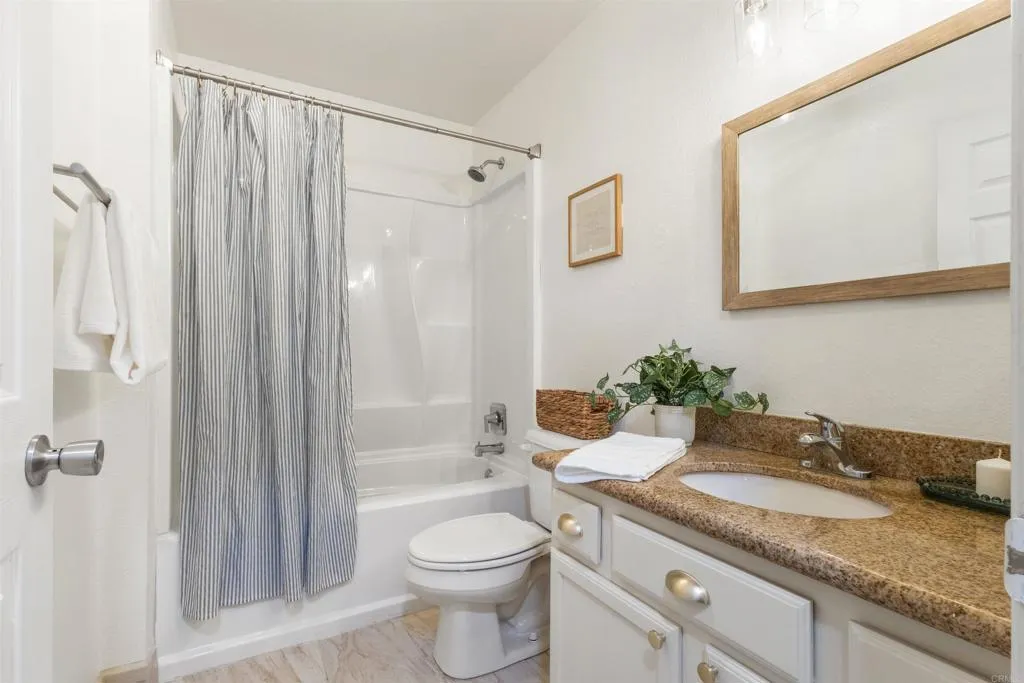Welcome to this upgraded top-floor condo in the gated community of Arbor Hill, just 2.5 miles from the beach and minutes from Downtown Oceanside, Camp Pendleton, and major freeways. This light-filled home features an open floor plan with modern tile flooring, recessed lighting, and a private balcony with peaceful views and a convenient storage closet. The bedroom includes a custom-built walk-in closet, while the bonus nook offers a built-in vanity/desk and wardrobe, perfect for a home office or dressing area. The kitchen is equipped with newer LG stainless steel appliances and flows seamlessly into the living area for effortless coastal living. Additional upgrades include a dual-pane window and slider, along with fresh interior paint. Enjoy resort-style amenities including a pool, spa, fitness center, BBQ area, and assigned covered parking, all within a VA-approved community. HOA dues cover water, sewer, trash, and exterior maintenance for added peace of mind. Just a short distance to shops, restaurants, and public transportation, this turnkey condo offers the perfect combination of comfort, convenience, and coastal lifestyle in one of Oceansides hidden gem communities.