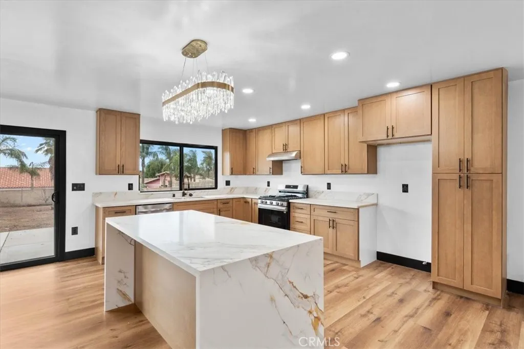 This stunning home, located in one of the best horse-property neighborhoods the City of Jurupa has to offer, is on the market for the first time since it was built and showcases upgrades throughout. The exterior features brand-new stucco, custom windows, a new corrugated roof, professional landscaping, upgraded fencing, new concrete driveways and stairs, and a luxury garage door, all sitting on a large flat lot with beautiful hillside views. Inside, youll find new waterproof flooring, high-end kitchen cabinets with upgraded quartz countertops, stylish light fixtures, a gorgeous tiled fireplace, and a large sliding door overlooking the backyard. The bathrooms have been fully renovated down to the studs with new shower fixtures, premium tile walls, glass enclosures, new vanities, and high-end lighting. With too many upgrades to list, this home is truly a must-seecome check it out today!