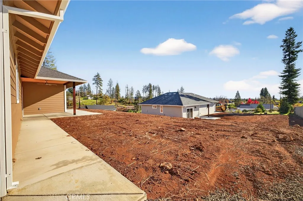Fantastic Central Paradise location for this 2025 Custom Home, built by Frost Construction a long time Paradise builder. The home offers Owned Solar 3.08 KW system, 7 panels with microinverters. The .32 Acre lot offers space for Boat, Trailer or R.V. parking with electricity. Landscaped front yard on drip system. Boasting a generous 1,021 square feet of living space, this home features top-notch craftsmanship and modern amenities. Upon entering, you'll be greeted by a charming 96 square foot covered front porch with a craftsman-style front door and custom shutters. Step inside to discover an open floor plan that seamlessly connects the living room, kitchen, and dining area. The kitchen is a chef's dream with granite countertops, stainless steel appliances, recessed LED and pendant lighting, and a stylish island for added convenience. The primary bedroom is a serene retreat with crown molding, a slider leading to the covered patio, and a well-appointed en-suite bathroom featuring granite counters and a step-in shower. The guest bedroom also offers crown molding and access to a sleek guest bathroom with granite countertops and a tub/shower combination. The home features gorgeous Vinyl Plank flooring throughout. Outside, you'll find a spacious 114 square foot covered patio with recessed lighting and a ceiling fan, perfect for outdoor entertaining. Additionally, the oversized two-car garage, measuring 23'5" wide by 25'10" deep, includes a laundry area. Plenty of space for a boat, trailer, or RV parking. R.V. electric hook-ups. Don't miss out on the opportunity to call this beau