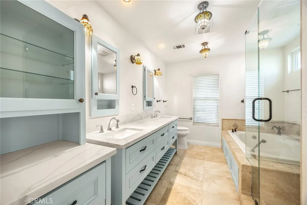 Welcome to 532 South Westford Street, a charming end-unit hometucked into the peaceful hills of Canyon Terracein Anaheim Hills. From the moment you step inside, the home feels warm, inviting, and instantly comfortable. The double door entry opens into a bright and cozy living room, where warm wood flooring and a welcoming fireplacecreate the perfect setting for relaxing, hosting friends, or unwinding at the end of the day. The space flows naturally into the dining area, keeping the main level open and connected. The kitchen features beautiful quartz countertops, custom cabinets, stainless steel appliances, recessed lighting, and a charming breakfast nook that looks out to a private atrium. A convenient built-in deskprovides a perfect spot for working from home, organizing daily tasks, or helping with homework. Just down the hall, you'll find the spacious downstairs primary bedroom, offering wonderful privacy and ease of single-level living. This inviting suite includes a walk-in closet, a secondary closet, and an ensuite bathroomwith a dual-sink vanityand a walk-in showera comfortable retreat for everyday living. A second downstairs bedroomis located nearby, along with a full bathroom, making it ideal for guests, family members, or a dedicated office or hobby room. Upstairs, a cozy loft areaoffers extra flexibilitygreat as a reading nook, study space, or lounge area. Just beyond is the third bedroom, which features its own private ensuite bathroom. Step outside to the peaceful back patio. Its the perfect spot to sip your morning coffee or relax as the day winds down.
