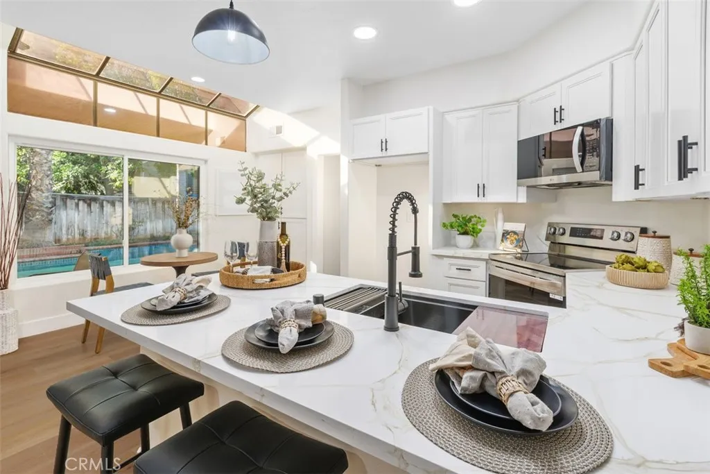 Stunning Turn-Key Temecula Home Fully Remodeled with Pool, Spa & Solar! Welcome to this beautifully updated 4-bedroom, 3-bath home offering 2,284 sq ft of modern living on a spacious 7,405 sq ft lot. Located in one of Temeculas most desirable neighborhoods, this turn-key residence features a bright open floor plan and every upgrade you could dream of. Step inside to soaring vaulted ceilings and a grand family/dining room with plantation shutters and views of the sparkling backyard pool. The entire home has been updated with brand-new flooring, baseboards, paint, recessed LED lighting, dual-pane windows, and new interior doors, creating a clean and contemporary feel throughout. The fully remodeled kitchen is a showstopper, featuring white shaker cabinets, quartz countertops, stylish pendant lighting, a 5-burner stove with built-in air fryer, dishwasher, microwave, and all-new sink, faucet, and plumbing. The kitchen flows seamlessly into the cozy living room with a chic tiled fireplace and ceiling fanperfect for everyday living and entertaining. Downstairs, youll find an oversized bedroom with a beautifully remodeled guest bathroom showcasing a new vanity, toilet, plumbing, and a gorgeous tiled walk-in shower. A huge laundry room with storage, sink, and folding counter adds convenience and space. Upstairs offers three additional bedrooms, including a fully remodeled guest bathroom with spa-like finishes. The oversized primary ensuite is a must-see, featuring a large walk-in closet, private fireplace, soaking tub, and separate walk-in showeran ideal retreat at the end of the