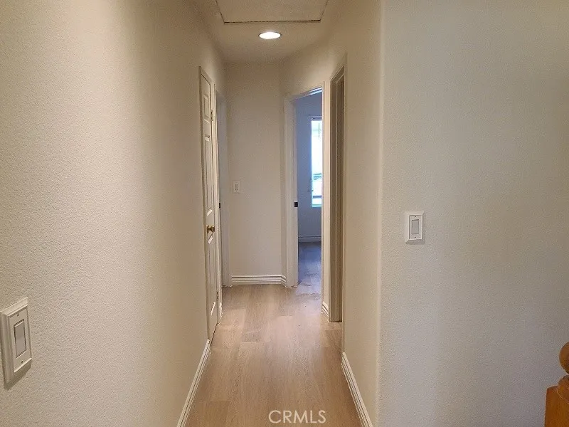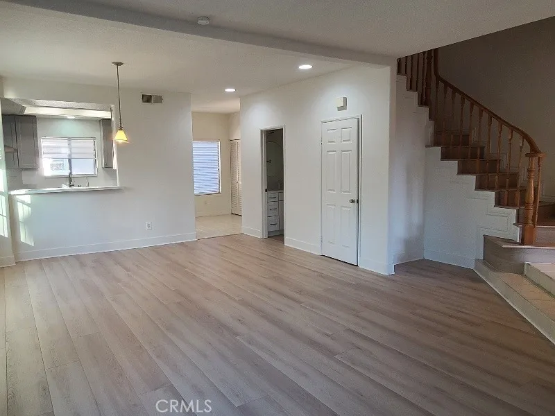 Located in the gated La Mirada Town Center Townhomes, this pristine end-unit offers comfort, privacy, and styleno one above or below and only one shared wall. NEW PAINTING AND NEW FLOORING(2nd floor). This exceptional tri-level home features 3 spacious bedrooms and 2.5 bathrooms, filled with natural light from numerous dual-pane windows. The inviting front porch welcomes you into an open and airy floor plan highlighted by a cozy tile fireplace, recessed lighting, and newer waterproof laminate flooring on the main level with tile at the entry and carpet upstairs. The remodeled kitchen showcases Quartz countertops and backsplash, upgraded gray cabinetry, stainless/black appliances, tray ceilings, and a bright breakfast nook. A convenient half bath and indoor laundry area are also located downstairs. Upstairs, the elegant primary suite offers dual sinks, a large walk-in closet, and French doors leading to a private balcony with peaceful, tree-lined viewsperfect for morning coffee or evening relaxation. Additional upgrades include newer HVAC, water heater, light fixtures, toilets, and mirrored closet doors. Direct access to a two-car garage(OVER SIZED), along with guest parking and nearby street parking, add everyday convenience. Residents of this well-kept community enjoy beautifully landscaped surroundings, a pool and spa, and close proximity to shopping, dining, grocery stores, golf courses, the post office, movie theater, and public transportation. This move-in-ready home combines location, comfort, and lifestyle in one of La Miradas most sought-after communities!