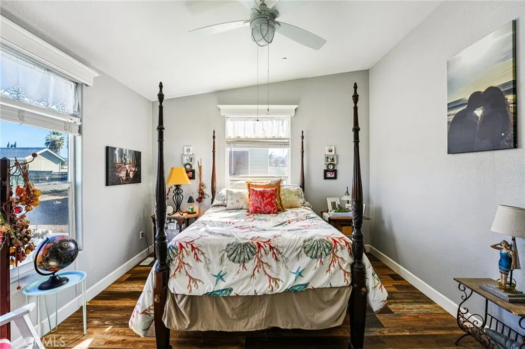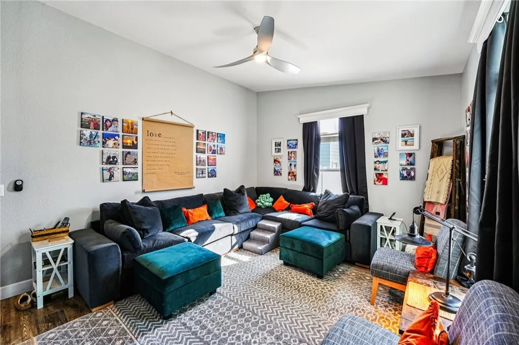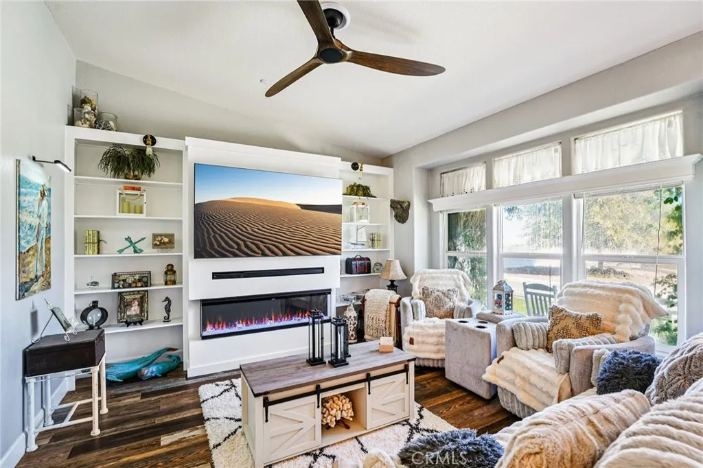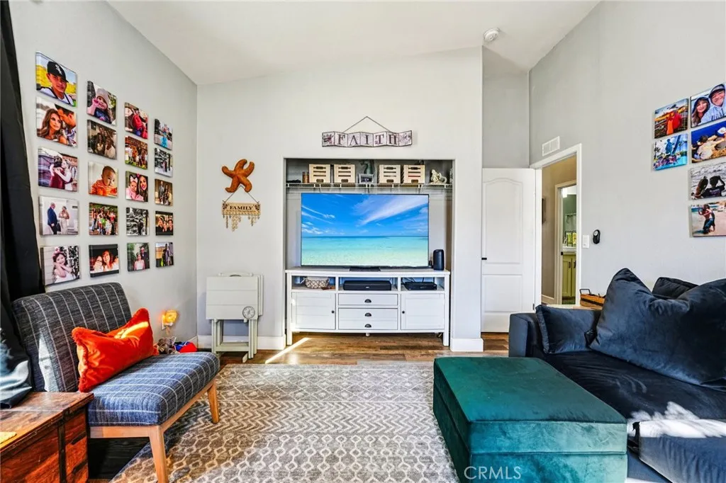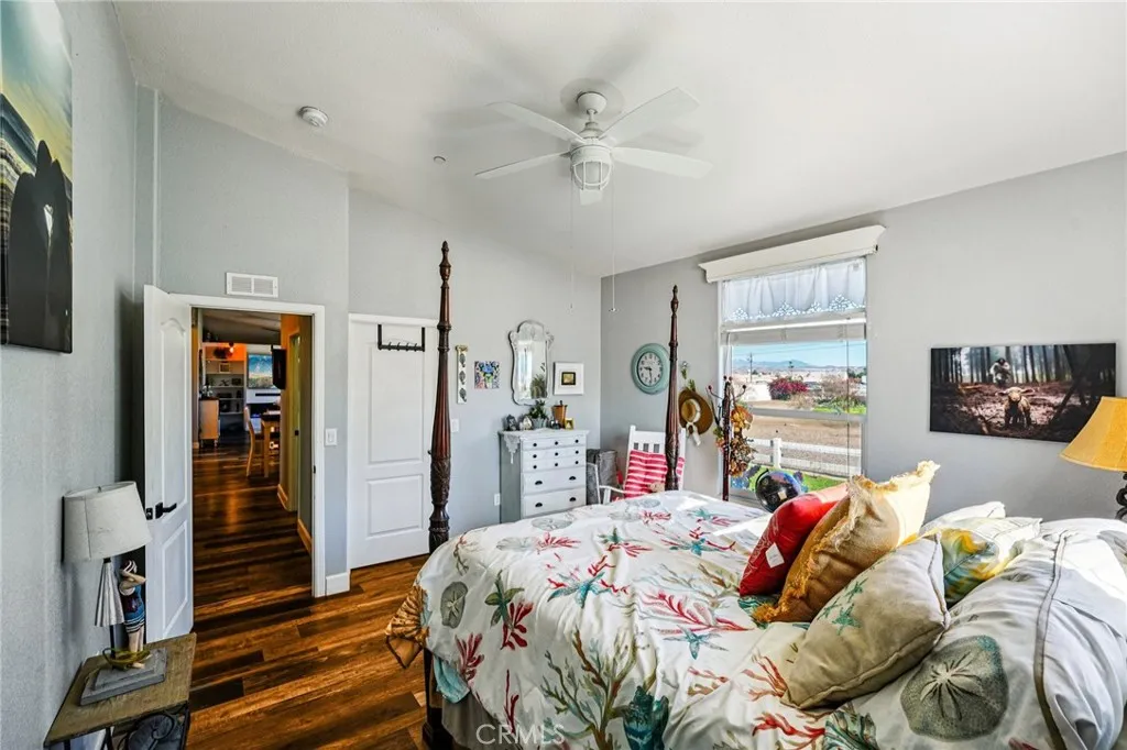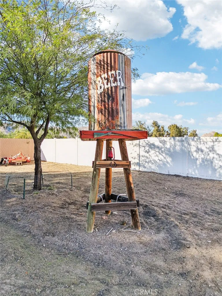 Welcome to 19957 Hansen Ave, a beautifully upgraded 1,814 sqft, 3-bedroom, 2-bath home set on a flat, fully usable one-acre lot in Nuevo. This unique property is fully enclosed with vinyl fencing and includes an impressive 40 x 30 metal shop/garage perfect for storage, projects, or hobbies. Behind the home sits an incredible full Western town complete with four custom buildings and a party deck. The saloon is equipped with air conditioning, while the blacksmith shop offers 60-amp power for welding. Additional conveniences include a dedicated RV hookup with 60-amp service and water, as well as an expansive assortment of plants and trees throughout the property, all maintained by irrigation timers. Step through the front door and youre welcomed by a modern country ambiance highlighted by distressed wood laminate flooring, tall baseboards, vaulted ceilings, large windows, and tasteful lighting. The great room is truly the heart of the home, with the stunning kitchen at its center. Shaker style white cabinets, quartz countertops and backsplash, a farmhouse sink, hideaway trash can, stainless steel appliances, and a large island with bar seating create a perfect blend of style and functionality. The kitchen opens seamlessly to the dining area and family room, where a custom built-in entertainment center showcases a large flat screen TV, sound bar, and 3D fireplace, making the space ideal for relaxation and entertaining. The spacious primary suite features vaulted ceilings and an en-suite bathroom with dual sink quartz vanities, a large soaking tub, and a separate shower. Two add