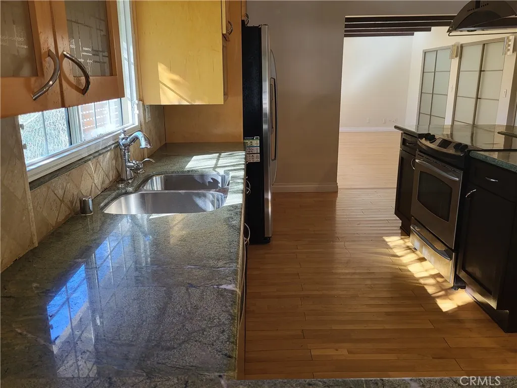 Beautifully updated open-concept home featuring green granite countertops, a stainless hood, stainless steel appliances, and an electric range. The spacious kitchen, dining, and living areas flow seamlessly into a large family rooman ideal layout for entertaining. This home offers three bedrooms plus a bonus room/office, providing wonderful flexibility. The primary suite opens directly to the serene backyard, where youll find a sparkling pool, spa, and gas fire pita perfect setting for gatherings or quiet relaxation. One of the additional bedrooms also features its own en-suite bathroom, making it great for guests. Enjoy abundant natural light, generous closet space, and an inviting fireplace that anchors the living/dining area. The home is extremely spacious and bright, offering effortless indooroutdoor living. Washer, dryer, and refrigerator are all included.