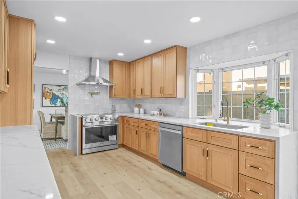 Exquisite, fully renovated luxury residence in prime Cerritos location. Discover an unparalleled opportunity to acquire this rarely available, executive-level residence situated within one of Cerritos most prestigious and highly desirable neighborhoods. This magnificent property is proudly located within the boundaries of the renowned and award-winning ABC Unified School District. This beautifully remodeled two-story home has been meticulously upgraded to showcase a sophisticated open-concept floor plan, enhanced by pristine new laminate flooring, elegant, recessed lighting, and contemporary designer fixtures throughout. The heart of the home is a brand-new, gourmet chefs kitchen, featuring stunning quartz waterfall countertops, bespoke custom cabinetry, and top-of-the-line stainless-steel appliances. This culinary space flows seamlessly into expansive living and family rooms, providing an ideal environment for both sophisticated entertaining and comfortable daily living. Retreat into the luxurious, expansive primary suite, an owner's sanctuary defined by soaring cathedral ceilings, a private balcony, and a spa-inspired en-suite bathroom where a deep soaking bathtub is elegantly enclosed within a modern shower space. The functional layout is further enhanced by the inclusion of a convenient downstairs bedroom and full bath, complemented by an additional guest powder room on the main level. Step outside into your private backyard oasis. This exceptional outdoor space, complete with a sparkling pool and generous gathering areas, offers the perfect backdrop for relaxation and