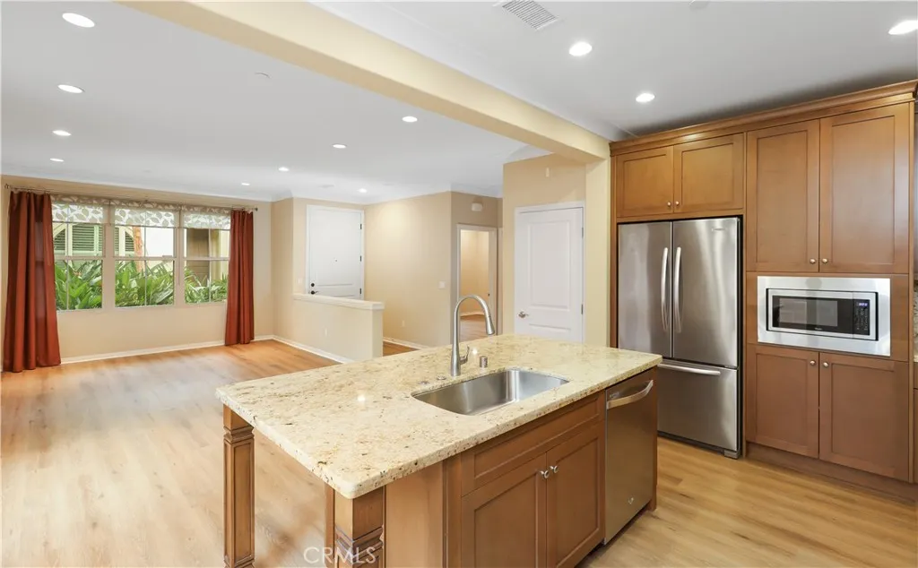 Welcome to 220 Kempton in the highly desirable Stonegate Community of Irvine, California! Enter this home and you youll find this 3 Bedroom and 3 Bathroom home was designed with an open concept living space in mind with is high ceilings and spacious floor plan. The living space and kitchen blend seamlessly together where you will be able to prepare meals and entertain family and guests. The kitchen features shaker styled cabinets, stainless steel appliances, granite countertops and back splash and a sink in the island to help you prepare your meals for family and friends. Adjacent to the kitchen youll find access to the patio where you can enjoy outdoor entertaining such as BBQing and enjoy our Sunny Southern California weather. Downstairs youll also find a MAIN FLOOR BEDROOM and a full bathroom. Ascend the stairs and youll find a spacious and functional workspace/computer desk area. The primary bedroom features tray ceilings, balcony access, dual sink vanities, soaking tub and shower and a walk-in closet. The adjacent bedroom upstairs enjoys its own private full bath. Additional considerations include direct access to a 2 car garage, recessed lighting, tiled and vinyl flooring and tankless water heater in the 2 car garage. The Stonegate Community is located in the Award winning Irvine School District and enjoys many community amenities such as community pools, spas, barbecue areas, playgrounds and more! Located conveniently near Woodbury Town Center with close access to the 5 Fwy and 133 Toll Road.