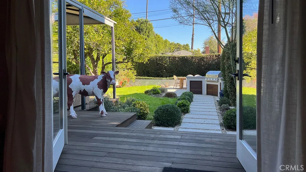 Location Location! The perfectly upgraded Studio City house for lease with fabulous outdoor space. Luxury touches at every turn. Expanded kitchen has pro grade appliances, custom cabs with storage, built-in fridge, wine cooler, microwave, and more. Features: 3-Bedrooms, 2 full baths, one half bath, plus living room and family room with fireplaces. Primary suite has large walk-in shower walk-in closet and french doors to yard. Yard has wood deck with fully covered outdoor living room across from built-in BBQ with bar seating and outdoor dining. Lemon and Orange tree in Amazing yard! One of a kind upgrades by owner/user being relocated to east coast. EV charger and tankless water heater. Call for showing. 3rd bedroom is media room/office with built-in daybed. Can be leased furnished or unfurnished, call agents for details. Available Feb 1st or sooner by mutual agreement.