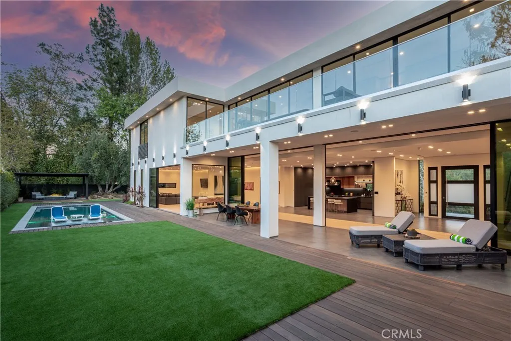 Modern architectural masterpiece, by Amit Apel Designs. Architecturally designed with meticulous perfection, offers European elegance w/ unsurpassed sophistication of unprecedented scale, this trophy estate is unlike any other a perfect blend of the highest quality Contemporary finishes, light and bright open spaces and an overabundance of indoor/outdoor entertainment options., soaring ceilings. Sleek, distinguished kitchen presents the ultimate culinary experience w/ massive center island adorned w/ Dekton Italian stone, Decor top-of-the-line appliances, huge walk-in pantry. Private theater w/ built-in surround sound, hi-def screen, & sumptuous theater seating (included). All en-suite bedrooms w/ huge approx. 2,000 SF master featuring TV/sitting area, built-in library, exquisite European-style walk-in closet. Resort-style master bath is a work of art w/ floating vanities, radiant heated floors, dual steam showers & jetted tub highlighted by walls of marble. Multiple balconies & decks. Fully automated, operating on Control4 system w/ indoor/outdoor sound system, TV in each room (included) & 16 security cameras. Pristine grounds, perfect for entertaining w/ exceptional saltwater glass pebble pool/spa, cabana, professional grade bbq, sprawling sundeck area, mini golf, & firepit w/ seating. Eco-conscious landscaping uses storm water drip irrigation system. Enjoy the ultimate, luxurious lifestyle w/ this masterfully crafted estate offering the highest degree of style & modern conveniences.