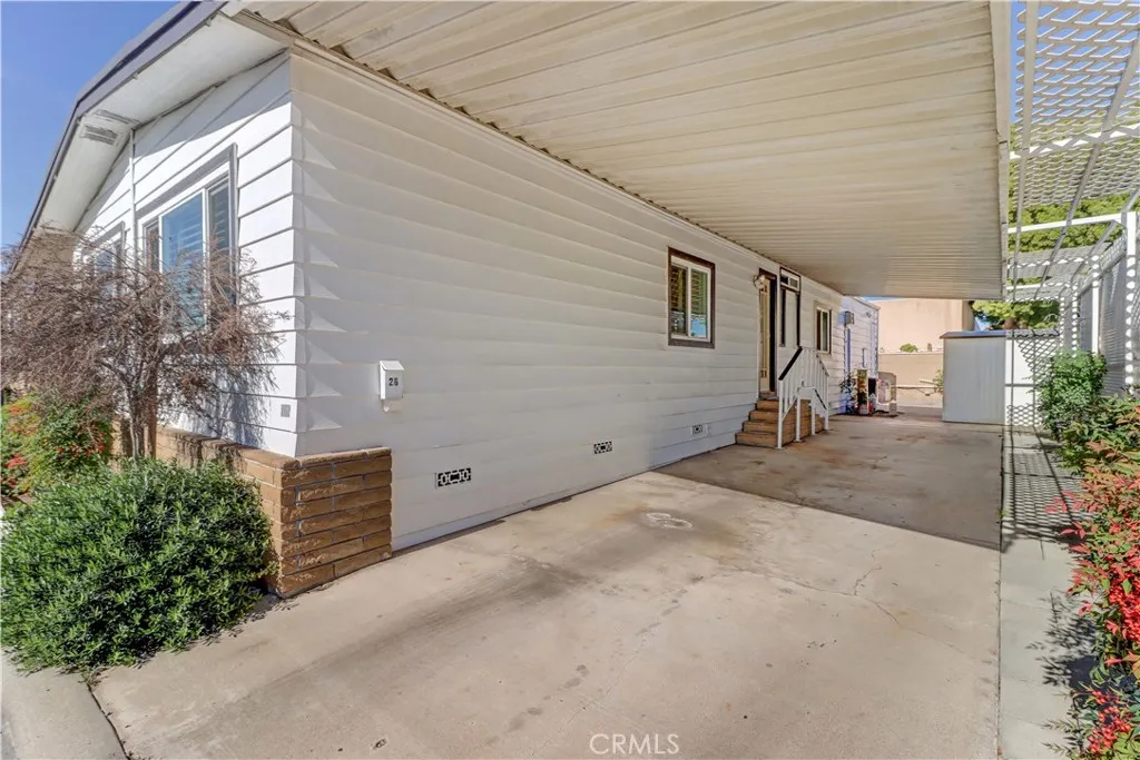 Welcome to this bright and inviting home with wonderful curb appeal, featuring a generously sized front patio perfect for morning coffee or relaxing afternoons. This peaceful 55+ senior community allows a second occupant aged 18 or older. Step inside to a spacious living room filled with natural light, complemented by well-maintained flooring, charming padded carpet, and an abundance of windows enhanced by newer shutters. The living room flows seamlessly into the dining area, which opens to the kitchen and an additional living space, creating a comfortable and functional layout ideal for everyday living and entertaining. The home offers two spacious bedrooms, each with its own attached bathroom, providing privacy and convenience. Out back, the yard presents endless possibilities whether you envision a garden retreat, outdoor entertaining space, or a personalized oasis. Additional highlights include a long carport with ample parking and two storage sheds for added convenience. Notable upgrades include a roof approximately 5 years old, a recently replaced A/C system (installed last year), and a tankless water heater, offering energy efficiency and peace of mind. Residents enjoy access to a beautiful community pool and jacuzzi, a well-appointed clubhouse, and a quiet reading room, perfect for relaxation and social gatherings.
