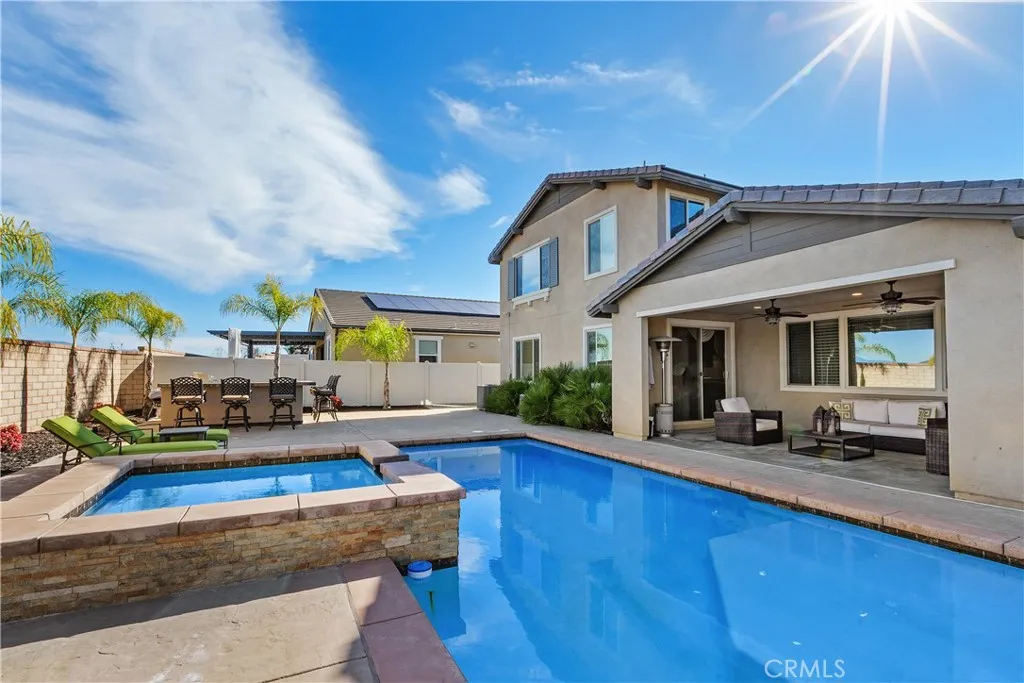 Experience Elevated Living In This Exceptional 5 Bedroom, 4 Bath Residence Showcasing 3,486 Sq. Ft. Where Sophisticated Interiors And Resort Inspired Outdoor Spaces Create A Rare Sense Of Privacy, Comfort, And Style. Behind Manicured Landscaping And Timeless Architectural Lines, The Home Opens To Expansive Interiors Designed For Both Grand Entertaining And Intimate Everyday Living. Rich Wood Flooring, Custom Drapery, And Refined Finishes Guide You Through A Thoughtfully Curated Floor Plan That Blends Openness With Understated Luxury. At The Heart Of The Home, The Gourmet Kitchen Offers Deep Espresso Cabinetry, Slab Granite Countertops, A Generous Center Island, Sleek Stainless Steel Appliances, And Designer Lighting. Ideal For Hosting On Any Scale, The Kitchen Seamlessly Connects To The Spacious Great Room And Formal Dining Areas, Creating A Warm, Welcoming Flow. Five Beautifully Appointed Bedrooms, Including Flexible Guest Accommodations, Offer Exceptional Comfort, While Four Full Bathrooms Blend Style With Convenience. An Interior Laundry Space And Abundant Storage Ensure The Home Remains As Functional As It Is Elegant. Outdoors, A Private Resort Awaits. The Shimmering Pool And Elevated Spa Are Framed By Stone Accents And Surrounded By A Curated Palette Of Tropical Landscaping. The Built In BBQ Island With Bar Seating Invites Effortless Entertaining, While The Expansive Covered Patio, Complete With Dual Ceiling Fans, Creates A Serene Place To Relax, Dine, Or Enjoy Sunset Views. This Exceptional Space Encourages A Seamless Indoor Outdoor Lifestyle That Luxury Buyers Value
