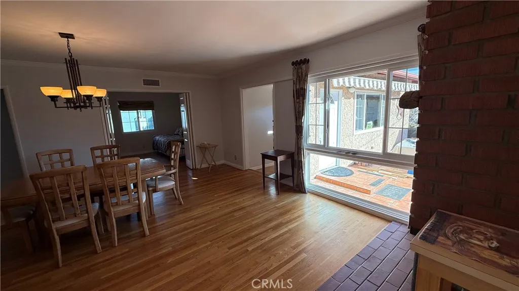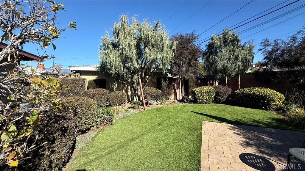 Rare gem - This 3 bedroom, 1.5 bath home is available furnished and ready to move in! You will love the curb appeal as soon as you see it! Front entry leads to kitchen with upgraded cabinets, granite countertops, custom panel on fridge to match the cabinets, and recessed lighting. Comes with dishwasher, full set of plates and cooking pans. Attached laundry room and half bath off the kitchen includes stackable washer & dryer. Three bedrooms are on the other side of the entry way all with original hardwood flooring. Each has a bed and storage available. The 3rd bedroom can be used as an office with built in desk. Hall bath is updated and has tub and shower. Big Living room/dining room has the original hardwood flooring as well and a nice dining set and curio cabinet. Fireplace for those cold nights. Follow through to the extra large family room in back. The room has a huge set of closets for storage, couch, a few tables and an entertainment cabinet with tv. The well manicured backyard has a covered patio and manicured back yard with patio seating, fountain & privacy from the trees. the 2 car garage is at the end of a long driveway with several parking spots. Garage has lots of storage cabinets & automatic opener.