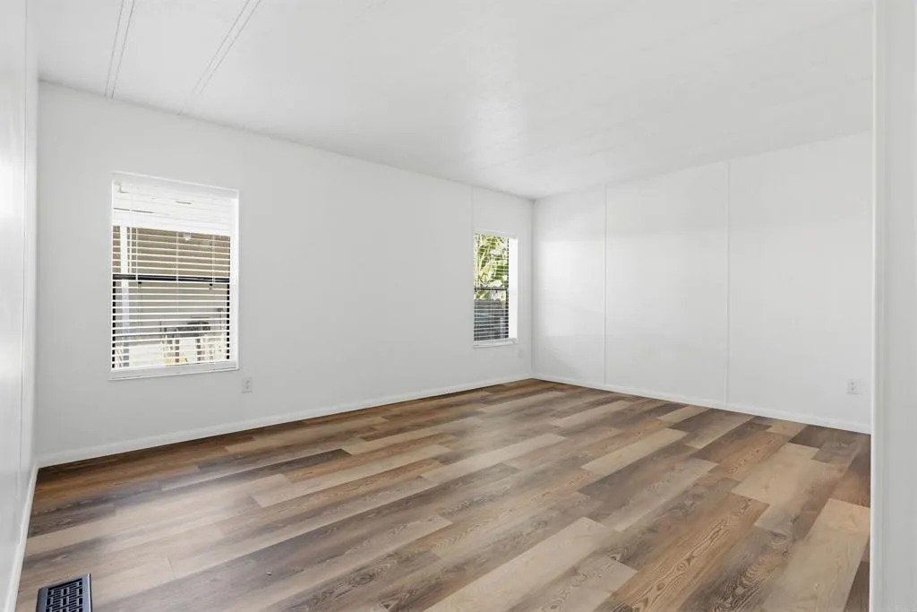 Welcome to your next chapter in this stunning coastal home! Located in a ALL AGES park. LOW SPACE RENT: $503 - RENT CONTROL!! LOW PROPERTY TAXES!! MINUTES TO OCEANSIDE BEACHES! Every detail thoughtfully designed to exude modern touches. Step inside and discover a bright NEW remodeled chef-ready kitchen featuring gleaming quartz countertops, sleek white cabinetry, all NEW stainless steel appliances, new garbage disposal and a brand NEW island with clever pop-up charging stations for all your devices. NEW Luxury vinyl plank flooring flows seamlessly throughout, creating a cohesive and polished aesthetic. Beautiful canned LED lighting throughout. This charming 3 bedroom, 2 bathroom home has been transformed with modern tasteful upgrades. The spacious living area and dining area offer tall ceilings and a modern ceiling fan. Primary bedroom features spa-like retreat with double vanity, quartz counters, floating shelves, crisp modern lighting with a sleek soaking tub and modern shower features. The guest bathroom showcases a custom shower that elevates everyday routines into something special. Every electrical outlet and light fixture throughout the home has been replaced, ensuring modern functionality meets peace of mind. The dedicated laundry room, tucked behind a stylish barn door, houses a new pedestal washer and dryer set for ultimate convenience with abundant built-in cabinetry and long folding counter. Located in a ALL AGES family park with low space rent of just $503, enjoy amenities like a swimming pool, spa, clubhouse, car wash station and a playground. Just minutes to