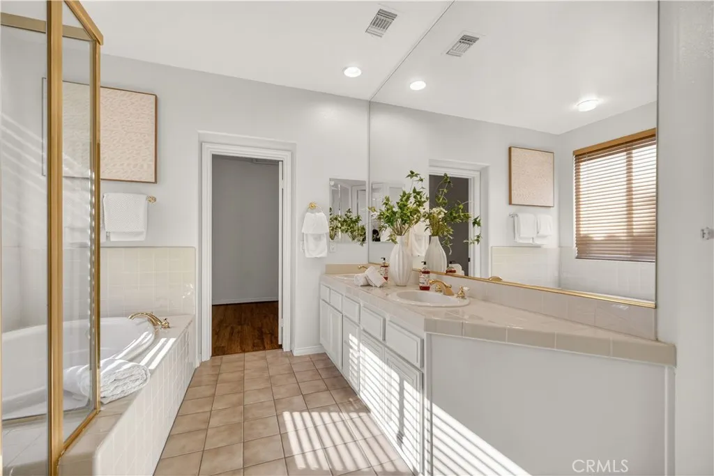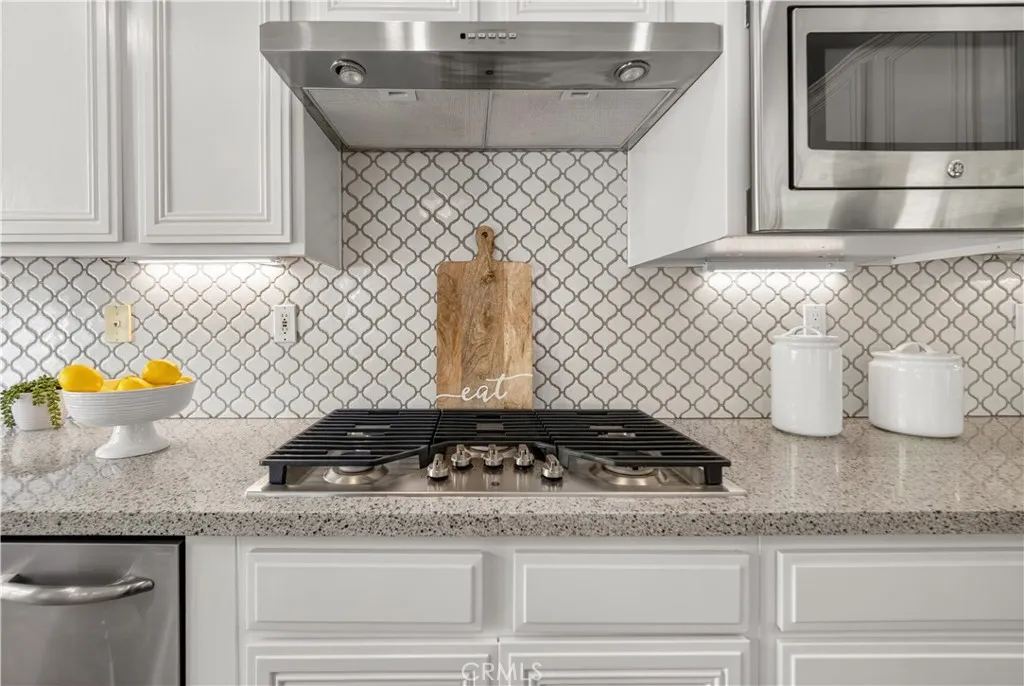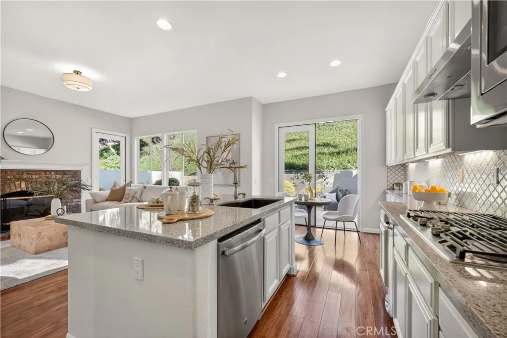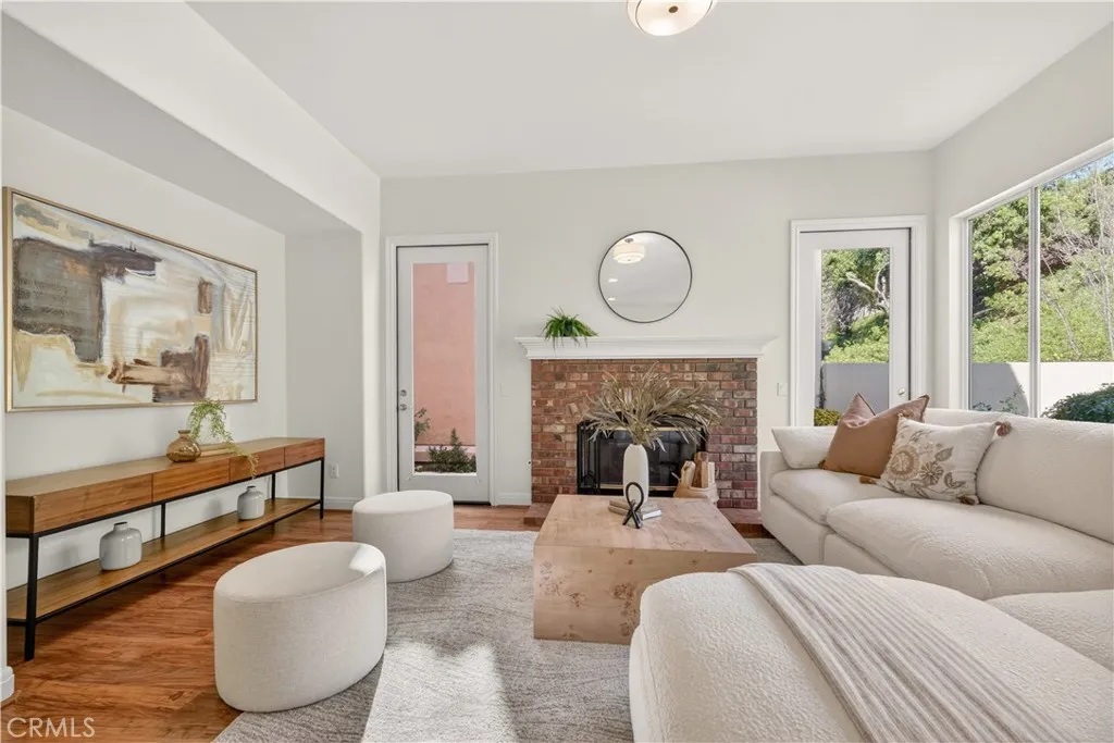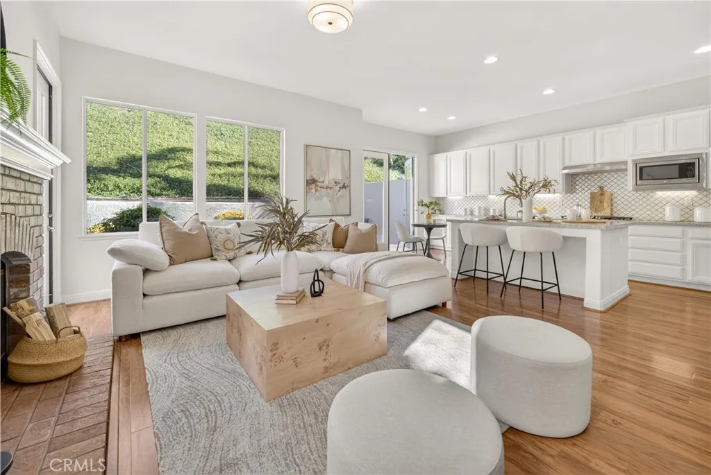 Set within prestigious Guard Gated Calabasas Park Estates, this rare Standard Pacific home blends modern upgrades with timeless design. Beyond two guard-gated entries and manicured grounds, the residence sits on a private hillside lot with fresh landscaping and convenient access to the communitys pool and spa. Inside, a soaring two-story foyer opens to a living room that flows into the dining room. Beyond this welcoming sequence, the family room and kitchen share an open-concept layout. A brick fireplace anchors the family room, while wide windows frame the hillside beyond. The updated kitchen features quartz countertops, an on-trend backsplash, GE stainless appliances, a black quartz sink and an island with extra seating. Pergo floors, new lighting fixtures and fresh paint throughout underscore the homes move-in ready appeal, and the open sightlines between the family room and kitchen create a natural gathering space. Upstairs, the generous primary suite features a spa-like bath with a soaking tub, dual vanities and a walk-in closet. Three additional bedrooms and an upstairs laundry provide day-to-day convenience. Energy efficiency is enhanced by Tesla solar panels (leased), green certification and a high-efficiency 4-ton, 20-SEER AC unit. Fresh sod and landscaping complement the contemporary interior upgrades. Calabasas Park Estates offers guard-gated peace of mind, a community pool and spa, and beautifully maintained grounds. The property is served by the highly regarded Las Virgenes Unified School District. Close to shopping, dining, and the beaches of Malibu, this home