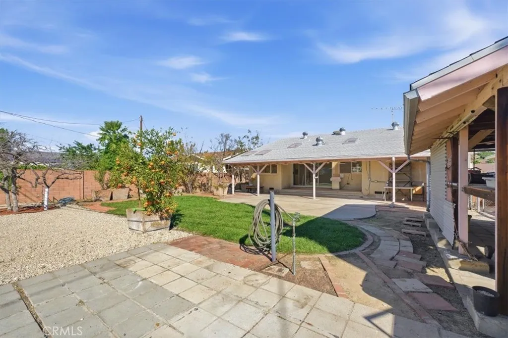 Welcome to 9147 Haddon Avenuean inviting Sun Valley gem set on a quiet street with beautiful mountain backdrops. This 3-bedroom, 2-bath mid-century home blends charm, space, and opportunity. A custom interlocking brick driveway and covered porch create excellent curb appeal, while inside youll find recessed lighting, newer wood-like flooring, and energy-efficient dual-pane vinyl windows. The spacious living room is perfect for gatherings and flows into the kitchen, featuring generous counter space, a newer range and hood, and a cozy breakfast area. A separate indoor laundry area adds everyday convenience. The primary bedroom is connected to a bathroom / shower while two additional bedrooms share a hall bath. Situated on a generous 8,350-square-foot lot, the property offers outstanding potentialroom for a possible ADU, pool, or expanded outdoor living. The rear and side yards include a covered patio, tool shed, workbench, and multiple fruit trees, ideal for entertaining or weekend projects. Additional upgrades include automatic sprinklers and a newer Carrier air-conditioning system with a transferable warranty. While some updating remains, the home is priced below recent area sales, making it an exceptional value. Offered for the first time in over three decadesthis is a rare opportunity you wont want to miss.