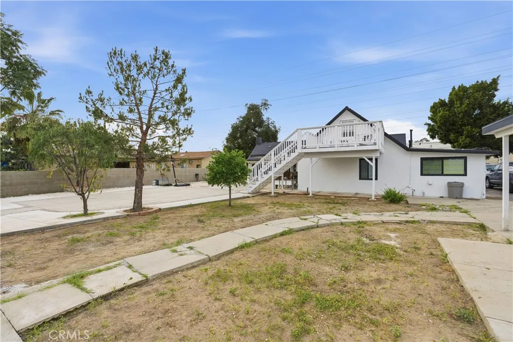This beautiful property features a spacious main house offering 3 bedrooms and 3 bathrooms, along with both a family room and a living room in an open floor plan layout. The home showcases large updated windows that bring in abundant natural light, a newer roof, fresh interior and exterior paint, and an updated kitchen. A private laundry room adds convenience, and the walk-in attic space provides plenty of storage. In addition, the attic has been finished and can be used as a guest room, home office, or private space for an older child seeking independence. The property also includes a rear guest unit featuring 2 bedrooms and 1 bathroom . A long driveway leads to a massive lot of over 16,500 square feet of usable space. Enjoy outdoor living with a wrap-around patio in the backyard, beautifully set with brick pavers ideal for entertaining or relaxing. This property offers space, versatility, and incredible potential.